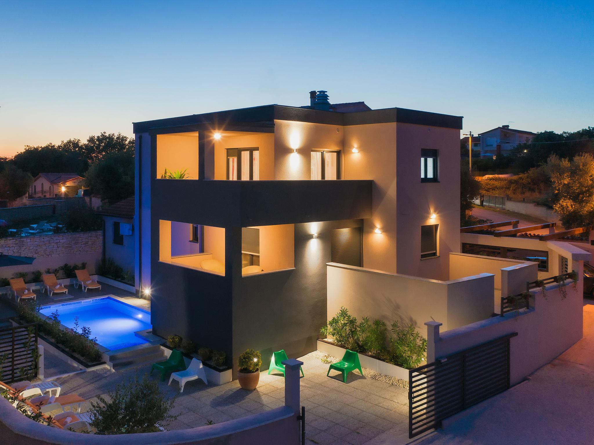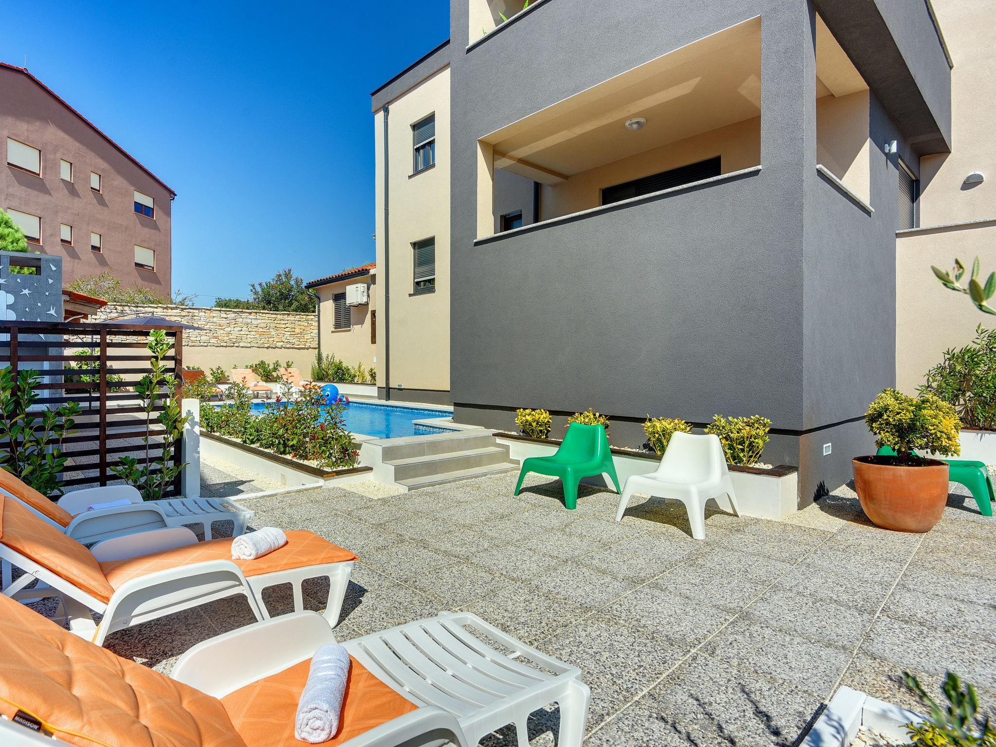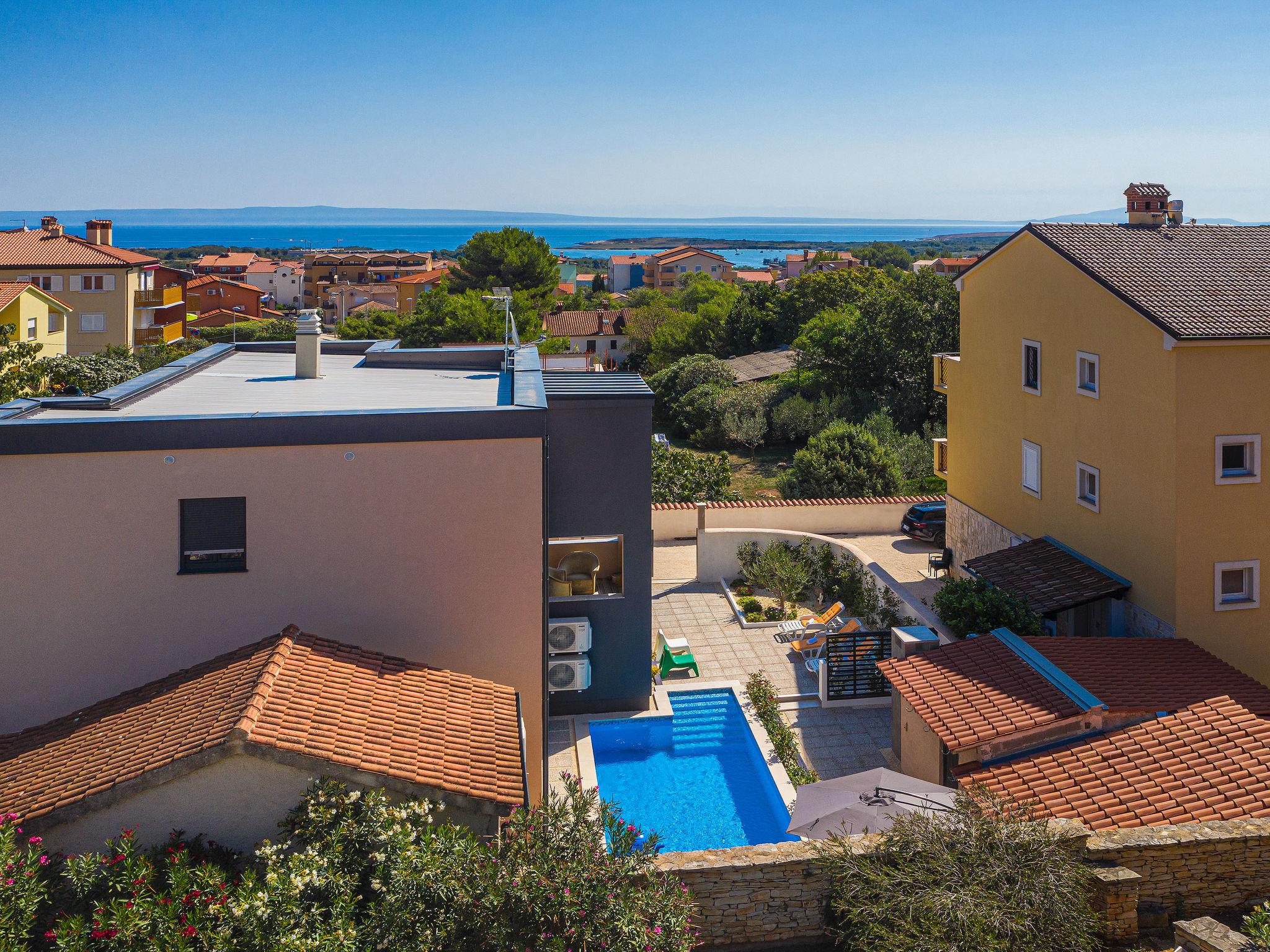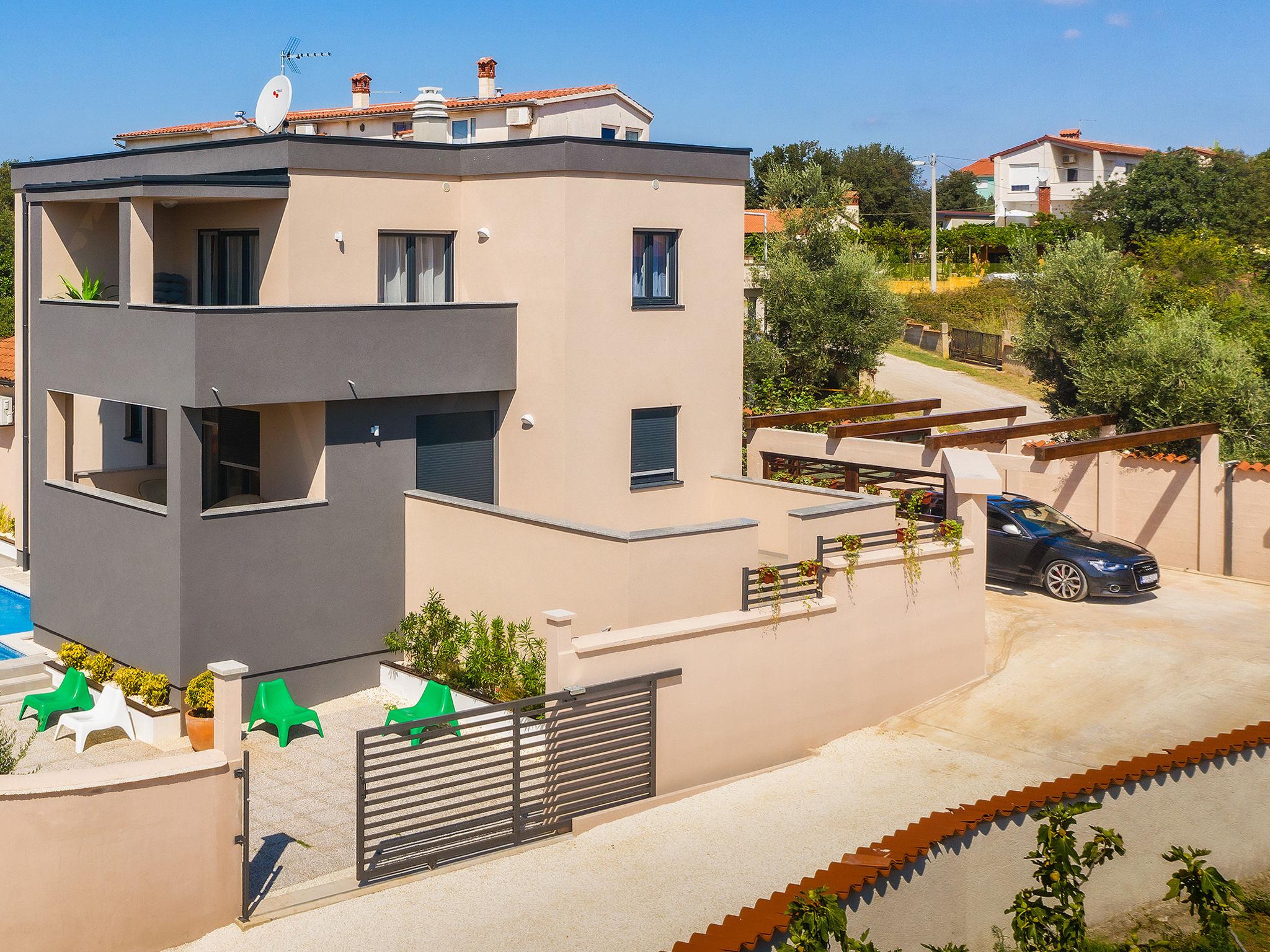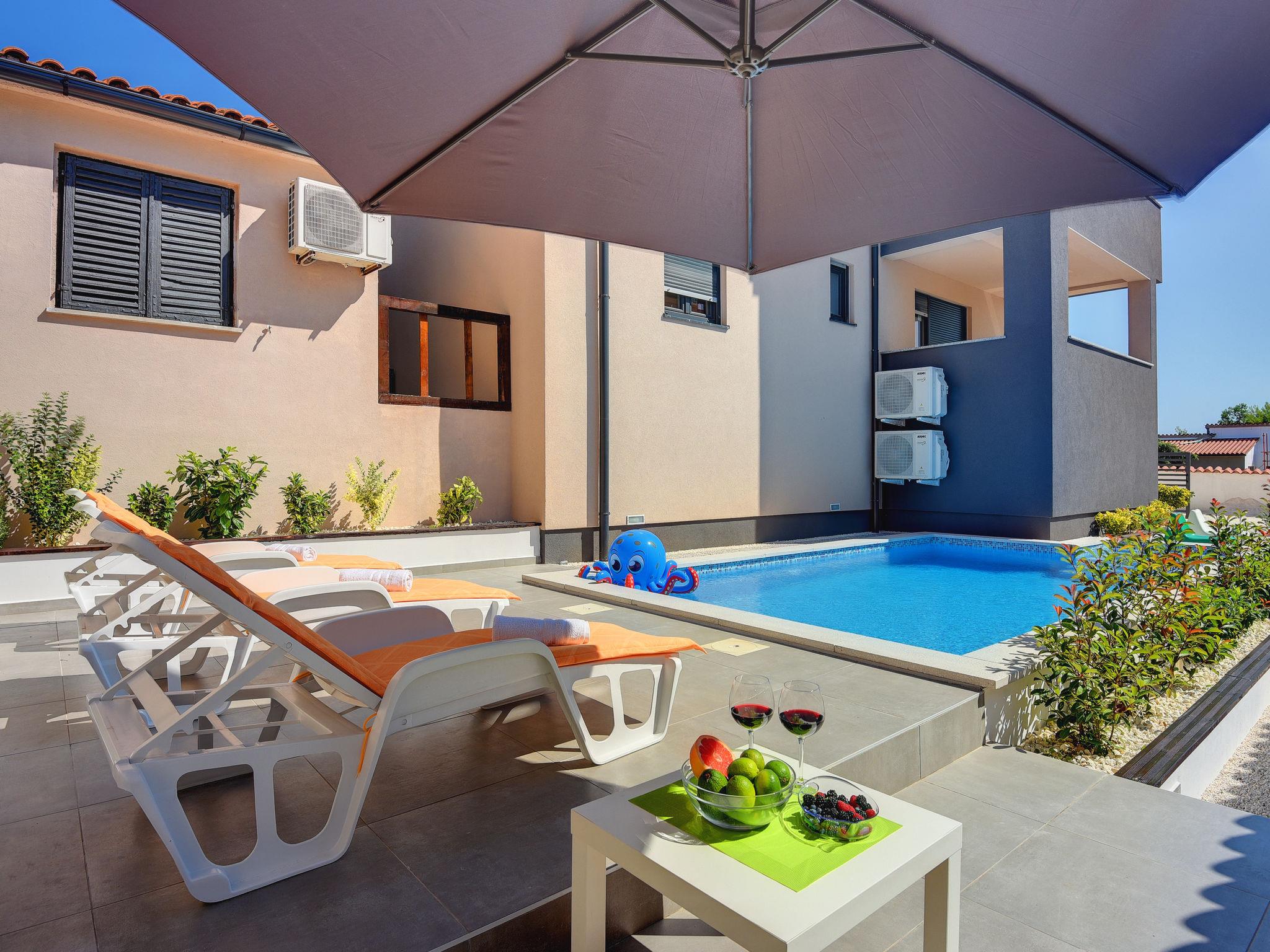 Ližnjan 2 km from Medulin: Villa "Noemi", 2 storeys. 1 km from the centre of Ližnjan, in a quiet, sunny, elevated position, 1 km from the sea, 1.2 km from the beach. Private: property 590 m2 (fenced), garden with wildlife garden, swimming pool angular (27 m2, depth 130 cm, seasonal availability: 01.May. - 01.Oct.) with internal staircase. Outdoor shower, terrace (20 m2), garden furniture, barbecue. In the house: internet access, washing machine. Roofed, parking (for 2 cars) at the house on the premises. Shop 650 m, restaurant 600 m, bus stop 1 km, sandy beach 2 km pebble beach 1.2 km, rocky beach 1.2 km. Tennis 500 m, riding stable 2 km. Nearby attractions: Adrenalin park 5 km, Nature park Kamenjak 10 km. Groups of teenagers on request only. The house consists of 2 apartments rented as one unit.