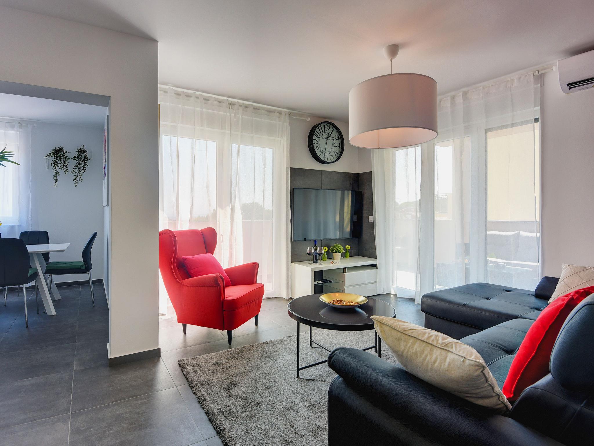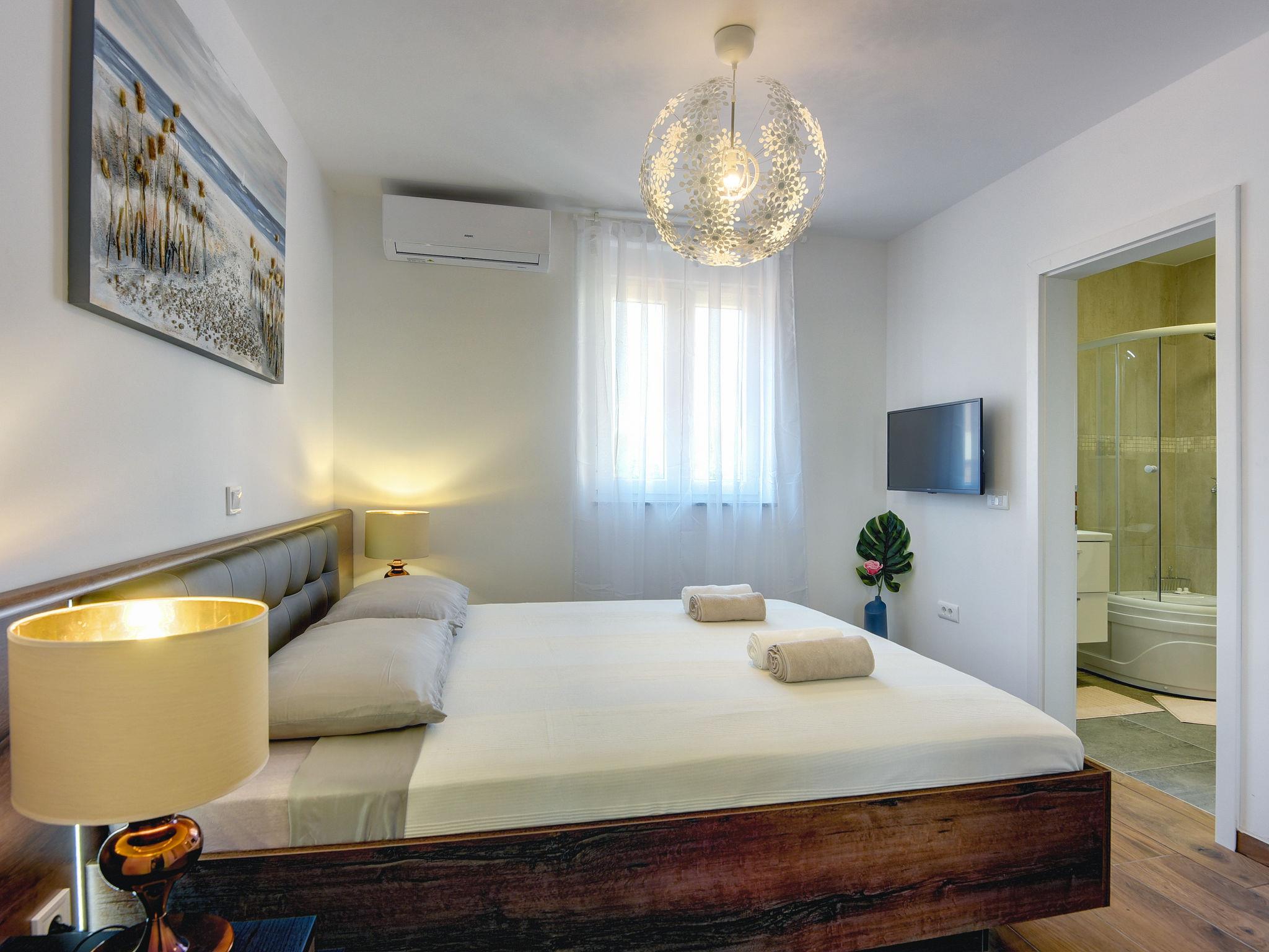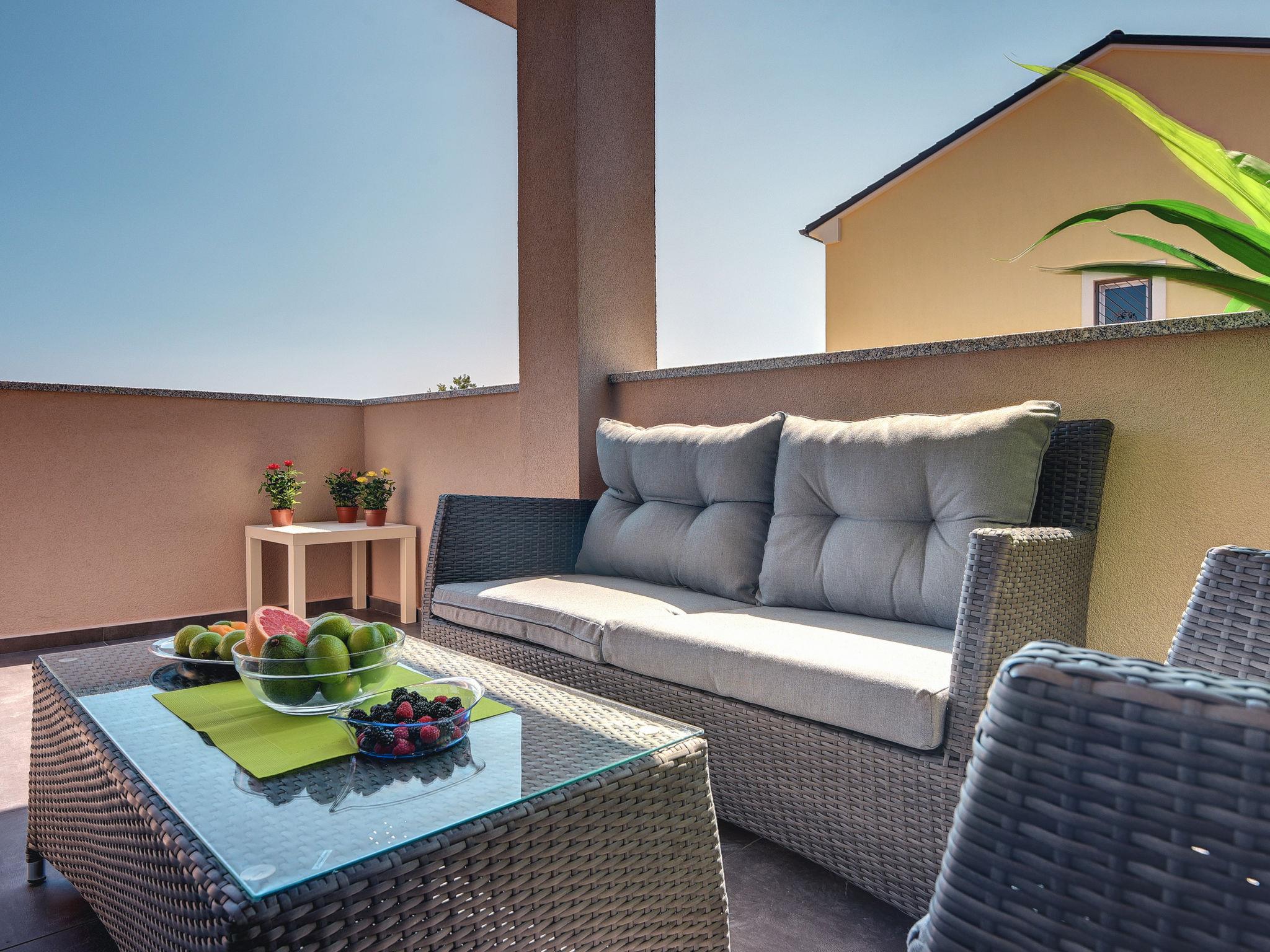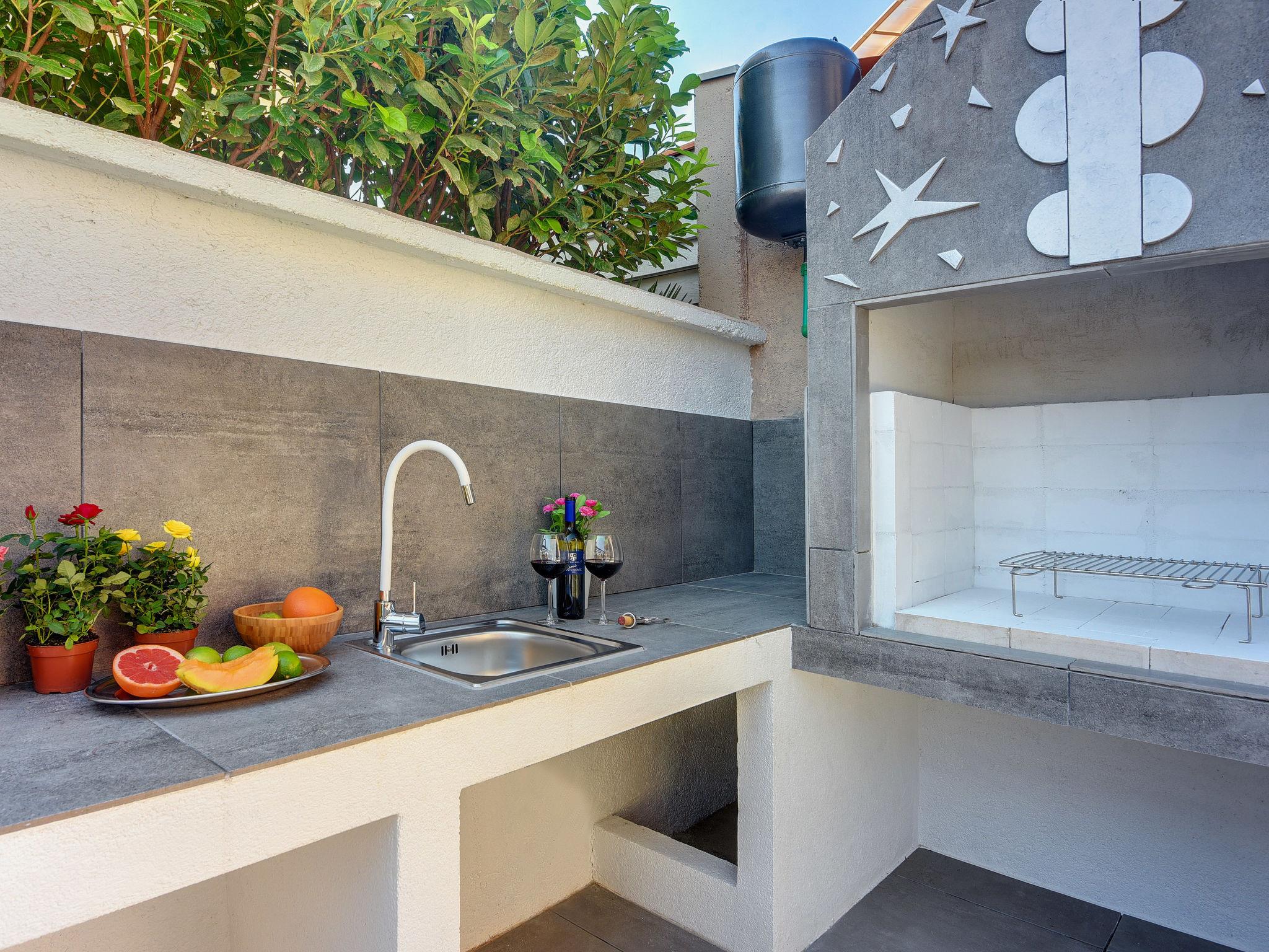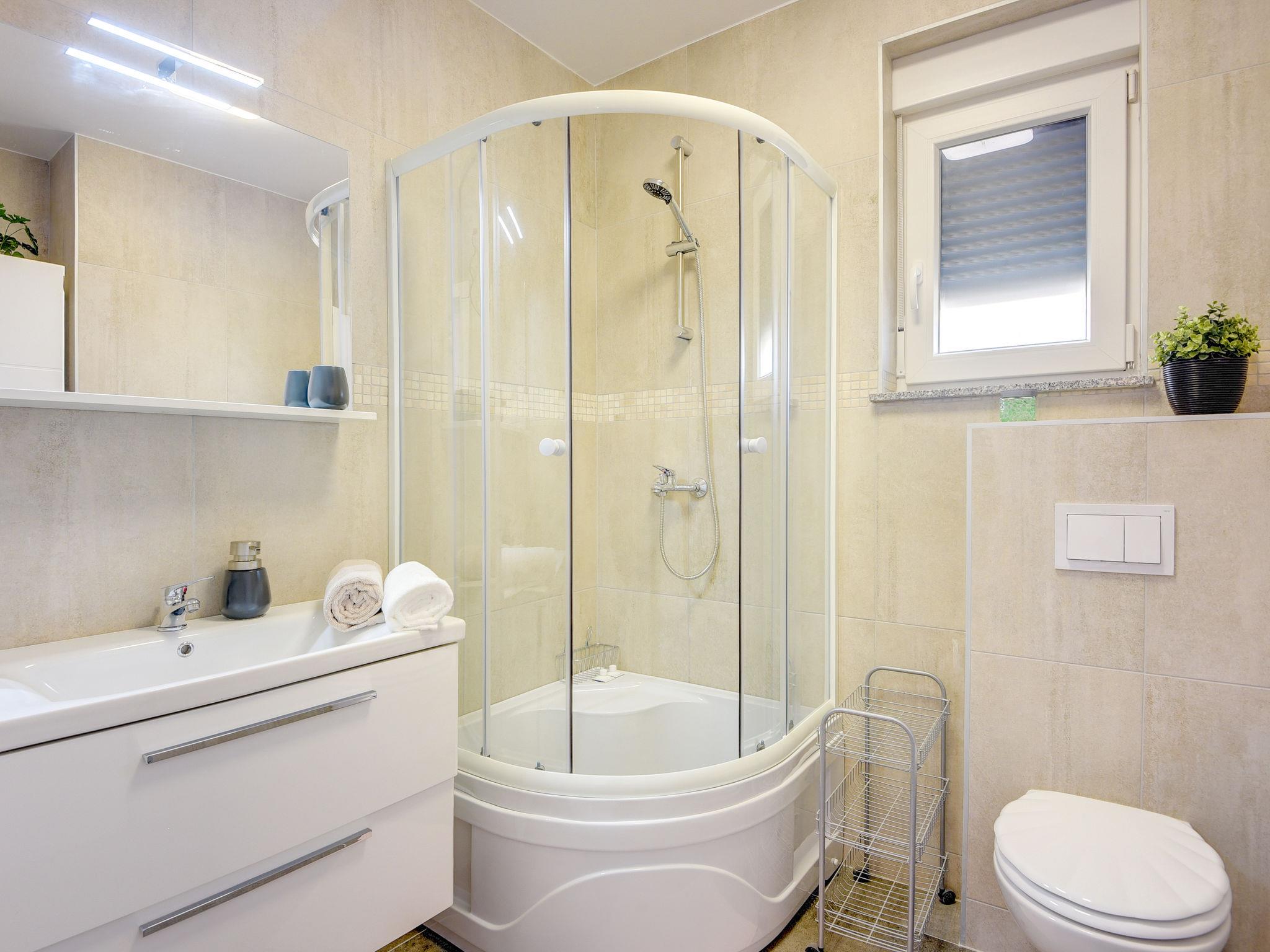 Ližnjan 2 km from Medulin: Villa "Noemi", 2 storeys. 1 km from the centre of Ližnjan, in a quiet, sunny, elevated position, 1 km from the sea, 1.2 km from the beach. Private: property 590 m2 (fenced), garden with wildlife garden, swimming pool angular (27 m2, depth 130 cm, seasonal availability: 01.May. - 01.Oct.) with internal staircase. Outdoor shower, terrace (20 m2), garden furniture, barbecue. In the house: internet access, washing machine. Roofed, parking (for 2 cars) at the house on the premises. Shop 650 m, restaurant 600 m, bus stop 1 km, sandy beach 2 km pebble beach 1.2 km, rocky beach 1.2 km. Tennis 500 m, riding stable 2 km. Nearby attractions: Adrenalin park 5 km, Nature park Kamenjak 10 km. Groups of teenagers on request only. The house consists of 2 apartments rented as one unit.