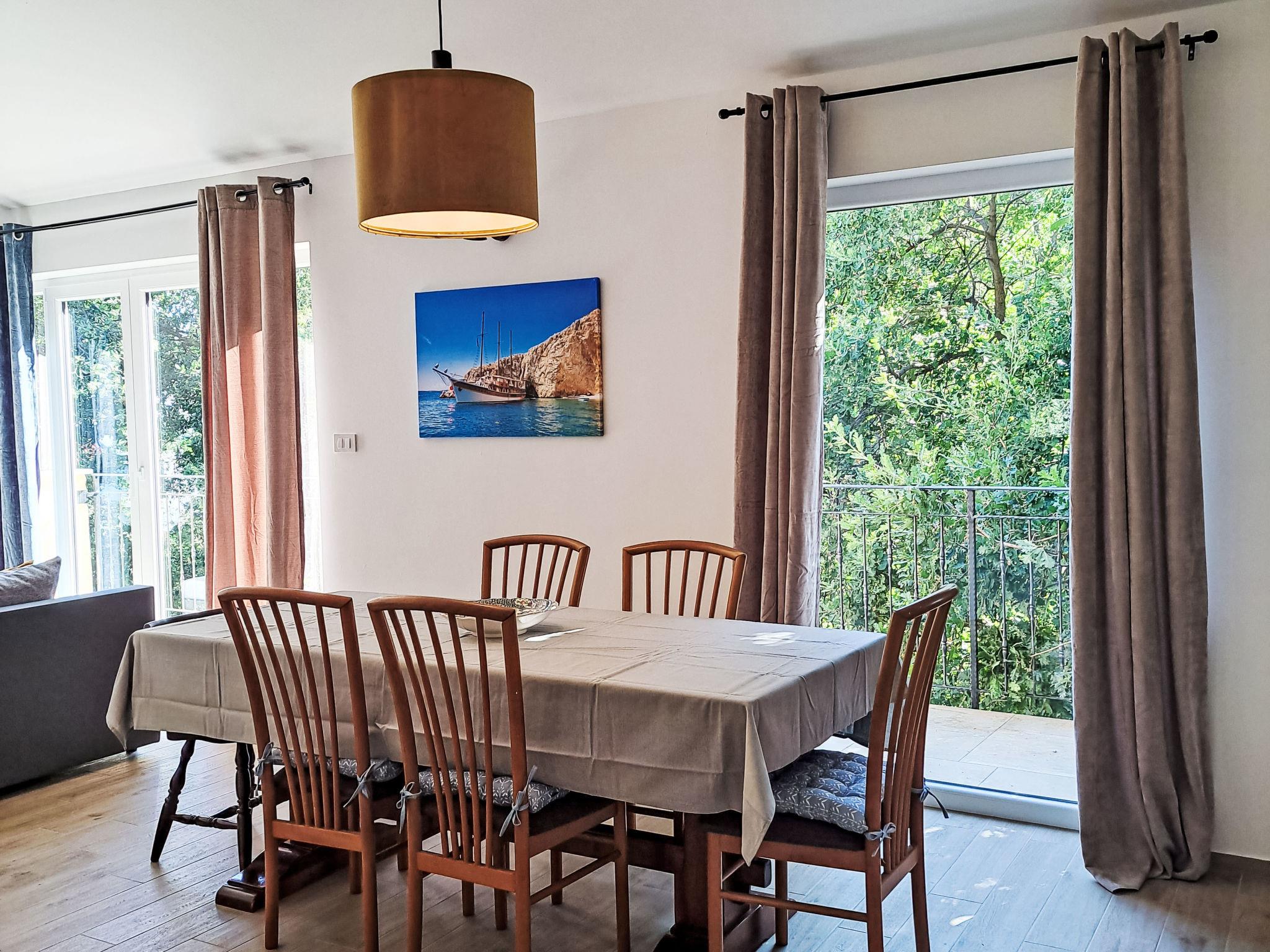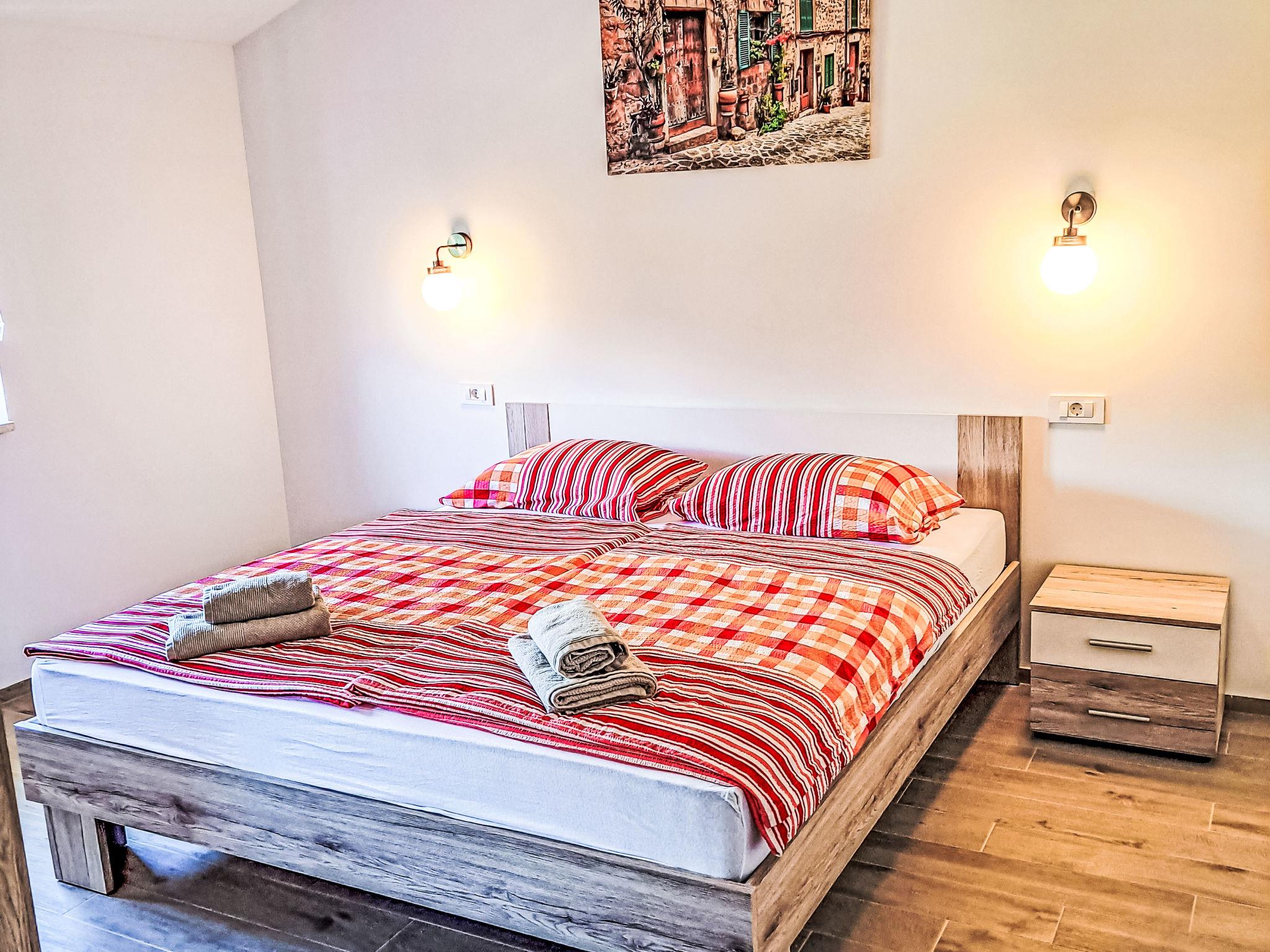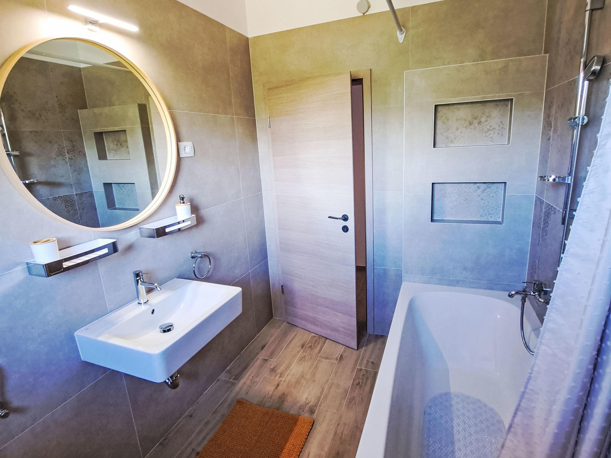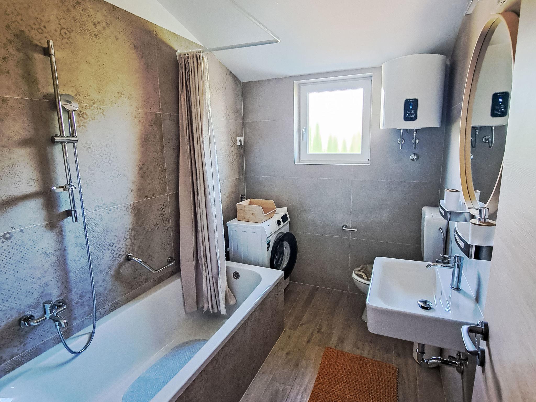 Ližnjan 2 km from Medulin: 2-family house "Fameja", surrounded by trees. 1 km from the centre of Ližnjan, in a quiet, sunny position, 2 km from the sea, 2 km from the beach. For shared use: property 1'000 m2 with natural garden. Children's playground (slide). Private: property 200 m2, garden with lawn and wildlife garden, swimming pool (above ground) (4 m diameter, seasonal availability: 27.Apr. - 12.Oct.). Pool maintenance by the owner/gardener. In the house: internet access, trampoline. Parking at the house on the premises. Shop, restaurant 100 m, bus stop 1 km, sandy beach 2 km pebble beach 2 km, rocky beach 2 km. Tennis 500 m, riding stable 2 km. Nearby attractions: Adrenalin park 5 km, Nature park Rt Kamenjak 10 km.