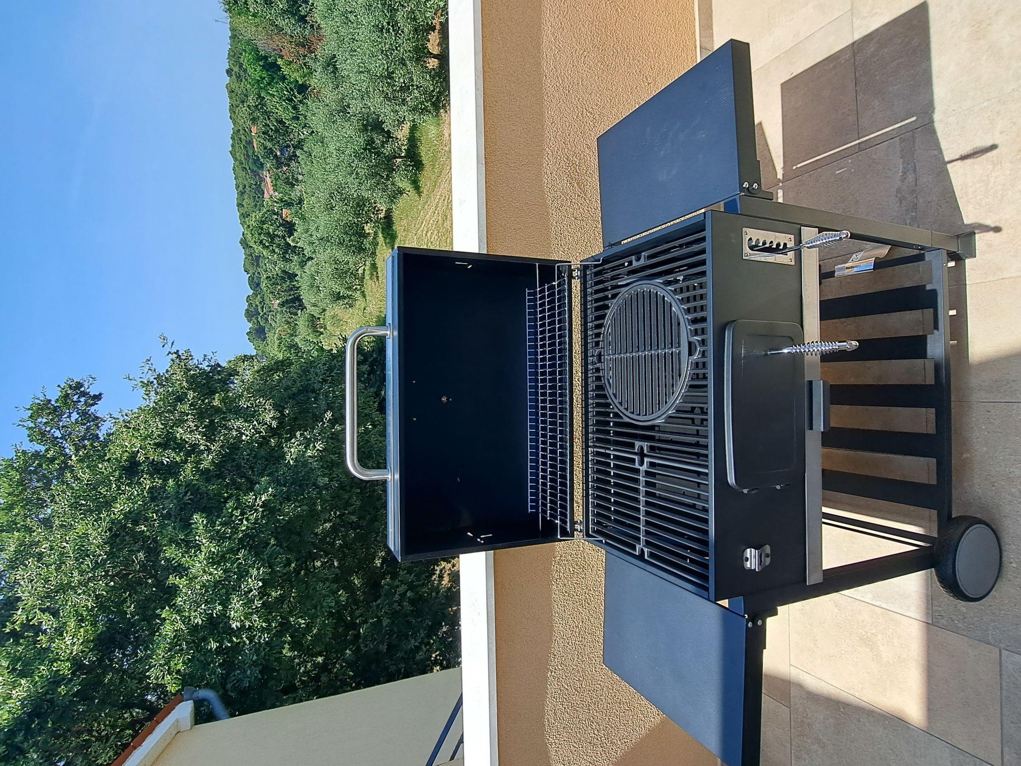 4-room apartment 100 m2 on 1st floor. Living/dining room with 1 double sofabed (160 cm, length 200 cm), satellite TV (flat screen), air conditioning. Exit to the terrace. 2 rooms, each room with 1 french bed (180 cm, length 200 cm). 1 room with 1 bed (90 cm, length 200 cm). Entrance hall with air conditioning. Open kitchen (oven, dishwasher, 4 ceramic glass hob hotplates, toaster, kettle, microwave, freezer, electric coffee machine). Bath/WC, shower/WC. Terrace 30 m2. Terrace furniture, barbecue (portable). View of the countryside. Facilities: washing machine, baby cot, hair dryer. Internet (WiFi, free). Please note: private entrance.