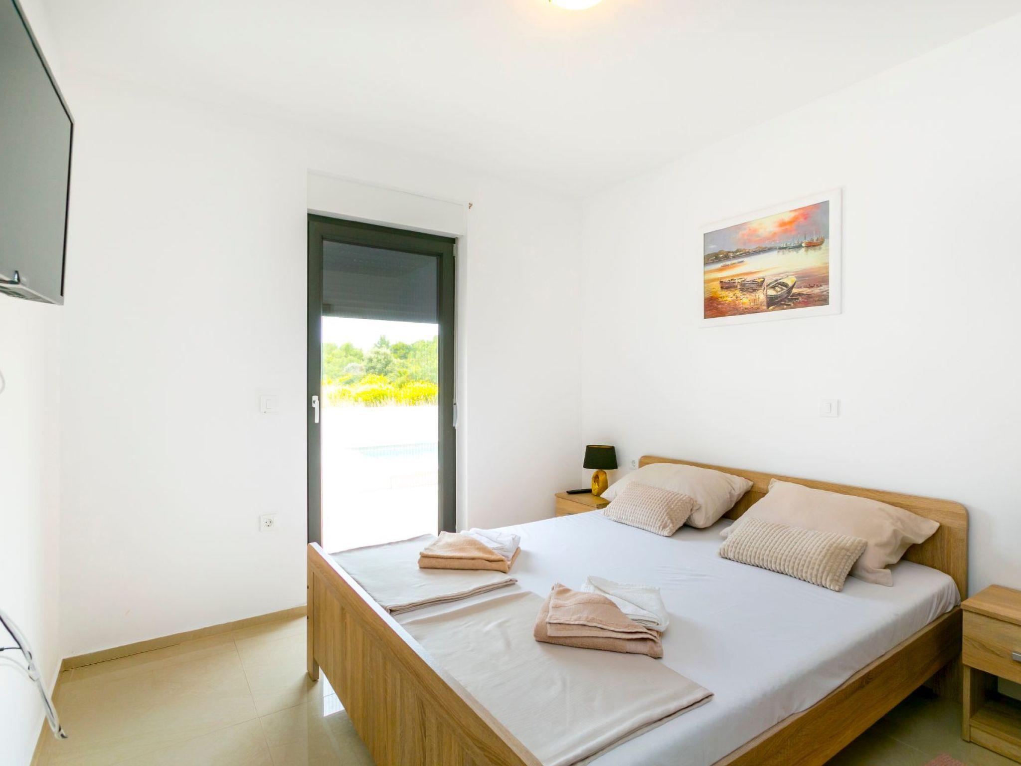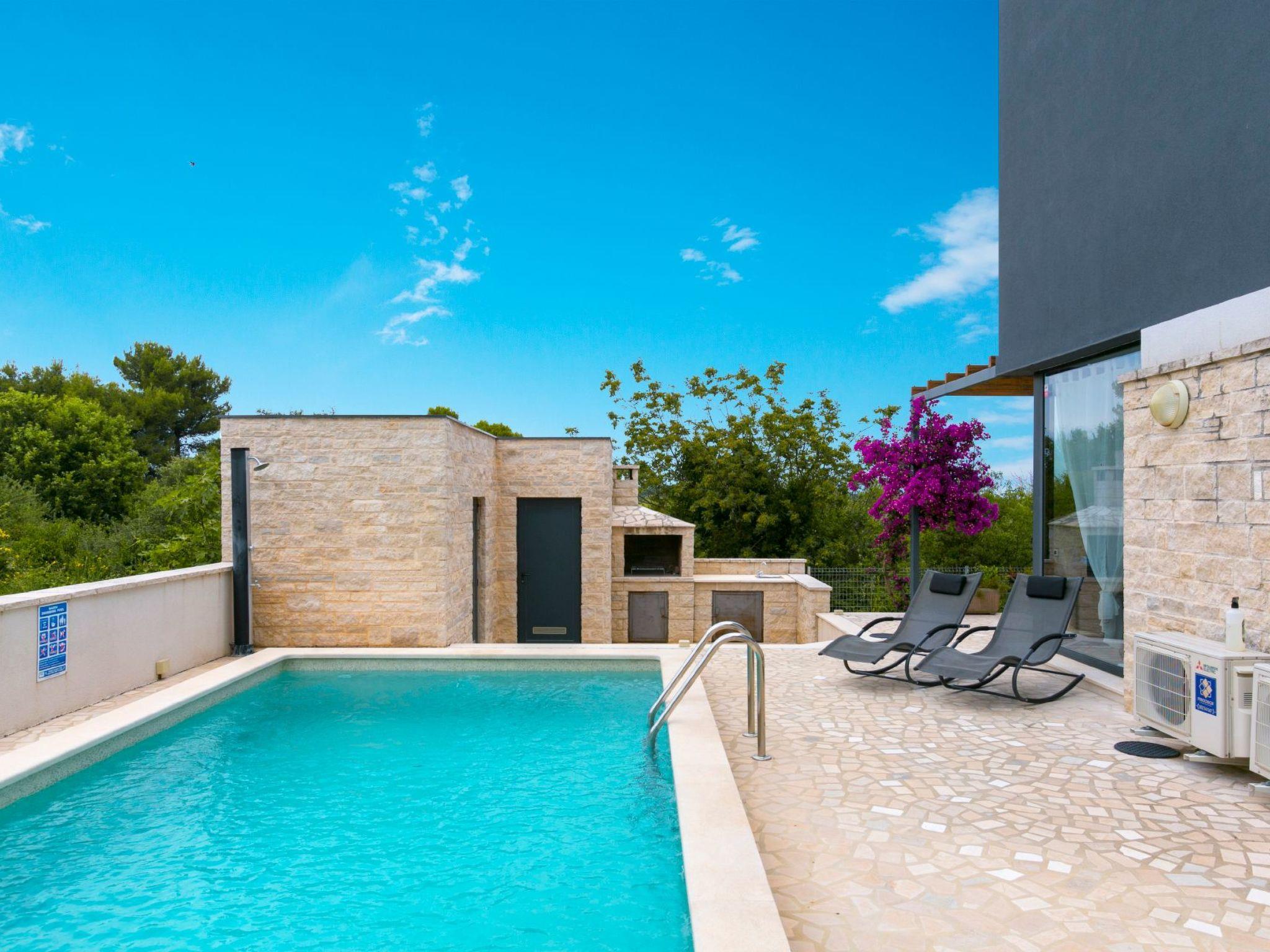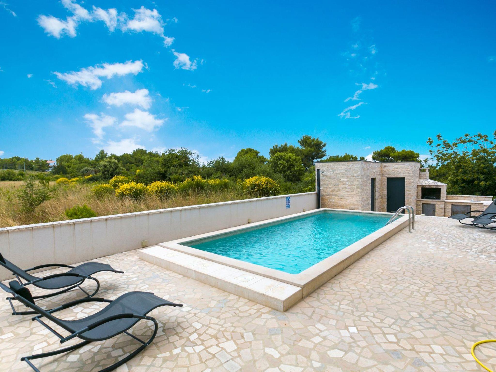 This modern and stylishly decorated apartment with a private heated pool is located in a quiet location in Ližnjan, just 600m from the sea. The island of Levan, known for its sandy beach, can be reached in just a few minutes by taxi boat. The popular tourist destination of Medulin is two kilometers away.