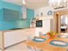The 52m² apartment is on the first floor of the house and can accommodate four people comfortably. It has a bedroom with a double bed (160 x 200cm) and a bathroom with a shower, toilet and hairdryer. The spacious living room comprises a modern kitchen, a dining area and a sitting area. The kitchen is equipped with a stove, oven, coffee machine, fridge and dishwasher. The sofa bed (140 x 190cm) in front of the TV is suitable for two people. The living area and the bedroom have air conditioning.