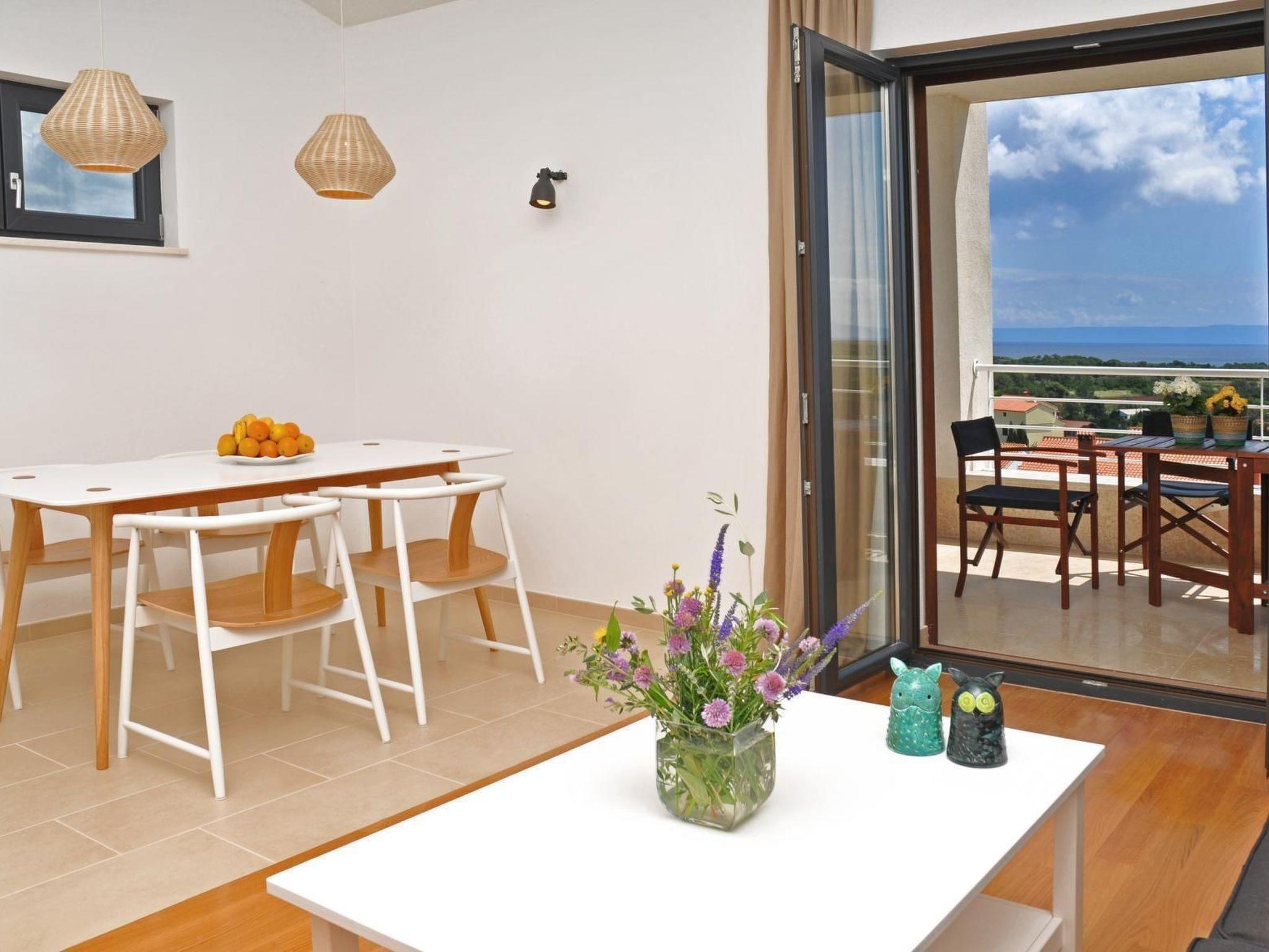 The balcony is furnished with a table and chairs. It is ideal for relaxing or dining, while enjoying the view.