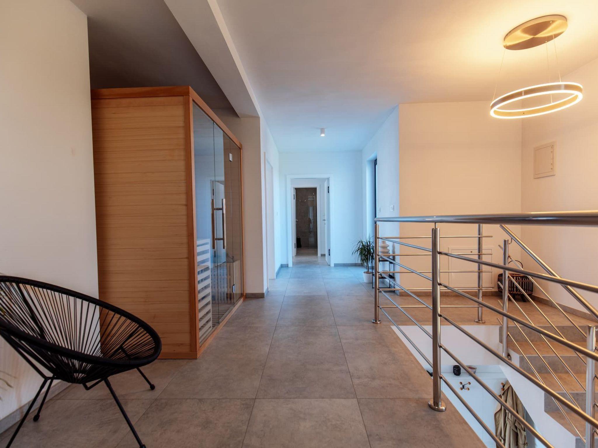 On the first floor of the villa there are three bedrooms (equipped with TV and air conditioning), each with its own bathroom and sauna.