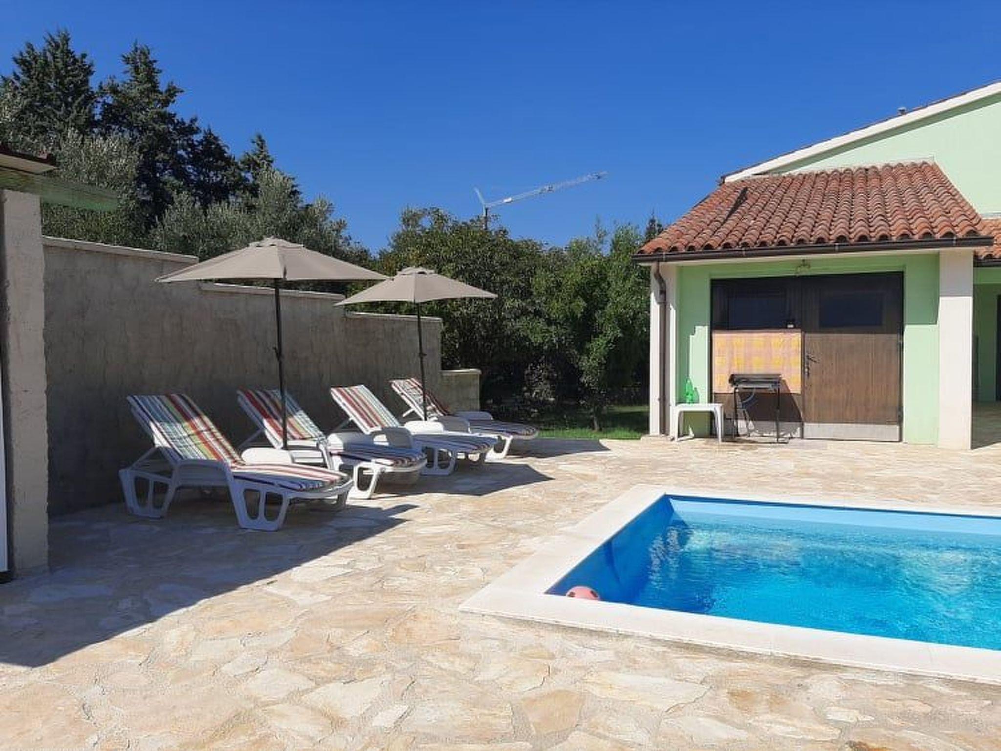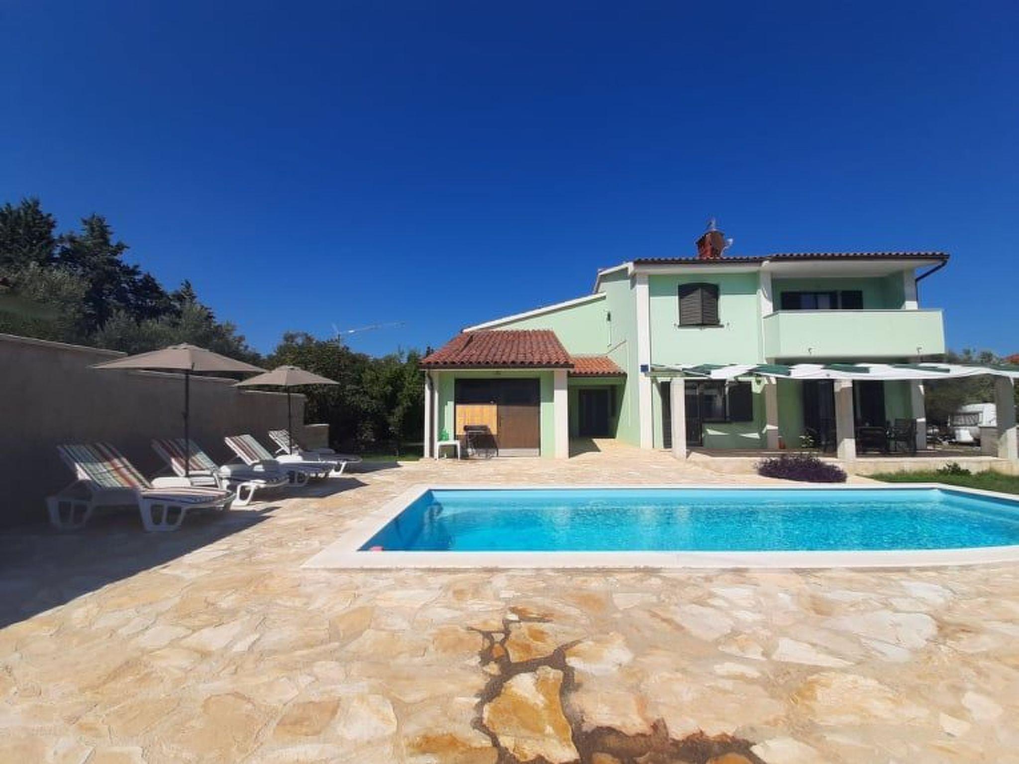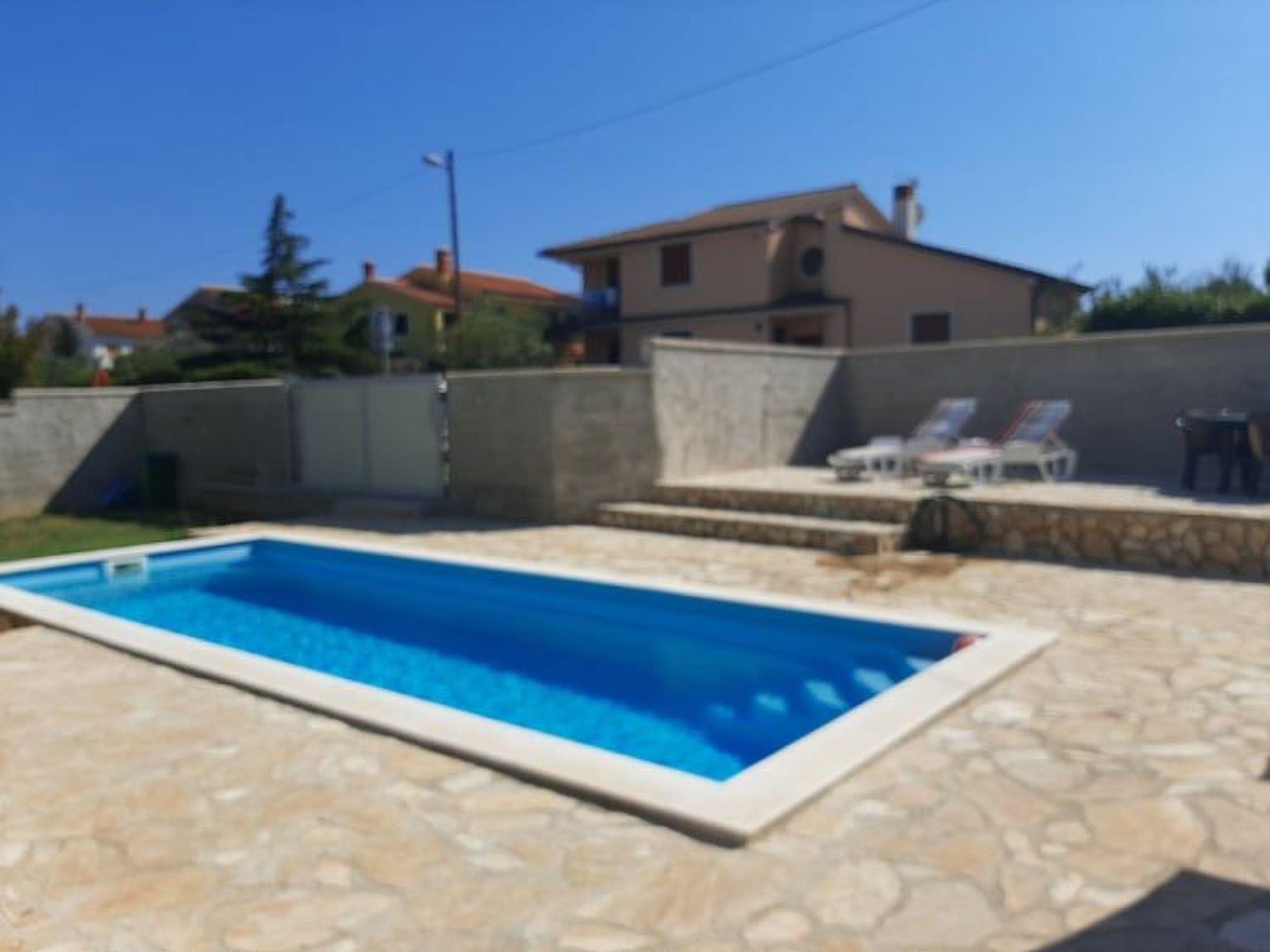 The house is detached, fenced yard, private parking, pool 30 m2, outdoor grill.