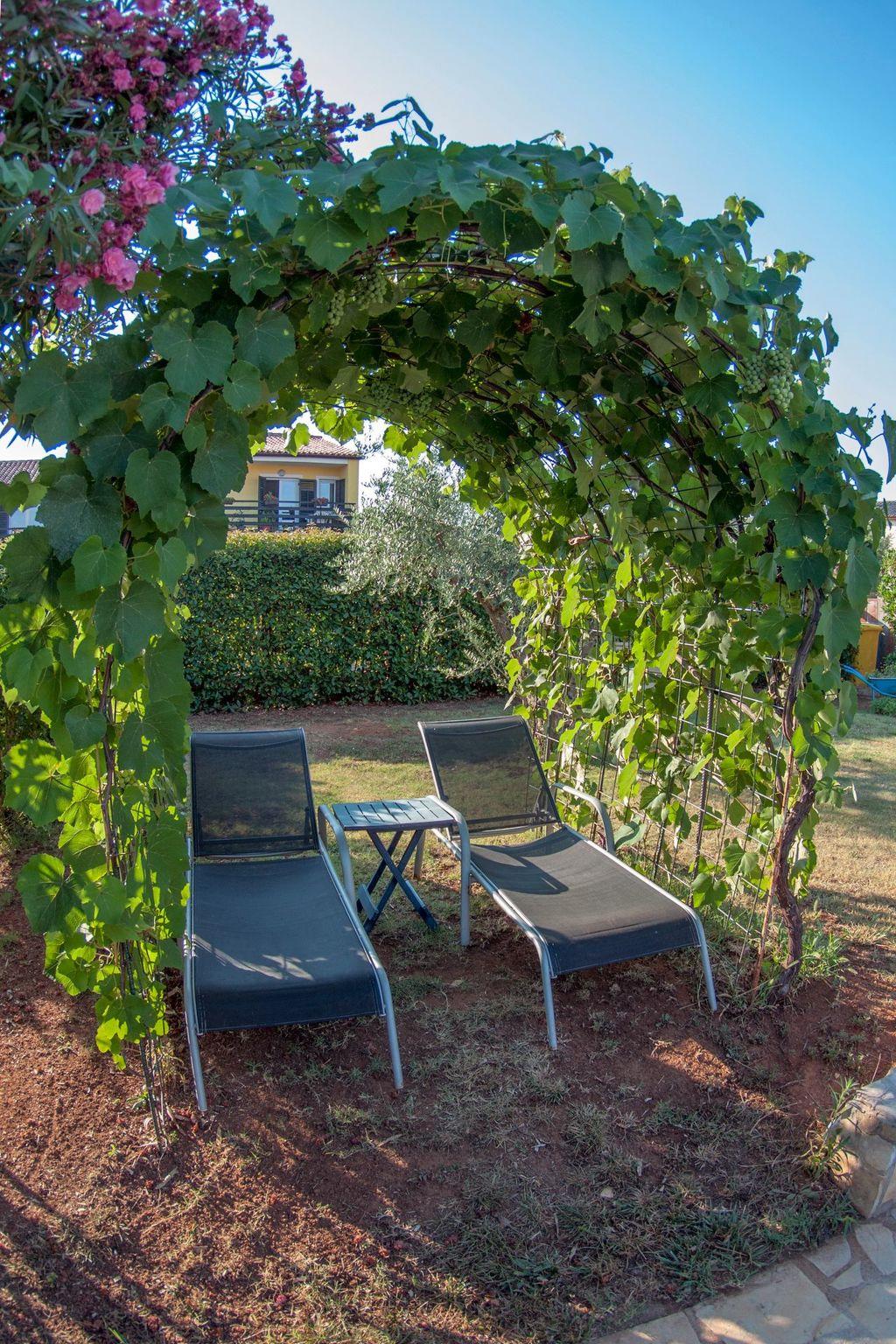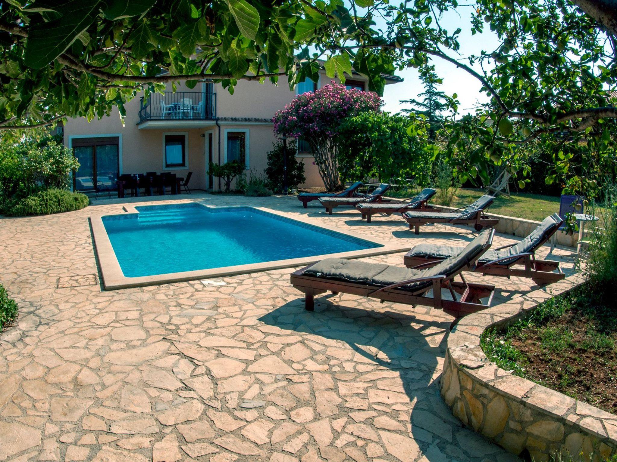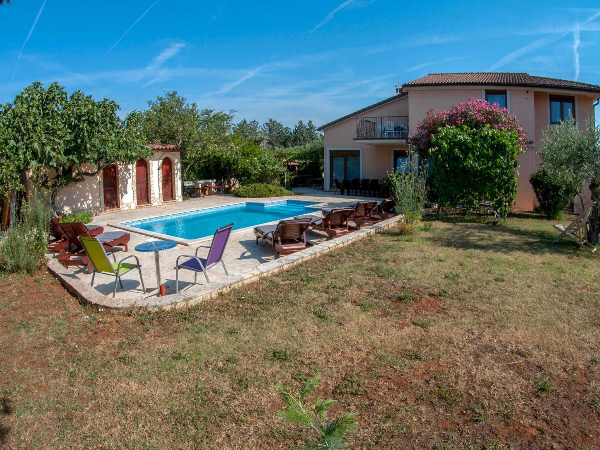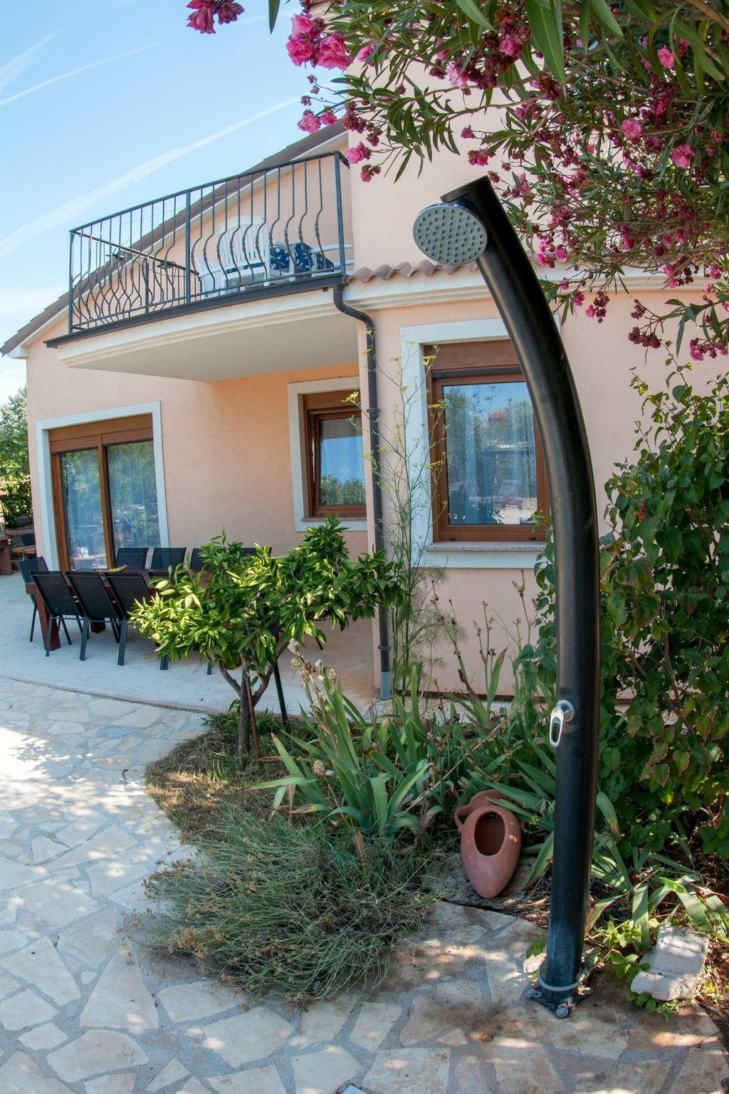 Modern and stylish house with communal garden and swimming poolA beautifully decorated house in a rustic-modern style consists of an interior and an exterior.On the ground floor there is a fully equipped kitchen with a dining room that continues into a spacious and warmly decorated living room. From the living room you enter the sleeping area, where there is a comfortable bedroom with a double bed, a children's room with two single beds, 1 bathroom, 1 toilet with a laundry room and a storage room. The kitchen, living room and both rooms lead to the outside of the house.Stairs from the living/dining room lead to the first floor gallery where there is another separate living room. From it you enter separate spaces: two comfortable bedrooms with double beds, which in turn have their own bathroom. Each room has its own living room (with an extra bed - sofa), a bathroom and a balcony (one balcony overlooks a beautifully landscaped and green garden, while the other overlooks the landscape. In one of the living rooms, there is also a fully equipped auxiliary kitchen. The exterior of the house is fully equipped and surrounded by a green oasis.There you can refresh yourself in the private pool, sunbathe on comfortable wooden deckchairs or seek shade at one of the four outdoor tables. The main table (for 12 people) is suitable for family gatherings with meals. Two grills (gas and charcoal) and one table are located on the part of the terrace that exits the kitchen, while the other two smaller tables are separated and located in the shade of fig and plum trees that ripen during the summer season and guests eat them with great pleasure. The house also has a heating system and is suitable for rent outside the tourist season. The house is very suitable for families.Book Villa Maja and experience a peaceful vacation in the wonderful fishing village of Ližnjan!This very well furnished and comfortable accommodation is located just a few minutes from the famous Medulin and Ližnjan beaches, the most beautiful natural beaches in Istria and Croatia, with unpolluted sea and indented coastline with its rocks and gravel.