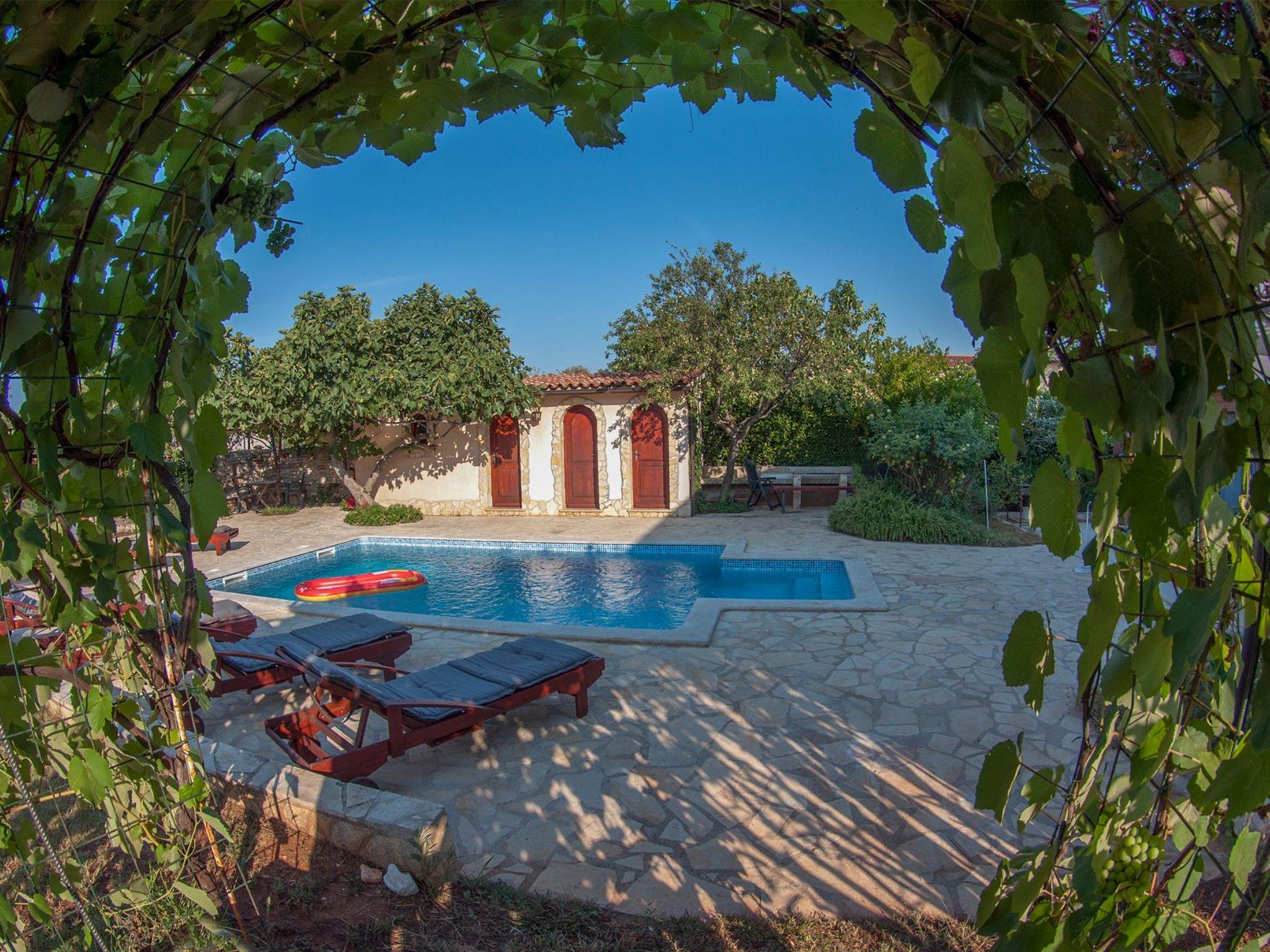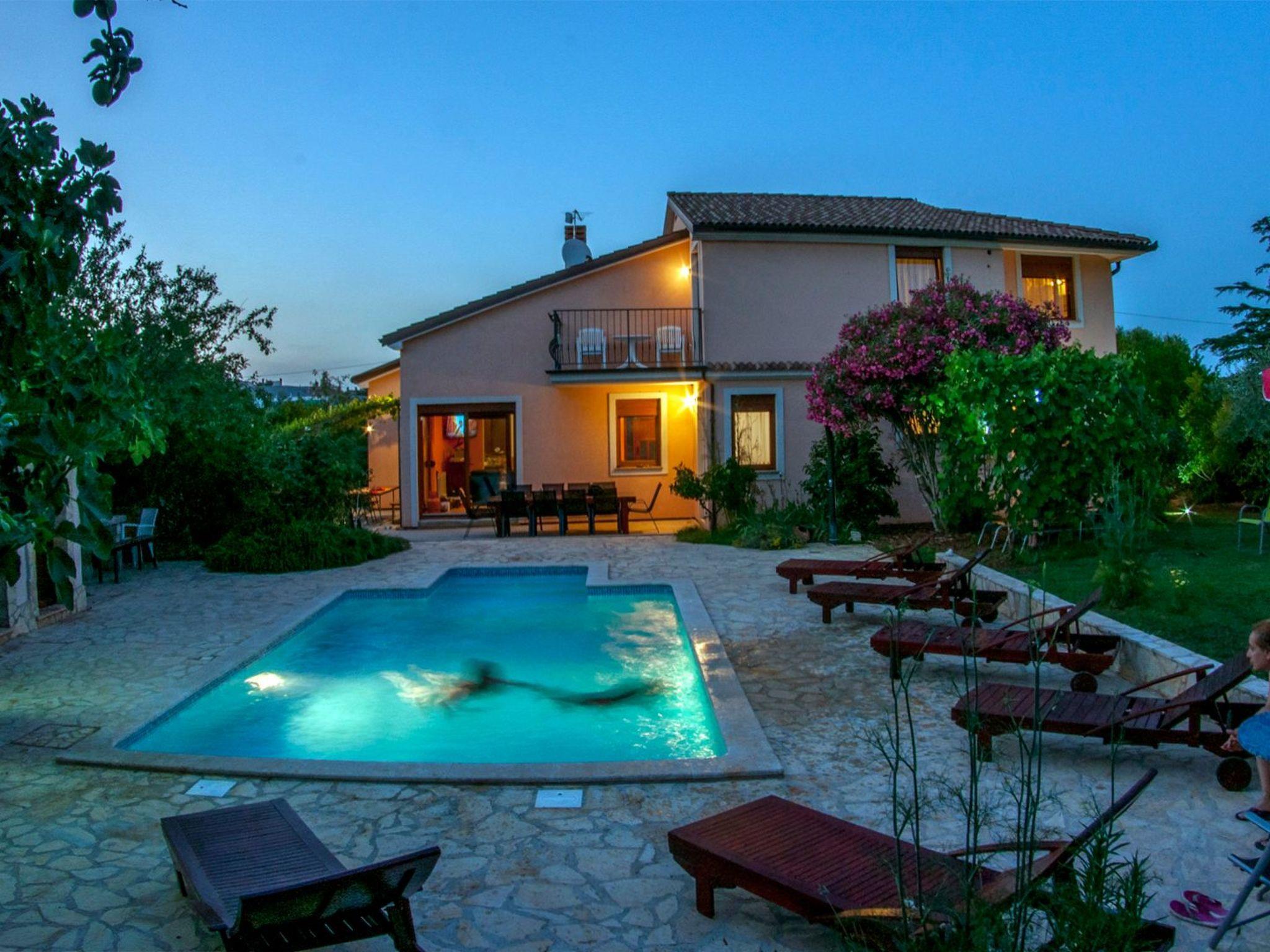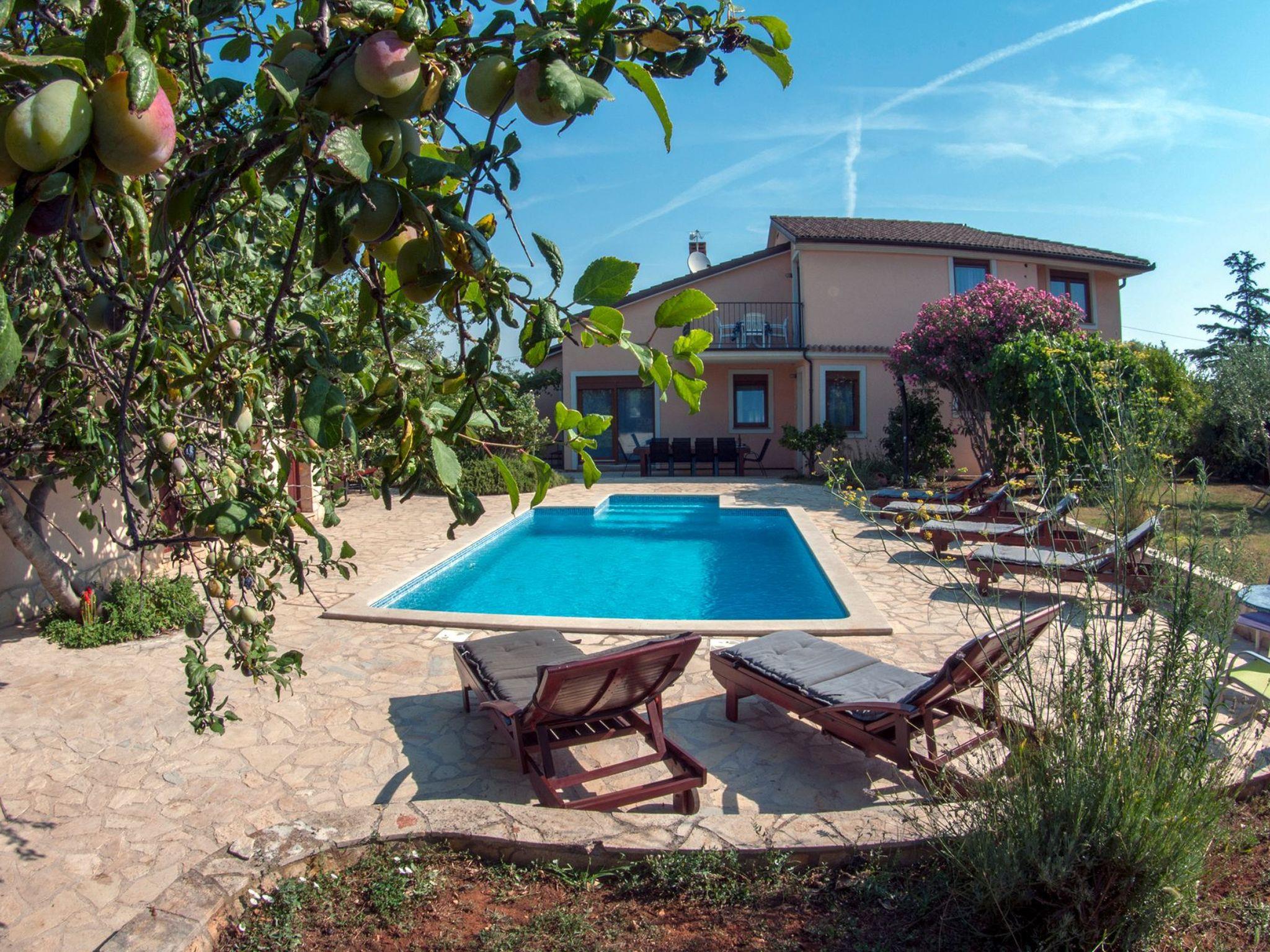 Modern and stylish house with communal garden and swimming poolA beautifully decorated house in a rustic-modern style consists of an interior and an exterior.On the ground floor there is a fully equipped kitchen with a dining room that continues into a spacious and warmly decorated living room. From the living room you enter the sleeping area, where there is a comfortable bedroom with a double bed, a children's room with two single beds, 1 bathroom, 1 toilet with a laundry room and a storage room. The kitchen, living room and both rooms lead to the outside of the house.Stairs from the living/dining room lead to the first floor gallery where there is another separate living room. From it you enter separate spaces: two comfortable bedrooms with double beds, which in turn have their own bathroom. Each room has its own living room (with an extra bed - sofa), a bathroom and a balcony (one balcony overlooks a beautifully landscaped and green garden, while the other overlooks the landscape. In one of the living rooms, there is also a fully equipped auxiliary kitchen. The exterior of the house is fully equipped and surrounded by a green oasis.There you can refresh yourself in the private pool, sunbathe on comfortable wooden deckchairs or seek shade at one of the four outdoor tables. The main table (for 12 people) is suitable for family gatherings with meals. Two grills (gas and charcoal) and one table are located on the part of the terrace that exits the kitchen, while the other two smaller tables are separated and located in the shade of fig and plum trees that ripen during the summer season and guests eat them with great pleasure. The house also has a heating system and is suitable for rent outside the tourist season. The house is very suitable for families.Book Villa Maja and experience a peaceful vacation in the wonderful fishing village of Ližnjan!This very well furnished and comfortable accommodation is located just a few minutes from the famous Medulin and Ližnjan beaches, the most beautiful natural beaches in Istria and Croatia, with unpolluted sea and indented coastline with its rocks and gravel.