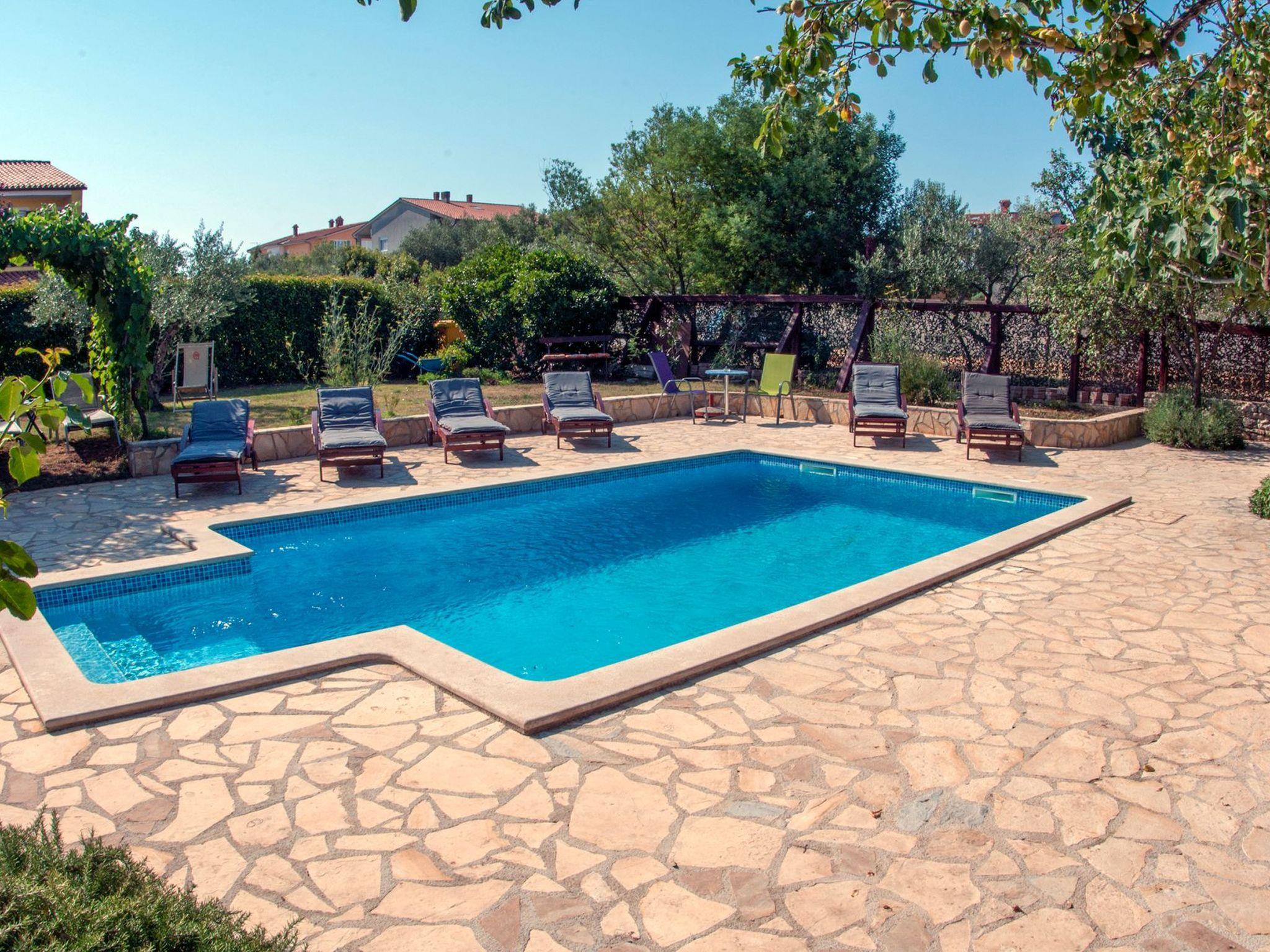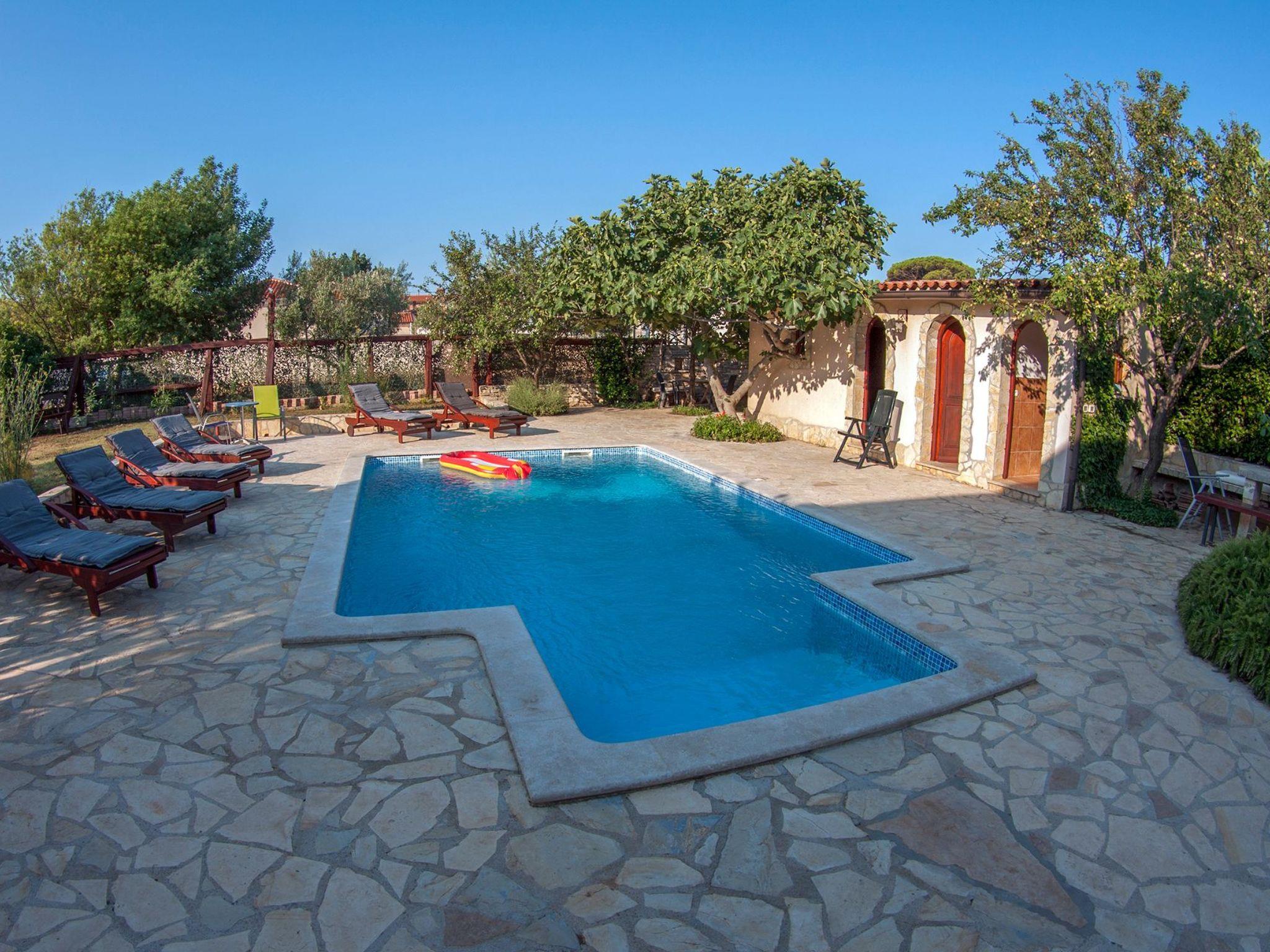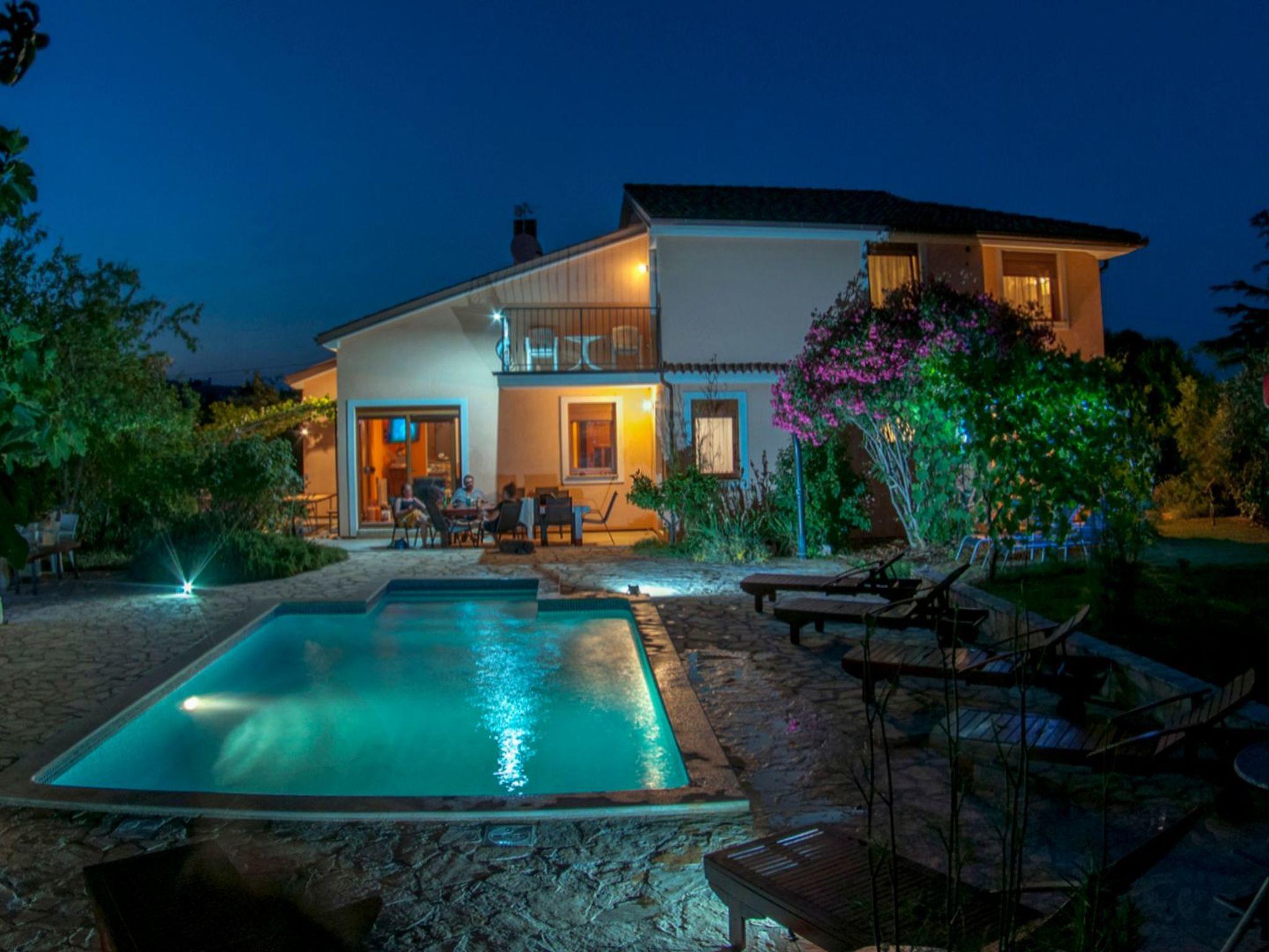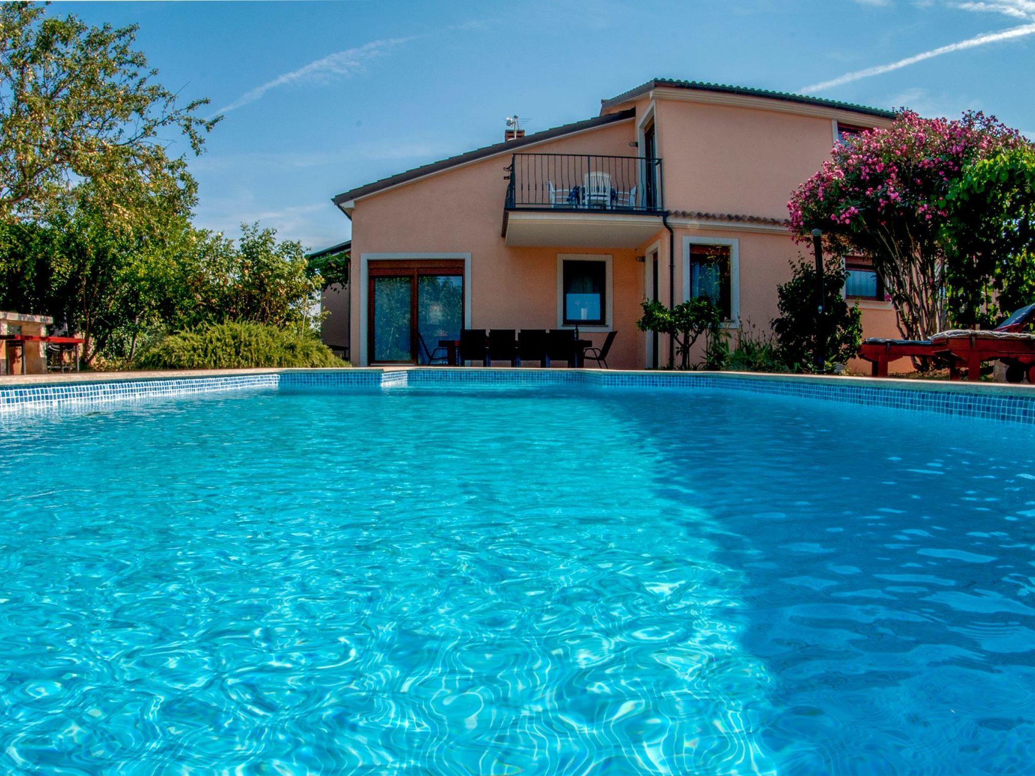 Modern and stylish house with communal garden and swimming poolA beautifully decorated house in a rustic-modern style consists of an interior and an exterior.On the ground floor there is a fully equipped kitchen with a dining room that continues into a spacious and warmly decorated living room. From the living room you enter the sleeping area, where there is a comfortable bedroom with a double bed, a children's room with two single beds, 1 bathroom, 1 toilet with a laundry room and a storage room. The kitchen, living room and both rooms lead to the outside of the house.Stairs from the living/dining room lead to the first floor gallery where there is another separate living room. From it you enter separate spaces: two comfortable bedrooms with double beds, which in turn have their own bathroom. Each room has its own living room (with an extra bed - sofa), a bathroom and a balcony (one balcony overlooks a beautifully landscaped and green garden, while the other overlooks the landscape. In one of the living rooms, there is also a fully equipped auxiliary kitchen. The exterior of the house is fully equipped and surrounded by a green oasis.There you can refresh yourself in the private pool, sunbathe on comfortable wooden deckchairs or seek shade at one of the four outdoor tables. The main table (for 12 people) is suitable for family gatherings with meals. Two grills (gas and charcoal) and one table are located on the part of the terrace that exits the kitchen, while the other two smaller tables are separated and located in the shade of fig and plum trees that ripen during the summer season and guests eat them with great pleasure. The house also has a heating system and is suitable for rent outside the tourist season. The house is very suitable for families.Book Villa Maja and experience a peaceful vacation in the wonderful fishing village of Ližnjan!This very well furnished and comfortable accommodation is located just a few minutes from the famous Medulin and Ližnjan beaches, the most beautiful natural beaches in Istria and Croatia, with unpolluted sea and indented coastline with its rocks and gravel.