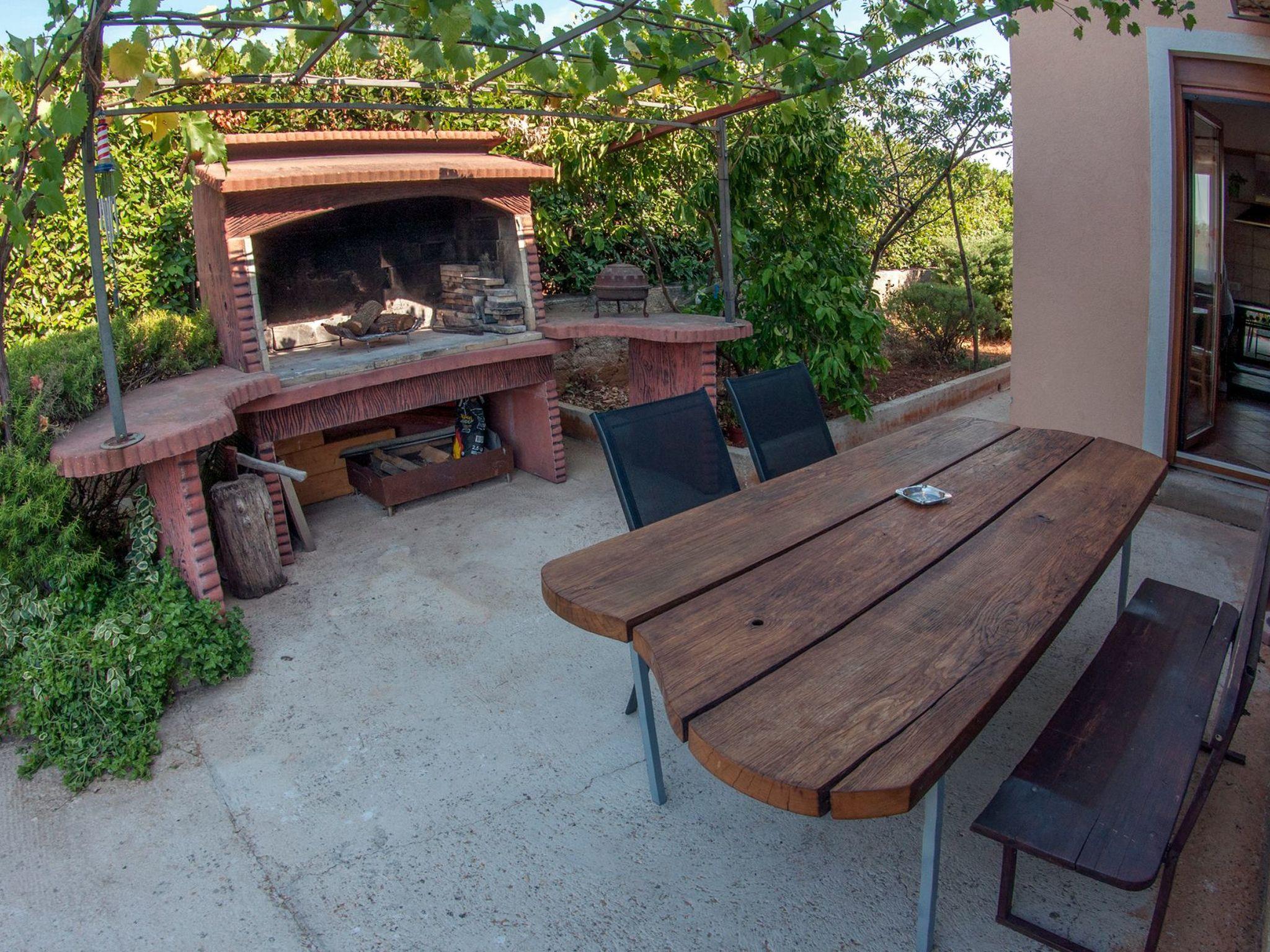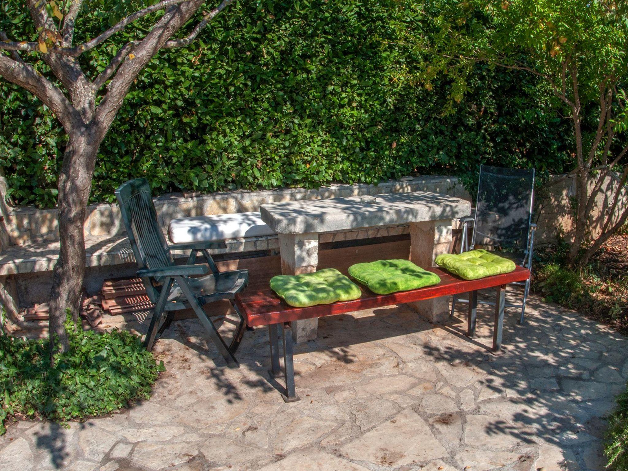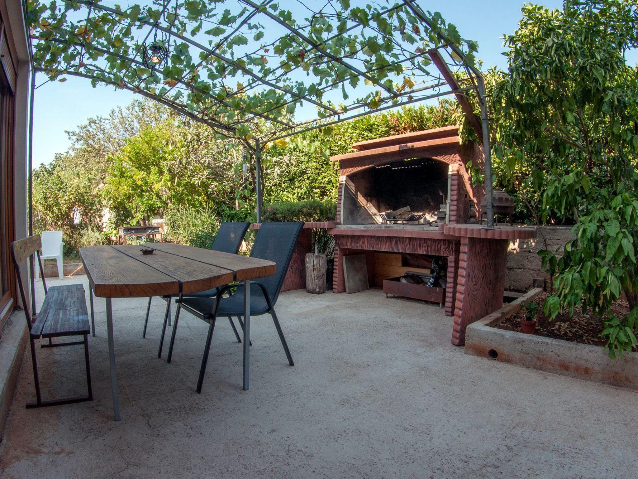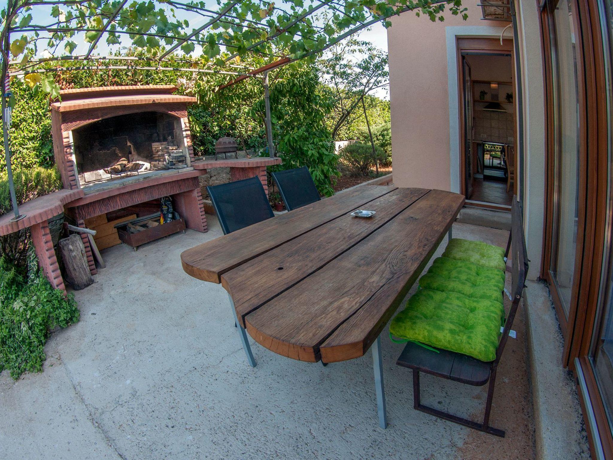The garden is spacious and in its focus is a blue pool surrounded by stone paving and Mediterranean plants; figs, grapes, pomegranates, plums, cherries, lavender, rosemary and many other aromatic herbs.Two grills (gas and charcoal) and one table are located on the part of the terrace that exits the kitchen, while the other two smaller tables are separated and located in the shade of fig and plum trees that ripen during the summer season and guests eat them with great pleasure.There is also an outdoor shower and toilet in the garden.In front of the house there is parking for four vehicles.