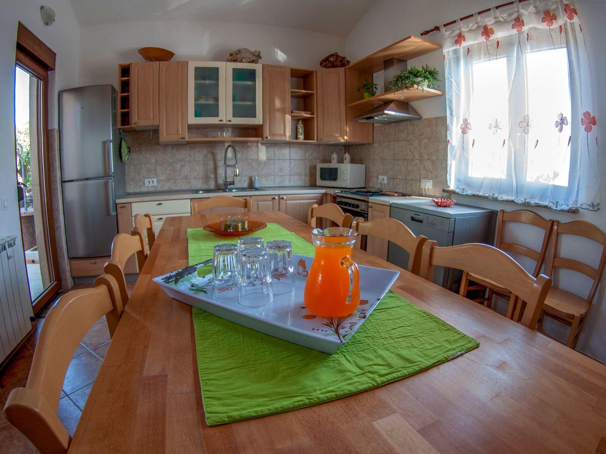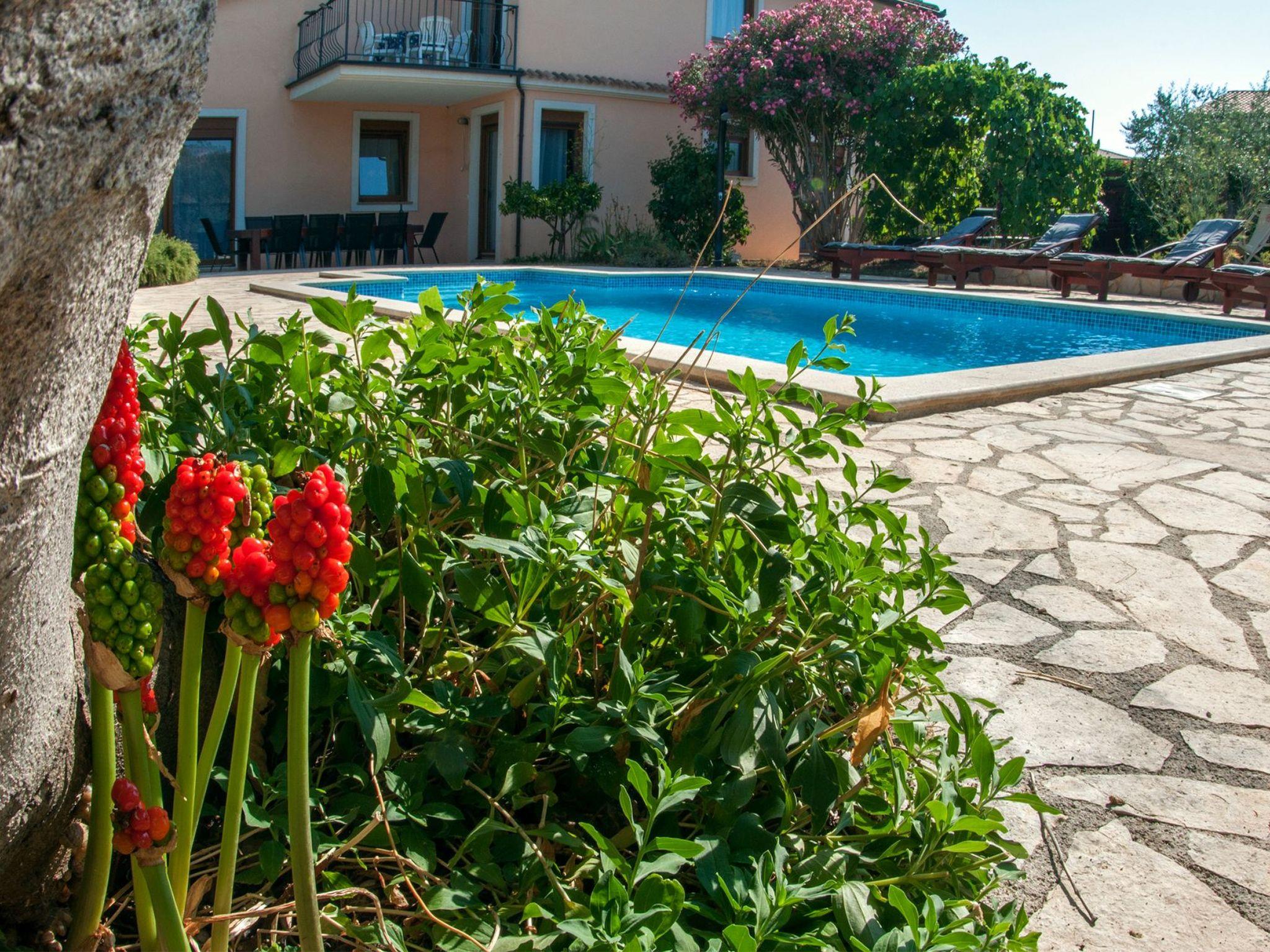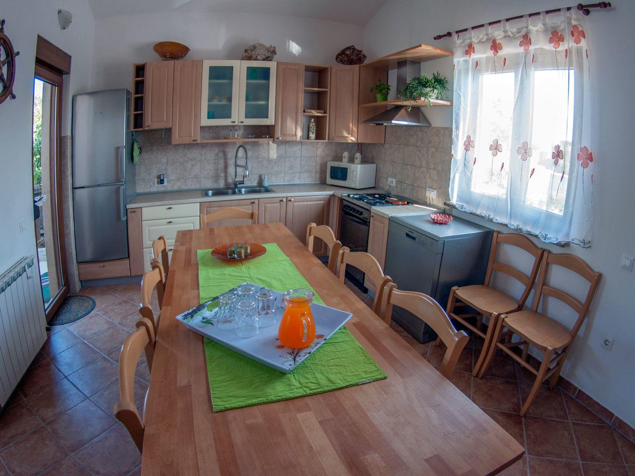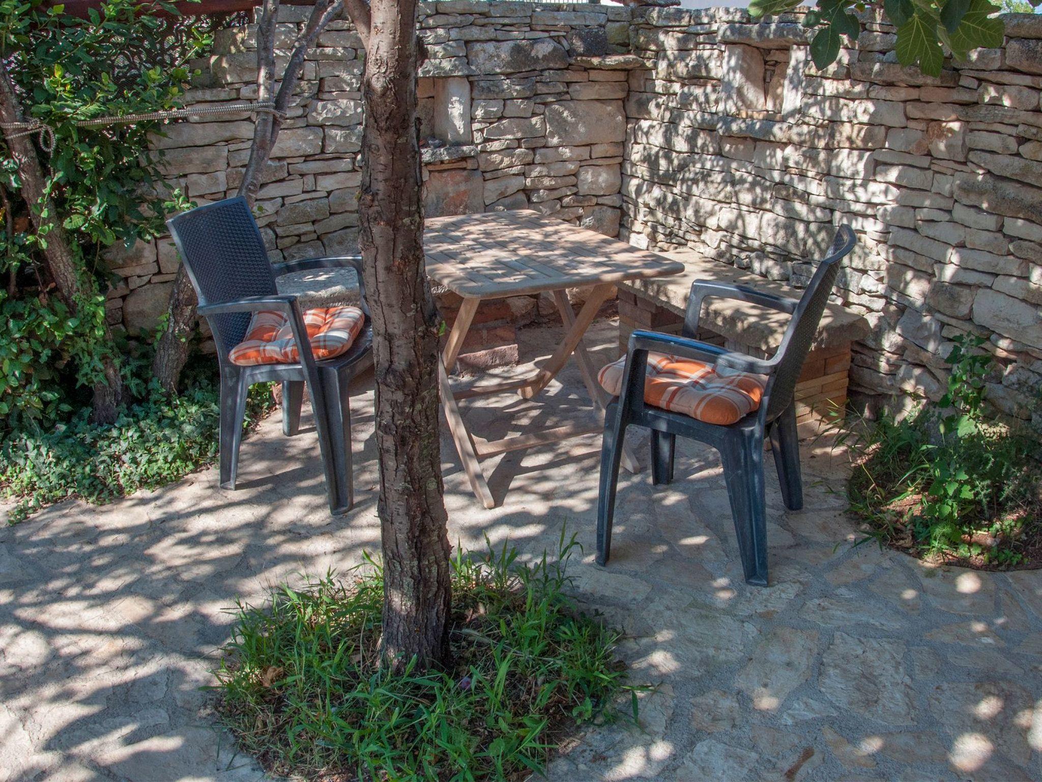 The garden is spacious and in its focus is a blue pool surrounded by stone paving and Mediterranean plants; figs, grapes, pomegranates, plums, cherries, lavender, rosemary and many other aromatic herbs.Two grills (gas and charcoal) and one table are located on the part of the terrace that exits the kitchen, while the other two smaller tables are separated and located in the shade of fig and plum trees that ripen during the summer season and guests eat them with great pleasure.There is also an outdoor shower and toilet in the garden.In front of the house there is parking for four vehicles.