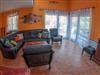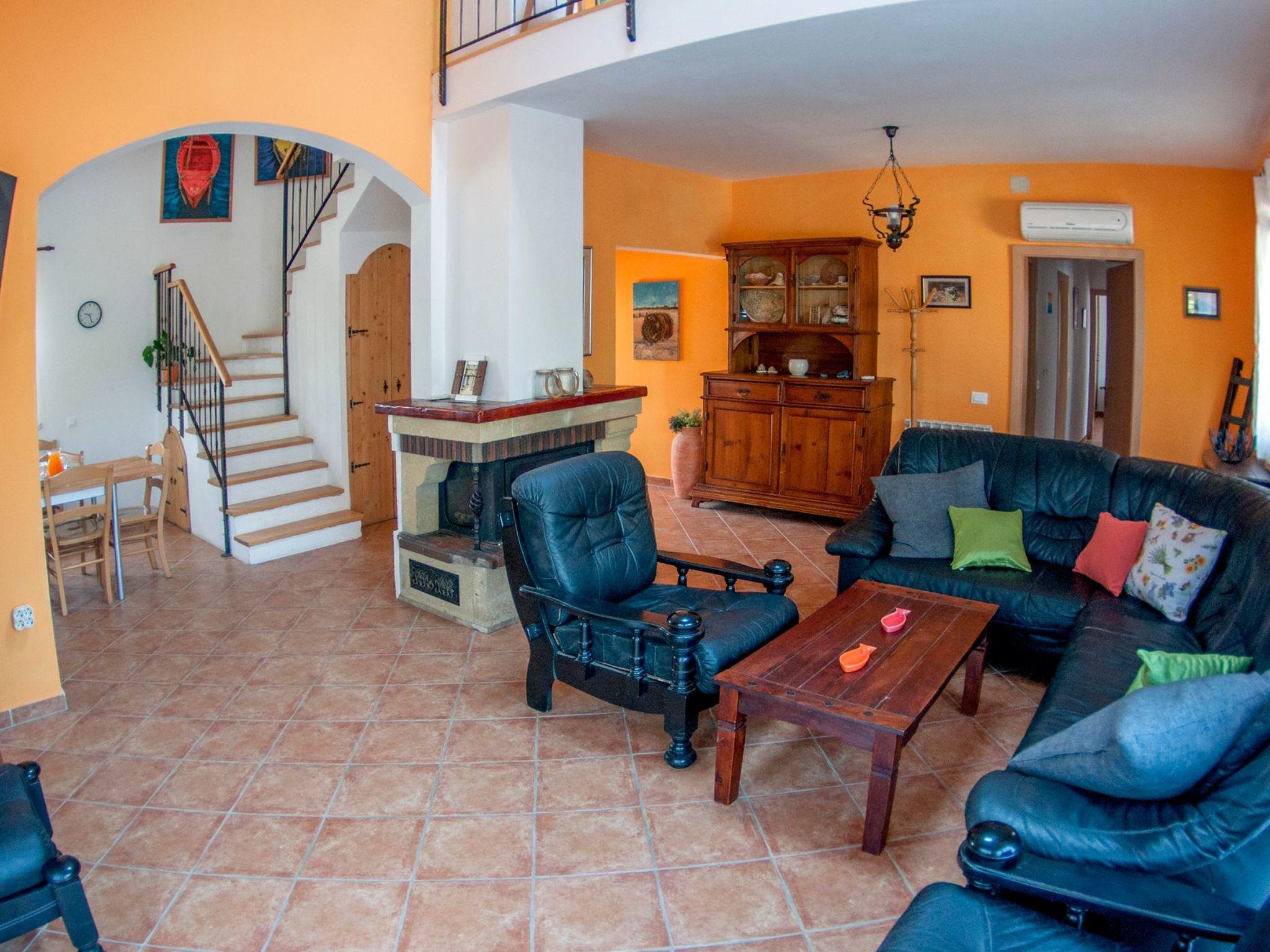 This 250m² house is very spacious and is suitable for 10 people. It is on two floors and is furnished in a rustic-modern style. Entirely, there is 6 air conditioning units, free Wi-Fi, satellite TV, two kitchen, 3 bathroom (one with whirlpool bath wich will make your stay even more pleasant), 1 toilet with a laundry room and a storage room, 3 bedrooms, one children's room with two single beds, two balconies and four living rooms. Each living room is equipped with a TV.On the ground floor is the spacious living room with a fireplace and a cosy sitting corner is connected to the kitchen through an open archway. The kitchen is fully-equipped and also has a dining space.