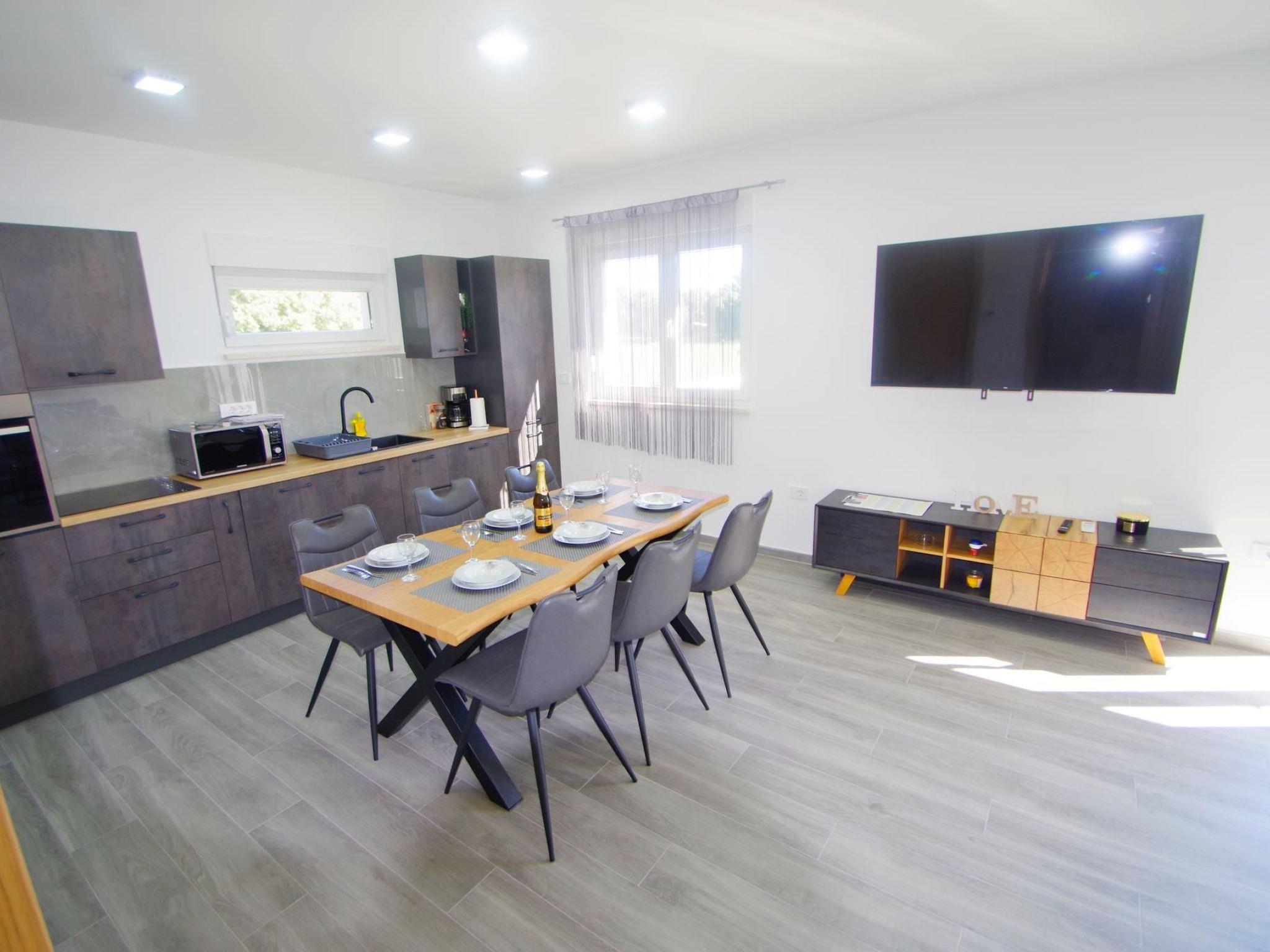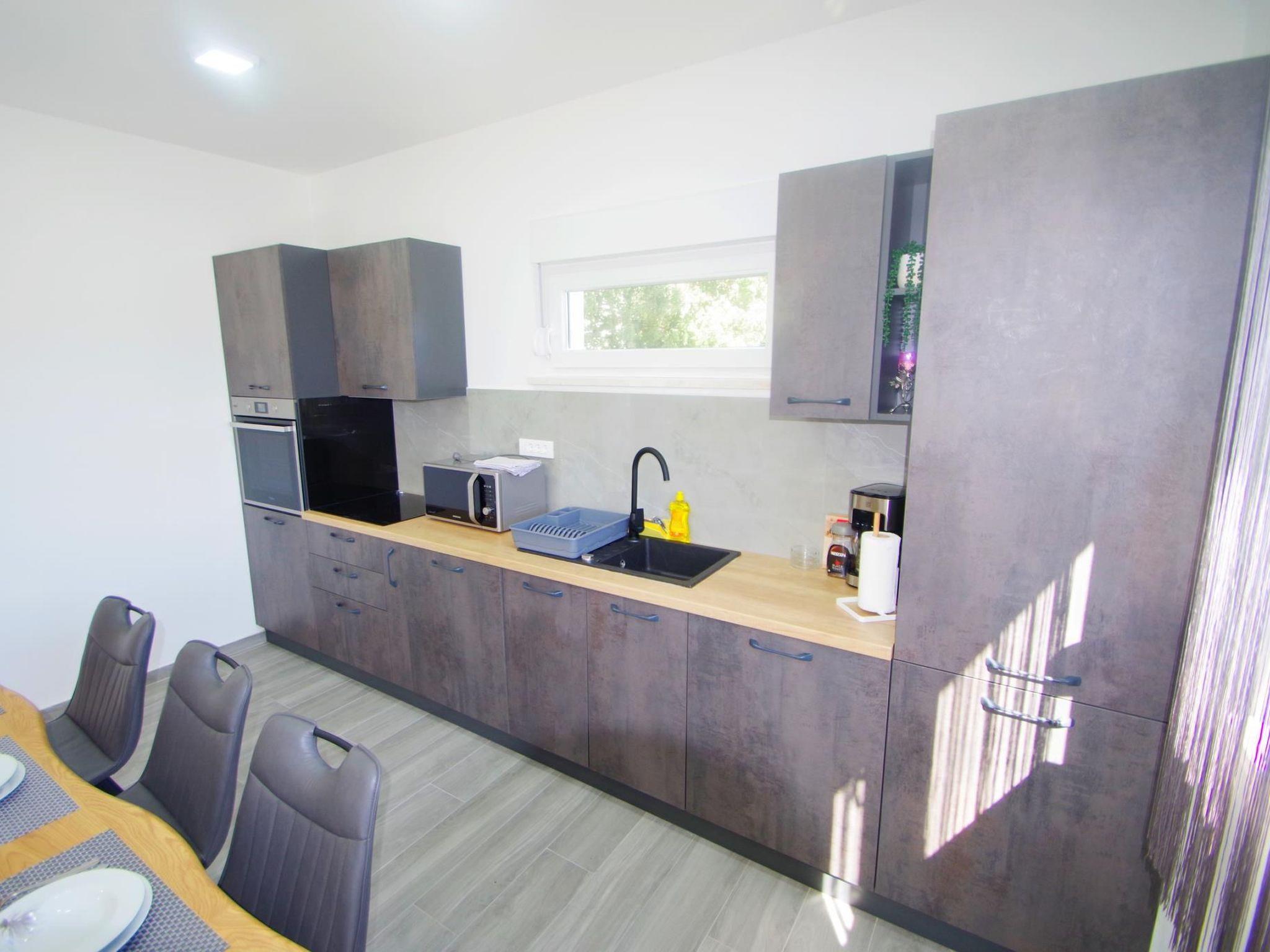 It is brand new, pet friendly, holiday house with 3 bedrooms for 6+1 persons, enclosed garden with private pool and grill. The bedrooms ( all with air condition) promises a restful night's sleep, while the open-plan living area connects to a fully equipped kitchen, allowing you to whip up delightful meals at your convenience.