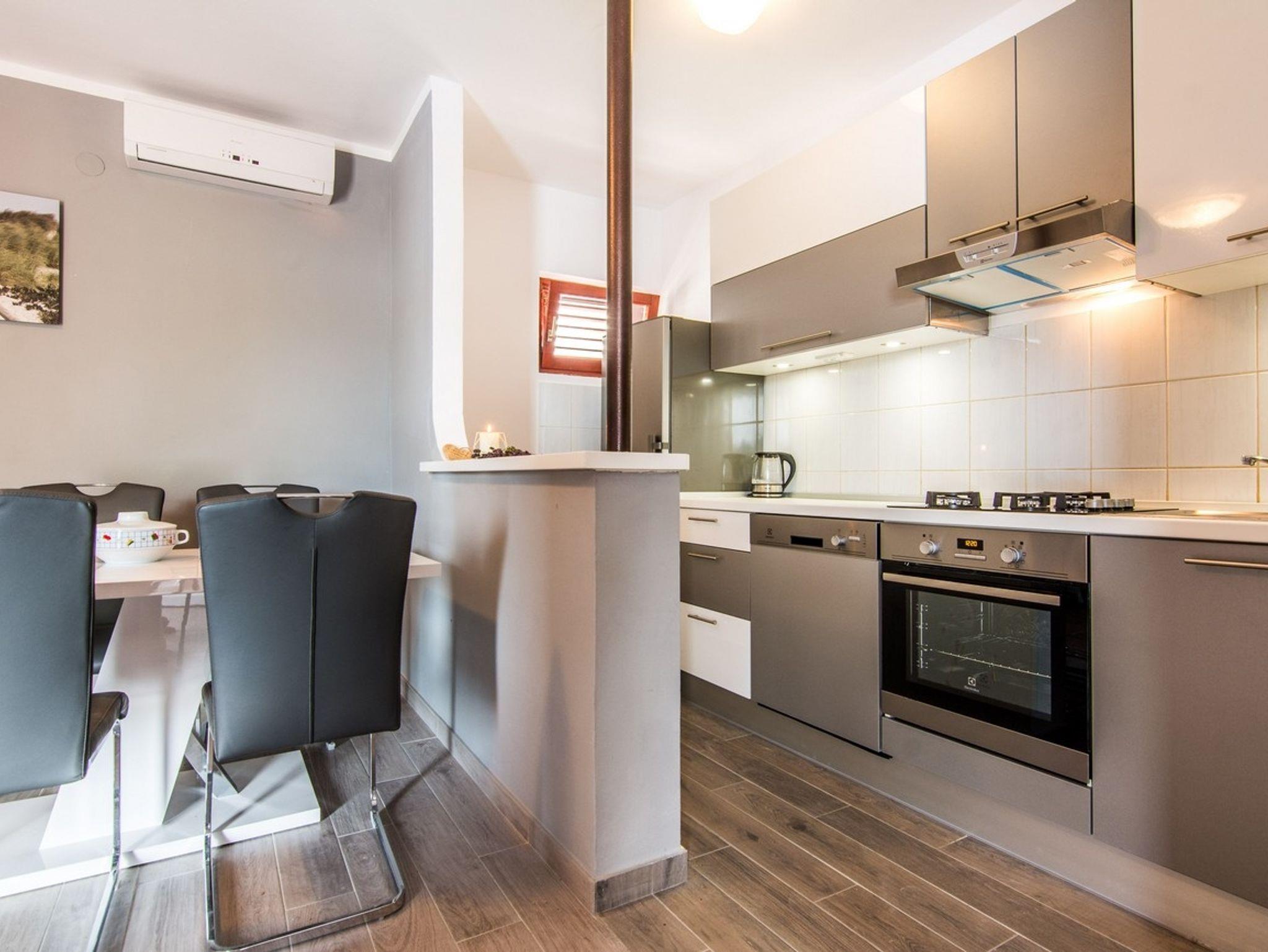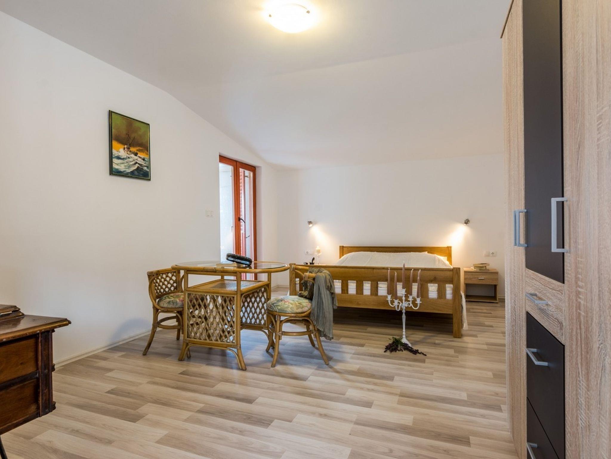 Haus bietet Platz für 8 Gäste. Die Betten sind in Schlafzimmern, die es 4 gibt, innerhalb einer Gesamtfläche von 147m2, angeordnet. Die Gäste haben eine eigene Terrasse zur Verfügung, auf der sie in warmen Sommernächten genießen können. Das Haus bietet Meerblick. Es ist erlaubt, Speisen auf dem Gemeinschafts-Grill vorzubereiten. Während ihres Aufenthalts können Gäste das gemeinsam zur Nutzung stehende Schwimmbad benutzen. In der Unterkunftseinheit besteht die Möglichkeit des Mitbringens von Haustieren gegen Aufpreis. IM PREIS INBEGRIFFEN: Kurtaxe, Endreinigung, Klimatisierung, Zentralheizung, Pool, Parkplatz, Internet, Bügeleisen, Bügelbrett, Föhn. VERBINDLICHE ZUSÄTZLICHE KOSTEN: Aufzahlung für Kurzaufenthalte (prozentualer Zuschlag pro Nächtigungsanzahl: 30% - 1, 20% - 2, 10% - 3). UNVERBINDLICHE ZUSÄTZLICHE KOSTEN: Haustiere (40,00 € pro Nacht), Zusatzbett (50,00 € pro Nacht). Die Verfügbarkeit zusätzlicher Dienstleistungen in Ihrem reservierten Termin und die Preise derselben (falls nicht aufgeführt) müssen im Voraus überprüft werden. Zusätzliche Dienstleistungen die in der Zahlungsaufforderung nicht aufgeführt sind werden direkt beim Vermieter bezahlt, angenommen der Gast nutzt auch diese. Ermäßigung auf den Grundpreis: Gratistag 21=19 (bei einem Aufenthalt von 21 Tagen oder mehr erhalten Sie 2 Gratistage für den Aufenthalt bis 31.12.26).