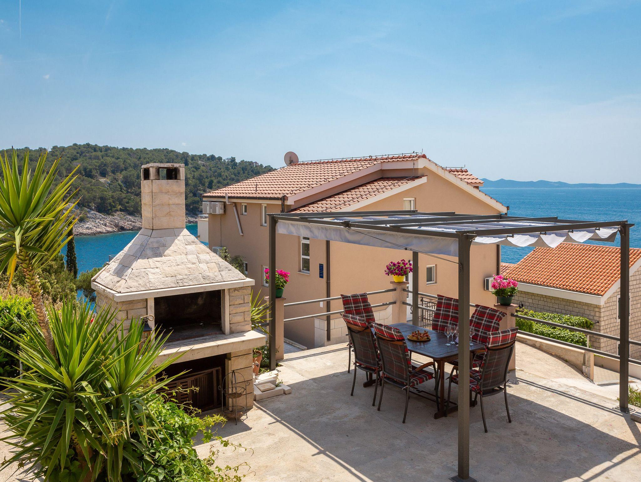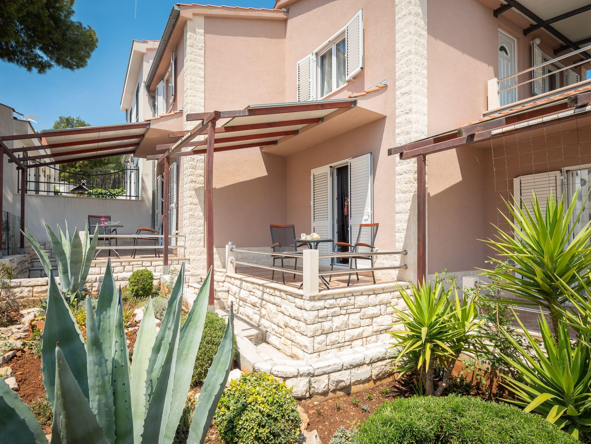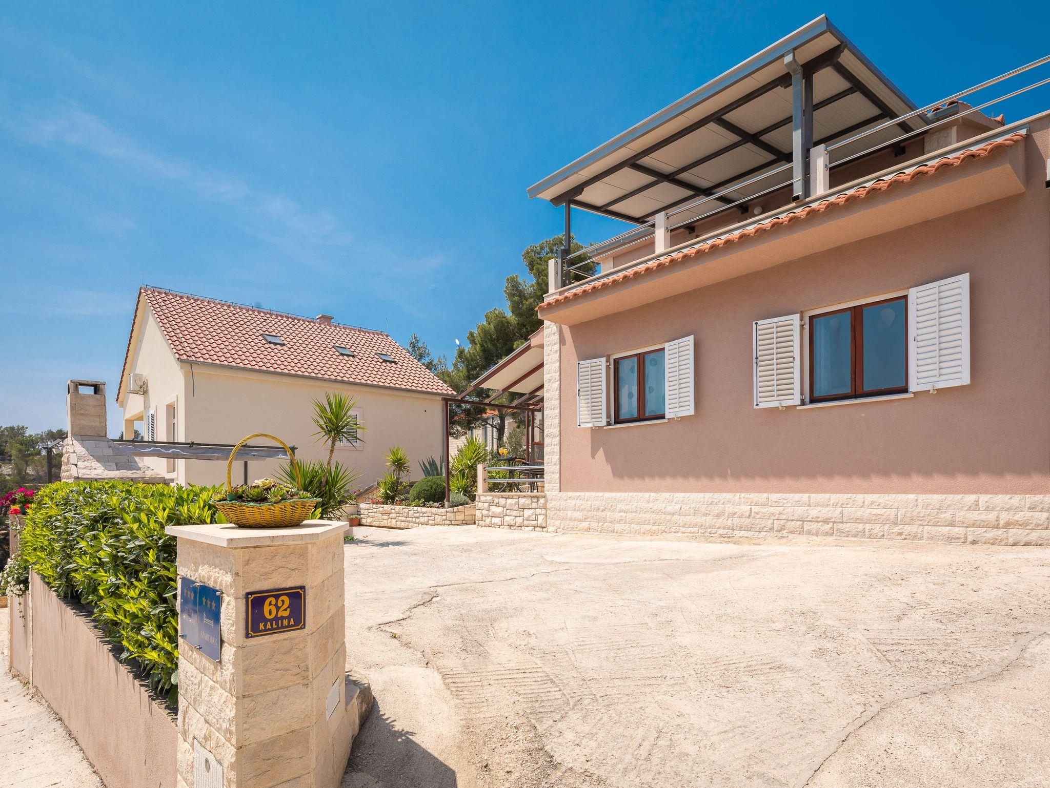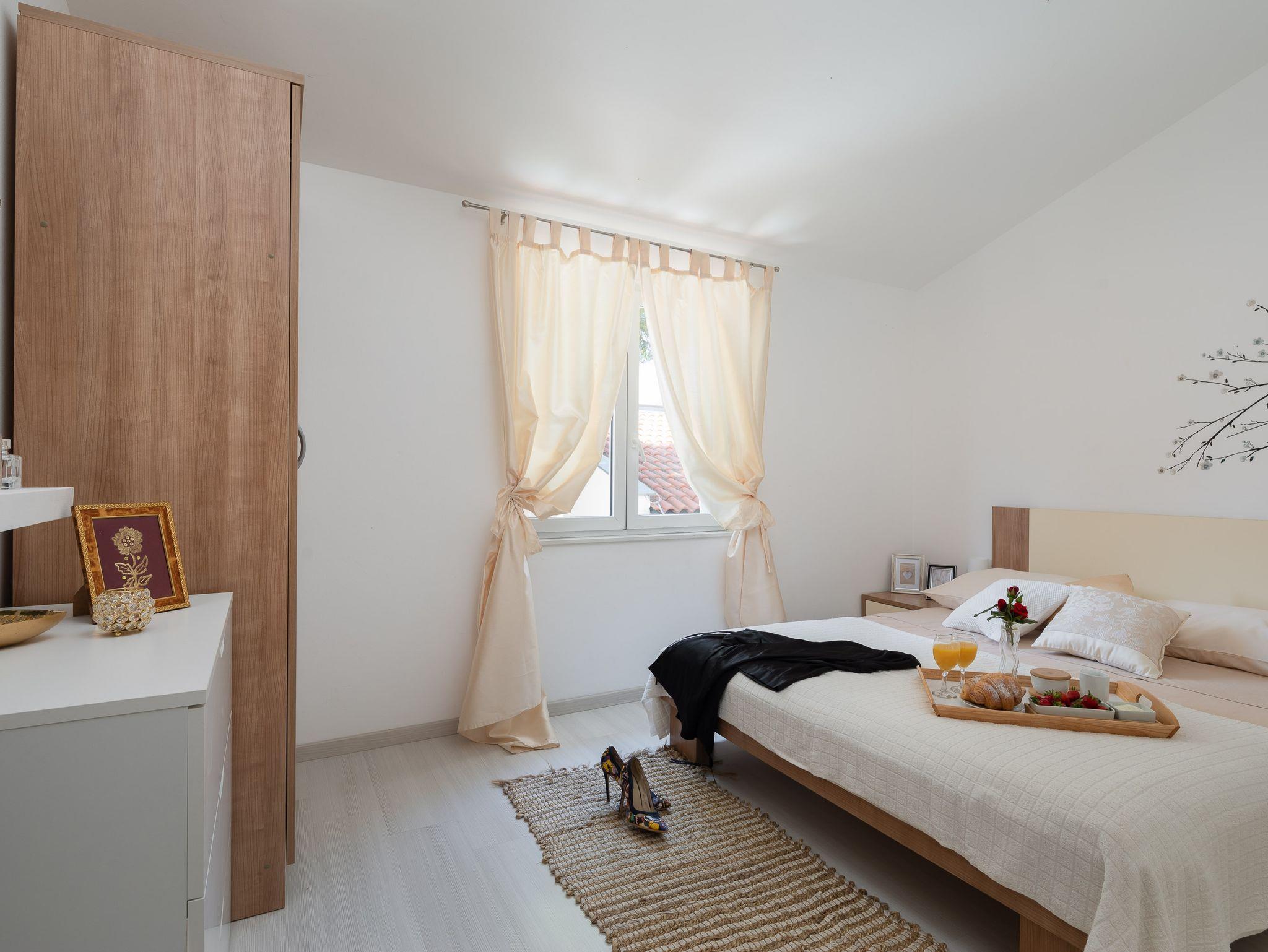 Ferienwohnung bietet Platz für 6 Gäste. Die Betten sind in Schlafzimmern, die es 2 gibt, und in Wohnzimmer, innerhalb einer Gesamtfläche von 51m2, angeordnet. Die Gäste haben eine eigene Terrasse zur Verfügung, auf der sie in warmen Sommernächten genießen können. Das Apartment bietet Meerblick. Es ist erlaubt, Speisen auf dem Gemeinschafts-Grill vorzubereiten. In der Unterkunftseinheit besteht die Möglichkeit des Mitbringens von Haustieren, und die Dienstleistung ist im Preis der Unterkunft enthalten. IM PREIS INBEGRIFFEN: Kurtaxe, Endreinigung, Klimatisierung, Parkplatz, Internet, Wäschewaschen, Bootsanlegeplatz, Haustiere, Kinderbett, Liegestühle. Die Verfügbarkeit zusätzlicher Dienstleistungen in Ihrem reservierten Termin und die Preise derselben (falls nicht aufgeführt) müssen im Voraus überprüft werden. Zusätzliche Dienstleistungen die in der Zahlungsaufforderung nicht aufgeführt sind werden direkt beim Vermieter bezahlt, angenommen der Gast nutzt auch diese. Ermäßigung auf den Grundpreis: Gratistag 21=19 (bei einem Aufenthalt von 21 Tagen oder mehr erhalten Sie 2 Gratistage für den Aufenthalt bis 31.12.26).