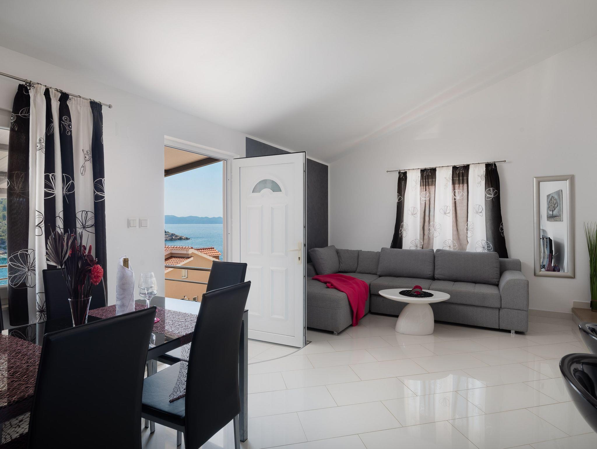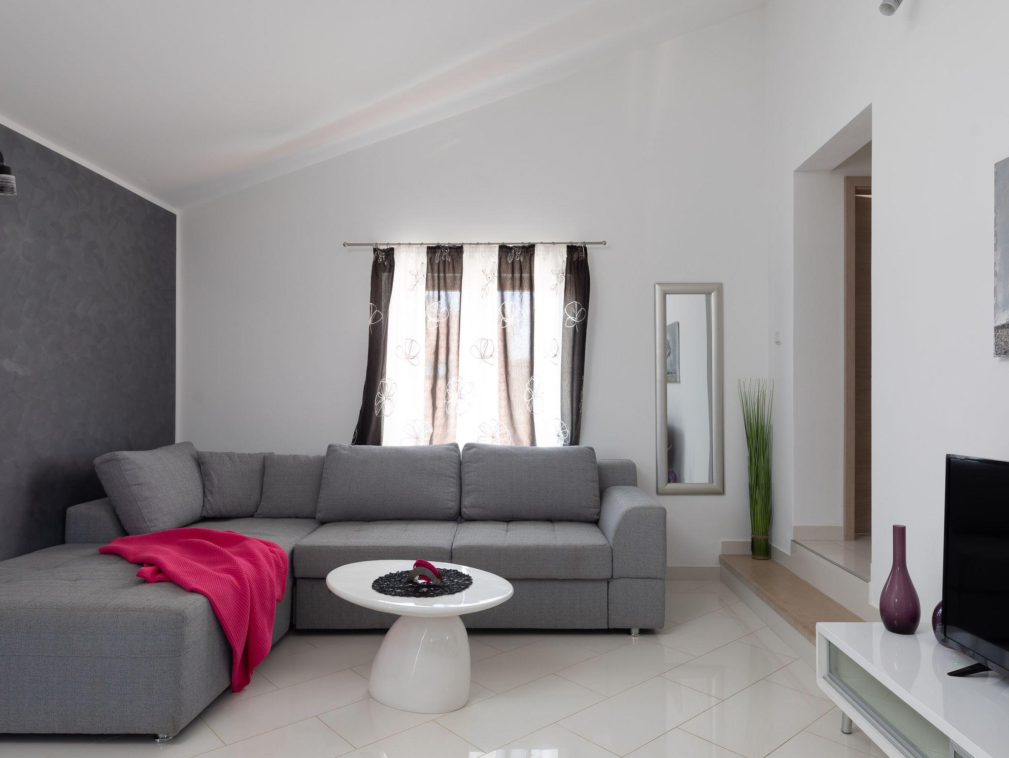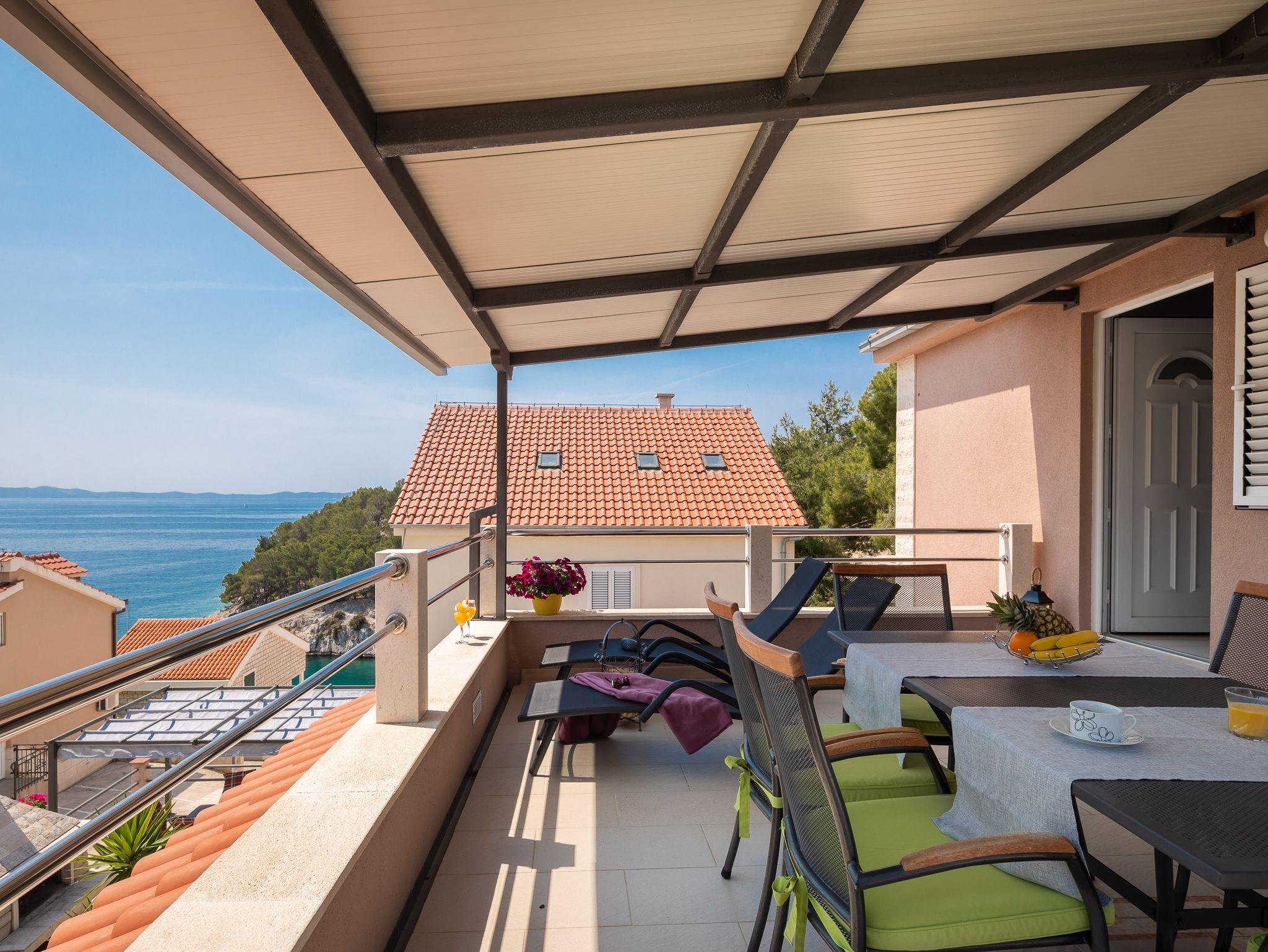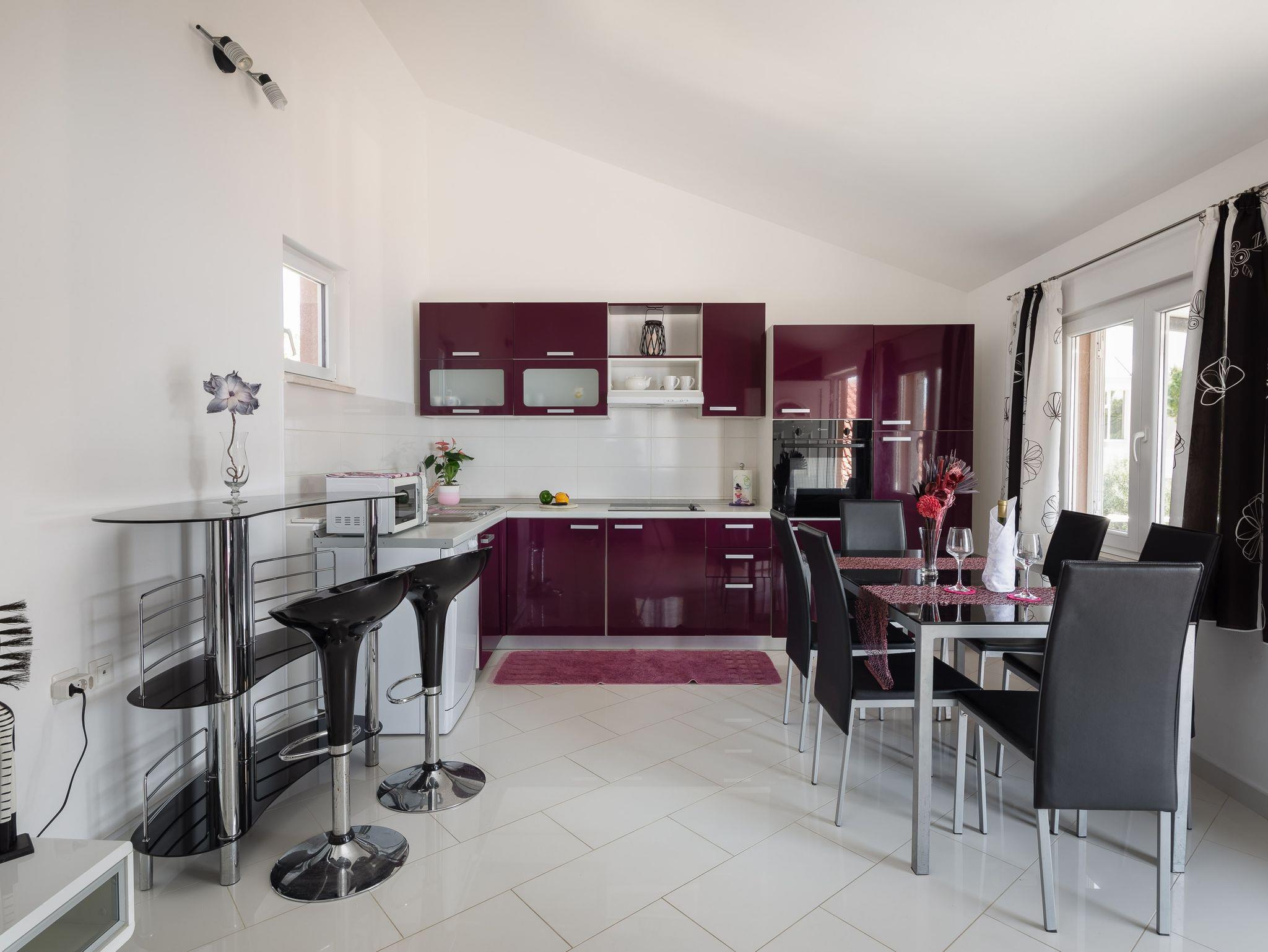 Ferienwohnung bietet Platz für 6 Gäste. Die Betten sind in Schlafzimmern, die es 2 gibt, und in Wohnzimmer, innerhalb einer Gesamtfläche von 51m2, angeordnet. Die Gäste haben eine eigene Terrasse zur Verfügung, auf der sie in warmen Sommernächten genießen können. Das Apartment bietet Meerblick. Es ist erlaubt, Speisen auf dem Gemeinschafts-Grill vorzubereiten. In der Unterkunftseinheit besteht die Möglichkeit des Mitbringens von Haustieren, und die Dienstleistung ist im Preis der Unterkunft enthalten. IM PREIS INBEGRIFFEN: Kurtaxe, Endreinigung, Klimatisierung, Parkplatz, Internet, Wäschewaschen, Bootsanlegeplatz, Haustiere, Kinderbett, Liegestühle. Die Verfügbarkeit zusätzlicher Dienstleistungen in Ihrem reservierten Termin und die Preise derselben (falls nicht aufgeführt) müssen im Voraus überprüft werden. Zusätzliche Dienstleistungen die in der Zahlungsaufforderung nicht aufgeführt sind werden direkt beim Vermieter bezahlt, angenommen der Gast nutzt auch diese. Ermäßigung auf den Grundpreis: Gratistag 21=19 (bei einem Aufenthalt von 21 Tagen oder mehr erhalten Sie 2 Gratistage für den Aufenthalt bis 31.12.26).