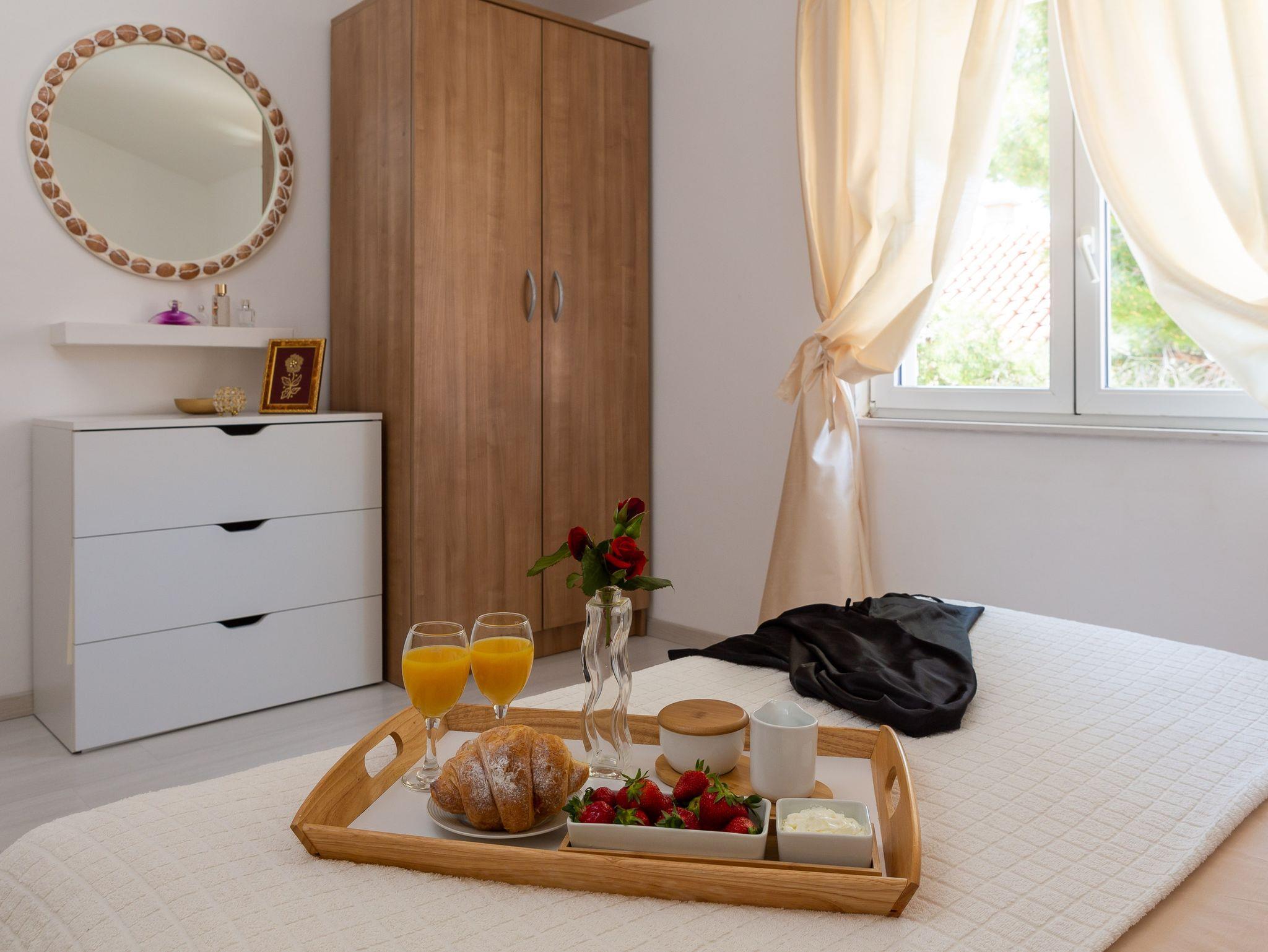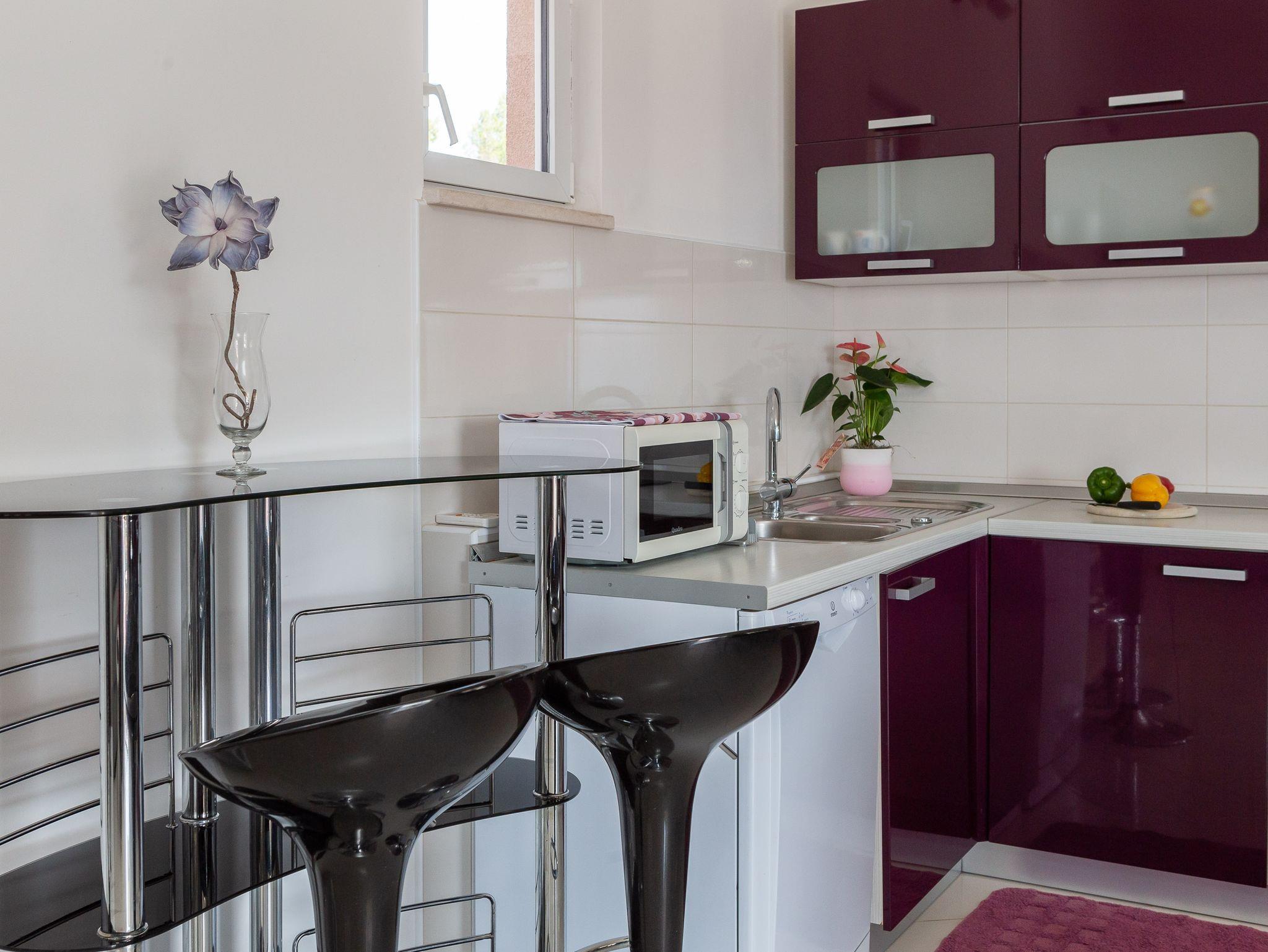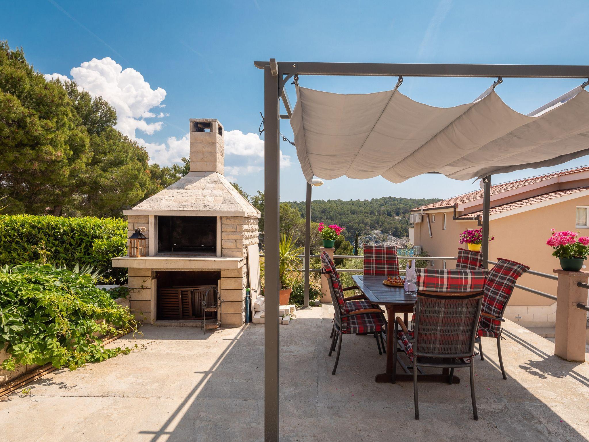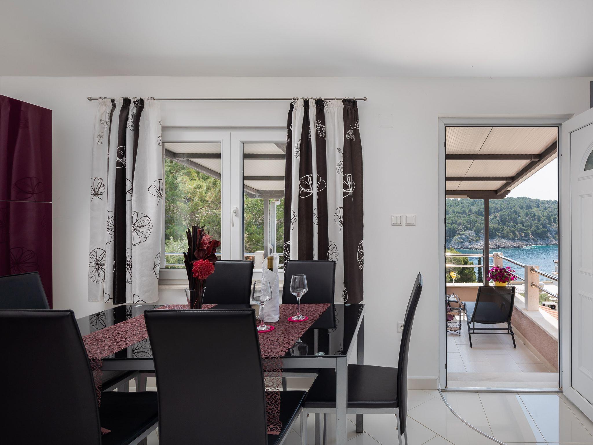 Ferienwohnung bietet Platz für 6 Gäste. Die Betten sind in Schlafzimmern, die es 2 gibt, und in Wohnzimmer, innerhalb einer Gesamtfläche von 51m2, angeordnet. Die Gäste haben eine eigene Terrasse zur Verfügung, auf der sie in warmen Sommernächten genießen können. Das Apartment bietet Meerblick. Es ist erlaubt, Speisen auf dem Gemeinschafts-Grill vorzubereiten. In der Unterkunftseinheit besteht die Möglichkeit des Mitbringens von Haustieren, und die Dienstleistung ist im Preis der Unterkunft enthalten. IM PREIS INBEGRIFFEN: Kurtaxe, Endreinigung, Klimatisierung, Parkplatz, Internet, Wäschewaschen, Bootsanlegeplatz, Haustiere, Kinderbett, Liegestühle. Die Verfügbarkeit zusätzlicher Dienstleistungen in Ihrem reservierten Termin und die Preise derselben (falls nicht aufgeführt) müssen im Voraus überprüft werden. Zusätzliche Dienstleistungen die in der Zahlungsaufforderung nicht aufgeführt sind werden direkt beim Vermieter bezahlt, angenommen der Gast nutzt auch diese. Ermäßigung auf den Grundpreis: Gratistag 21=19 (bei einem Aufenthalt von 21 Tagen oder mehr erhalten Sie 2 Gratistage für den Aufenthalt bis 31.12.26).