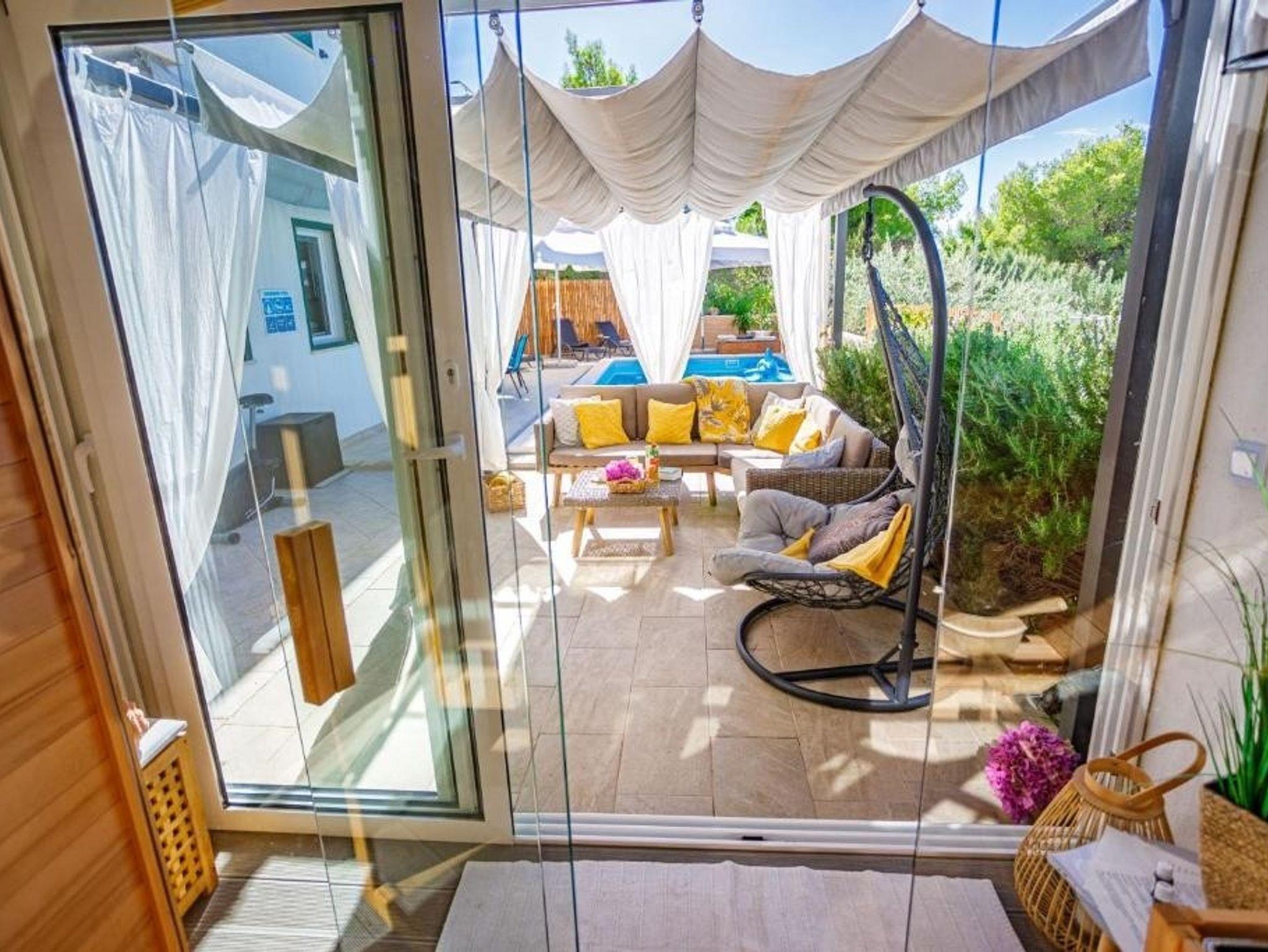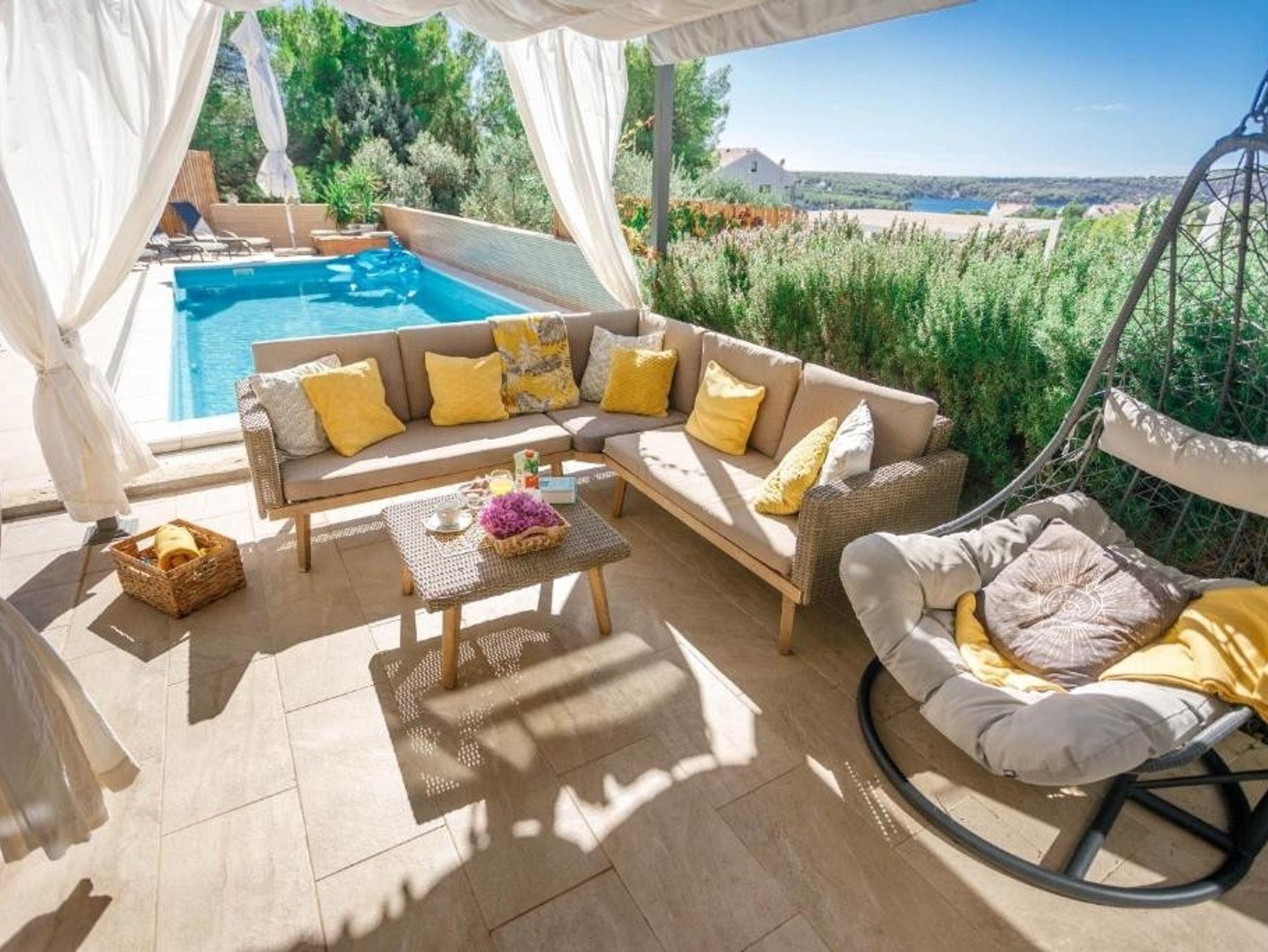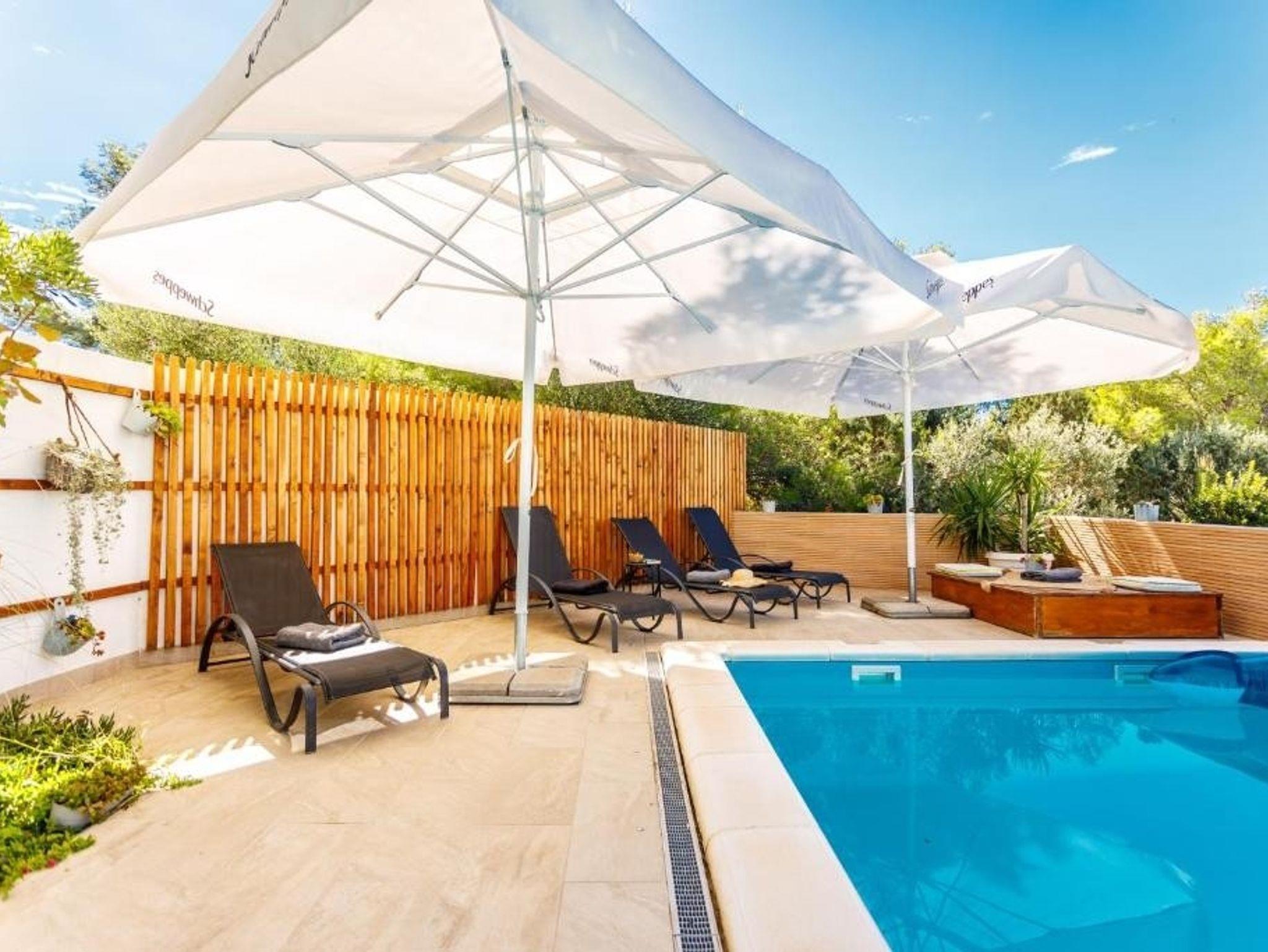 Haus bietet Platz für 10 Gäste. Die Betten sind in Schlafzimmern, die es 4 gibt, und in Wohnzimmer, innerhalb einer Gesamtfläche von 140m2, angeordnet. Die Gäste haben eine eigene Terrasse zur Verfügung, auf der sie in warmen Sommernächten genießen können. Das Haus bietet Meerblick. Für vollen Genuss und Entspannung gibt es einen privaten Grill für Gäste dieser Unterkunft. Während ihres Aufenthalts können sich Gäste im privaten Schwimmbad entspannen. In der Unterkunftseinheit besteht die Möglichkeit des Mitbringens von Haustieren, und die Dienstleistung ist im Preis der Unterkunft enthalten. IM PREIS INBEGRIFFEN: Kurtaxe, Endreinigung, Klimatisierung, Pool, Internet, Haustiere, Kinderbett, Bügeleisen, Bügelbrett, Föhn, Liegestühle. Die Verfügbarkeit zusätzlicher Dienstleistungen in Ihrem reservierten Termin und die Preise derselben (falls nicht aufgeführt) müssen im Voraus überprüft werden. Zusätzliche Dienstleistungen die in der Zahlungsaufforderung nicht aufgeführt sind werden direkt beim Vermieter bezahlt, angenommen der Gast nutzt auch diese. Ermäßigung auf den Grundpreis: Gratistag 14=13 (bei einem Aufenthalt von 14 Tagen oder mehr erhalten Sie einen Gratistag für den Aufenthalt bis 31.12.26).