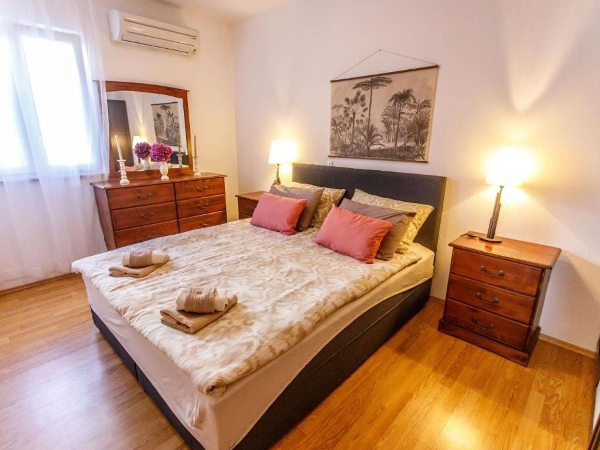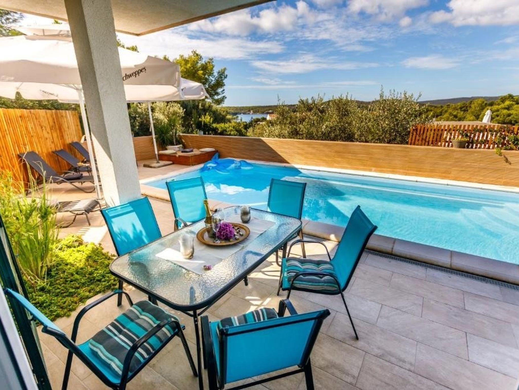 Haus bietet Platz für 10 Gäste. Die Betten sind in Schlafzimmern, die es 4 gibt, und in Wohnzimmer, innerhalb einer Gesamtfläche von 140m2, angeordnet. Die Gäste haben eine eigene Terrasse zur Verfügung, auf der sie in warmen Sommernächten genießen können. Das Haus bietet Meerblick. Für vollen Genuss und Entspannung gibt es einen privaten Grill für Gäste dieser Unterkunft. Während ihres Aufenthalts können sich Gäste im privaten Schwimmbad entspannen. In der Unterkunftseinheit besteht die Möglichkeit des Mitbringens von Haustieren, und die Dienstleistung ist im Preis der Unterkunft enthalten. IM PREIS INBEGRIFFEN: Kurtaxe, Endreinigung, Klimatisierung, Pool, Parkplatz, Internet, Bootsanlegeplatz, Haustiere, Kinderbett, Bügeleisen, Bügelbrett, Föhn, Liegestühle. Die Verfügbarkeit zusätzlicher Dienstleistungen in Ihrem reservierten Termin und die Preise derselben (falls nicht aufgeführt) müssen im Voraus überprüft werden. Zusätzliche Dienstleistungen die in der Zahlungsaufforderung nicht aufgeführt sind werden direkt beim Vermieter bezahlt, angenommen der Gast nutzt auch diese. Ermäßigung auf den Grundpreis: Gratistag 14=13 (bei einem Aufenthalt von 14 Tagen oder mehr erhalten Sie einen Gratistag für den Aufenthalt bis 31.12.26).