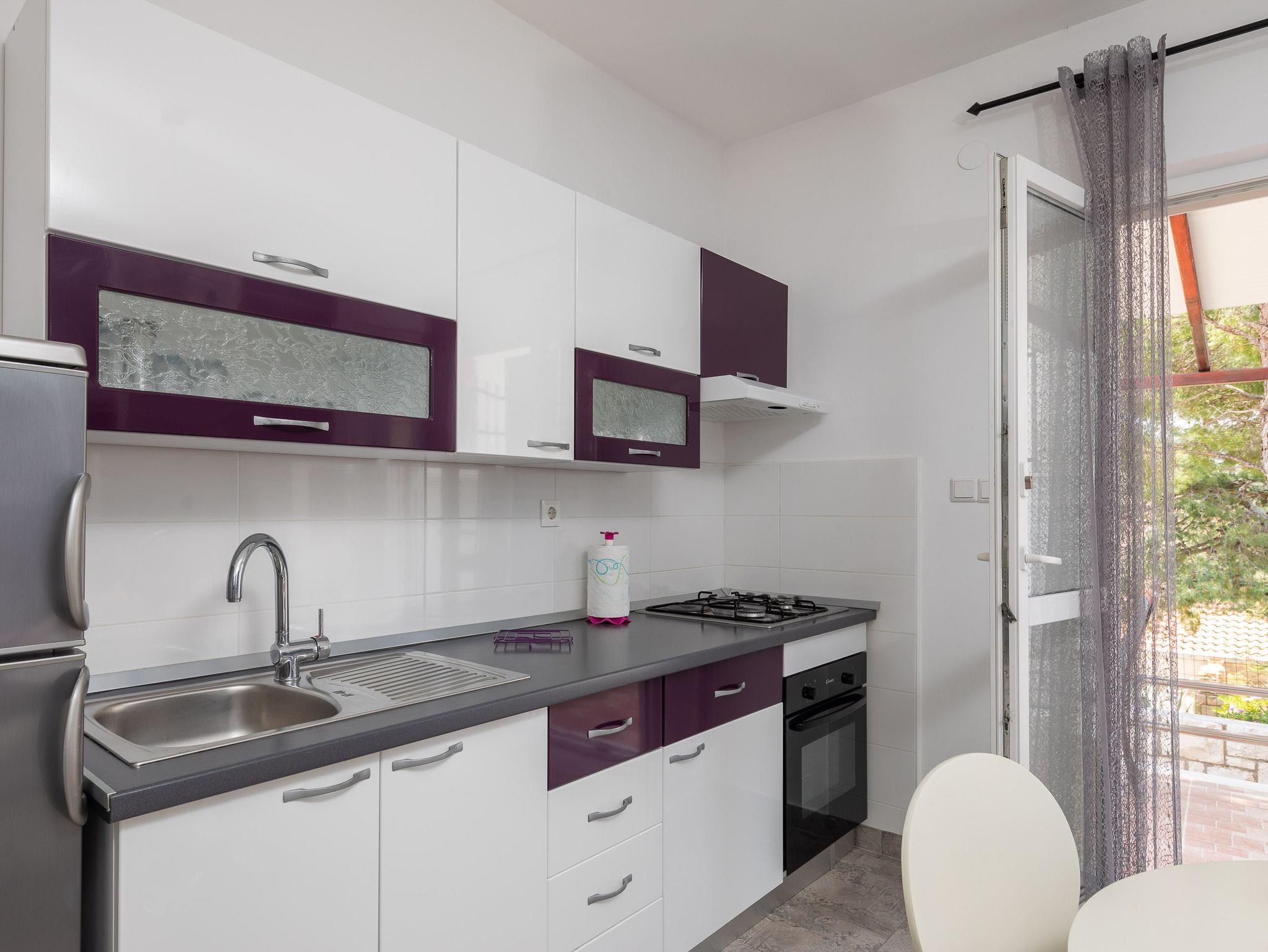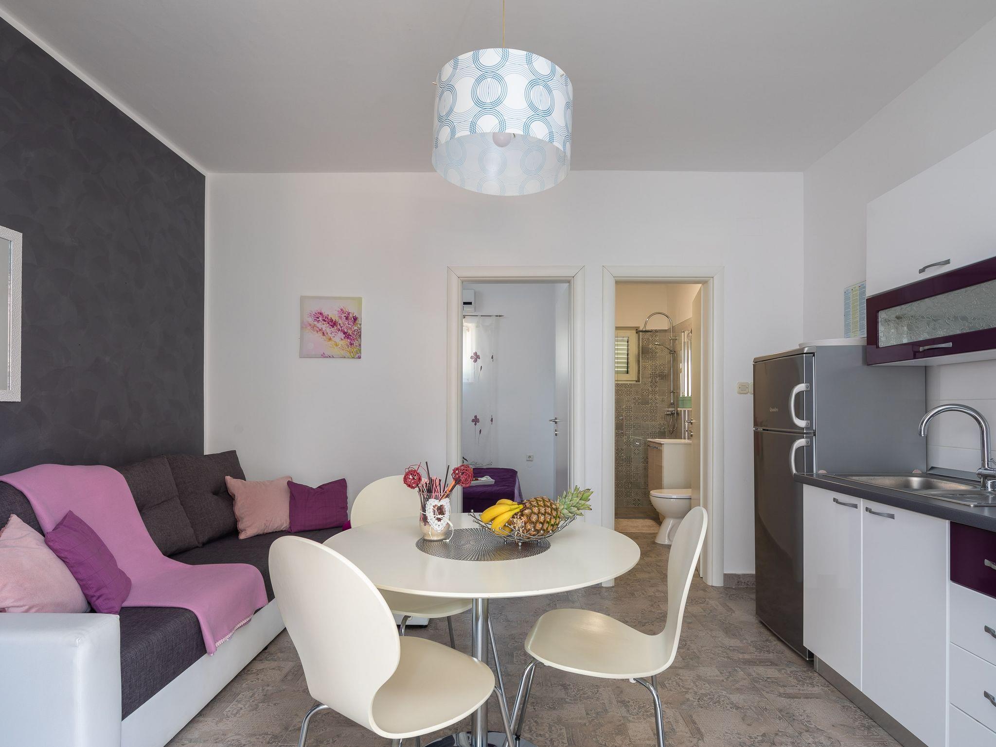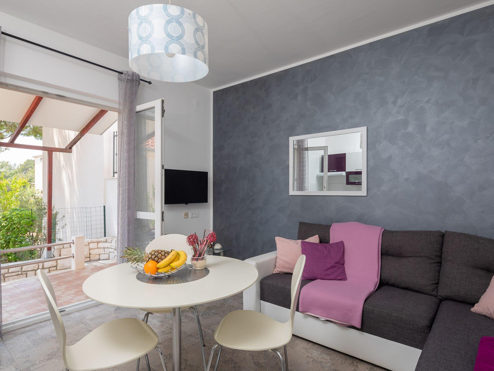 Ferienwohnung bietet Platz für 3 Gäste. Die Betten sind in Schlafzimmern, die es 1 gibt, und in Wohnzimmer, innerhalb einer Gesamtfläche von 26m2, angeordnet. Die Gäste haben eine eigene Terrasse zur Verfügung, auf der sie in warmen Sommernächten genießen können. Das Apartment bietet Meerblick. Es ist erlaubt, Speisen auf dem Gemeinschafts-Grill vorzubereiten. In der Unterkunftseinheit besteht die Möglichkeit des Mitbringens von Haustieren, und die Dienstleistung ist im Preis der Unterkunft enthalten. IM PREIS INBEGRIFFEN: Kurtaxe, Endreinigung, Klimatisierung, Parkplatz, Internet, Wäschewaschen, Bootsanlegeplatz, Haustiere, Kinderbett, Liegestühle. Die Verfügbarkeit zusätzlicher Dienstleistungen in Ihrem reservierten Termin und die Preise derselben (falls nicht aufgeführt) müssen im Voraus überprüft werden. Zusätzliche Dienstleistungen die in der Zahlungsaufforderung nicht aufgeführt sind werden direkt beim Vermieter bezahlt, angenommen der Gast nutzt auch diese. Ermäßigung auf den Grundpreis: Gratistag 21=19 (bei einem Aufenthalt von 21 Tagen oder mehr erhalten Sie 2 Gratistage für den Aufenthalt bis 31.12.26).