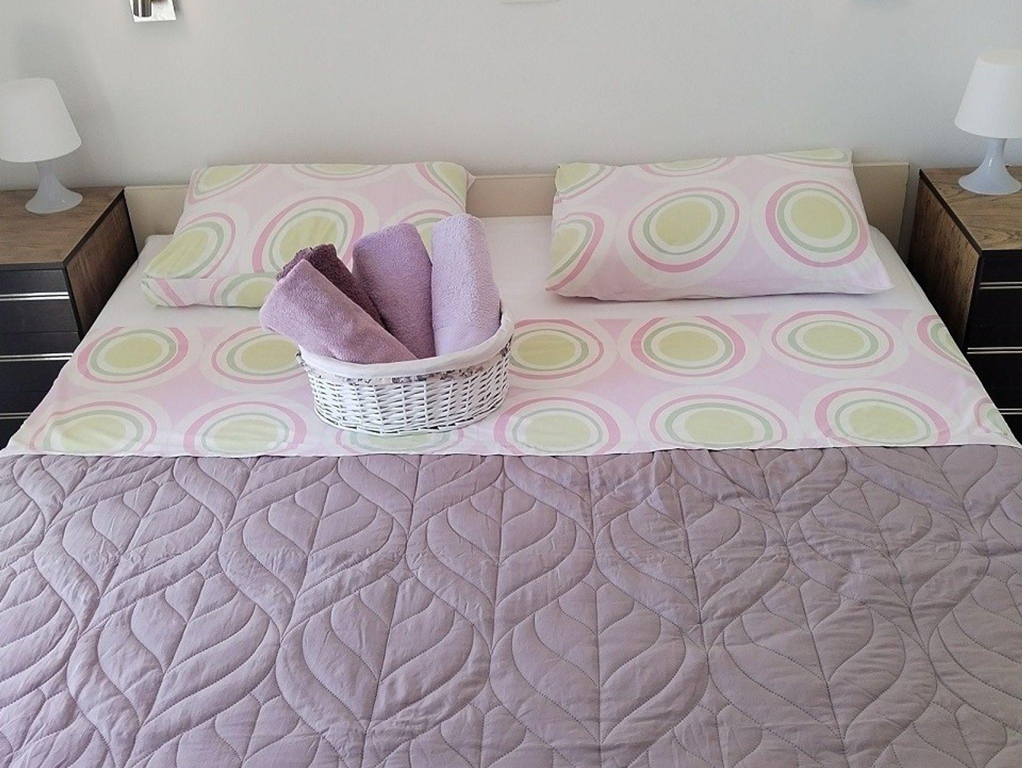Ferienwohnung bietet Platz für 4 Gäste. Die Betten sind in Schlafzimmern, die es 2 gibt, innerhalb einer Gesamtfläche von 53m2, angeordnet. Die Gäste haben eine eigene Terrasse zur Verfügung, auf der sie in warmen Sommernächten genießen können. Das Apartment bietet Meerblick. Es ist erlaubt, Speisen auf dem Gemeinschafts-Grill vorzubereiten. IM PREIS INBEGRIFFEN: Kurtaxe, Endreinigung, Klimatisierung, Parkplatz, Internet, Wäschewaschen, Kinderbett, Bügelbrett, Föhn, tragbarer Grill. Die Verfügbarkeit zusätzlicher Dienstleistungen in Ihrem reservierten Termin und die Preise derselben (falls nicht aufgeführt) müssen im Voraus überprüft werden. Zusätzliche Dienstleistungen die in der Zahlungsaufforderung nicht aufgeführt sind werden direkt beim Vermieter bezahlt, angenommen der Gast nutzt auch diese. Ermäßigung auf den Grundpreis: Gratistag 14=13 (bei einem Aufenthalt von 14 Tagen oder mehr erhalten Sie einen Gratistag für den Aufenthalt bis 31.12.26).