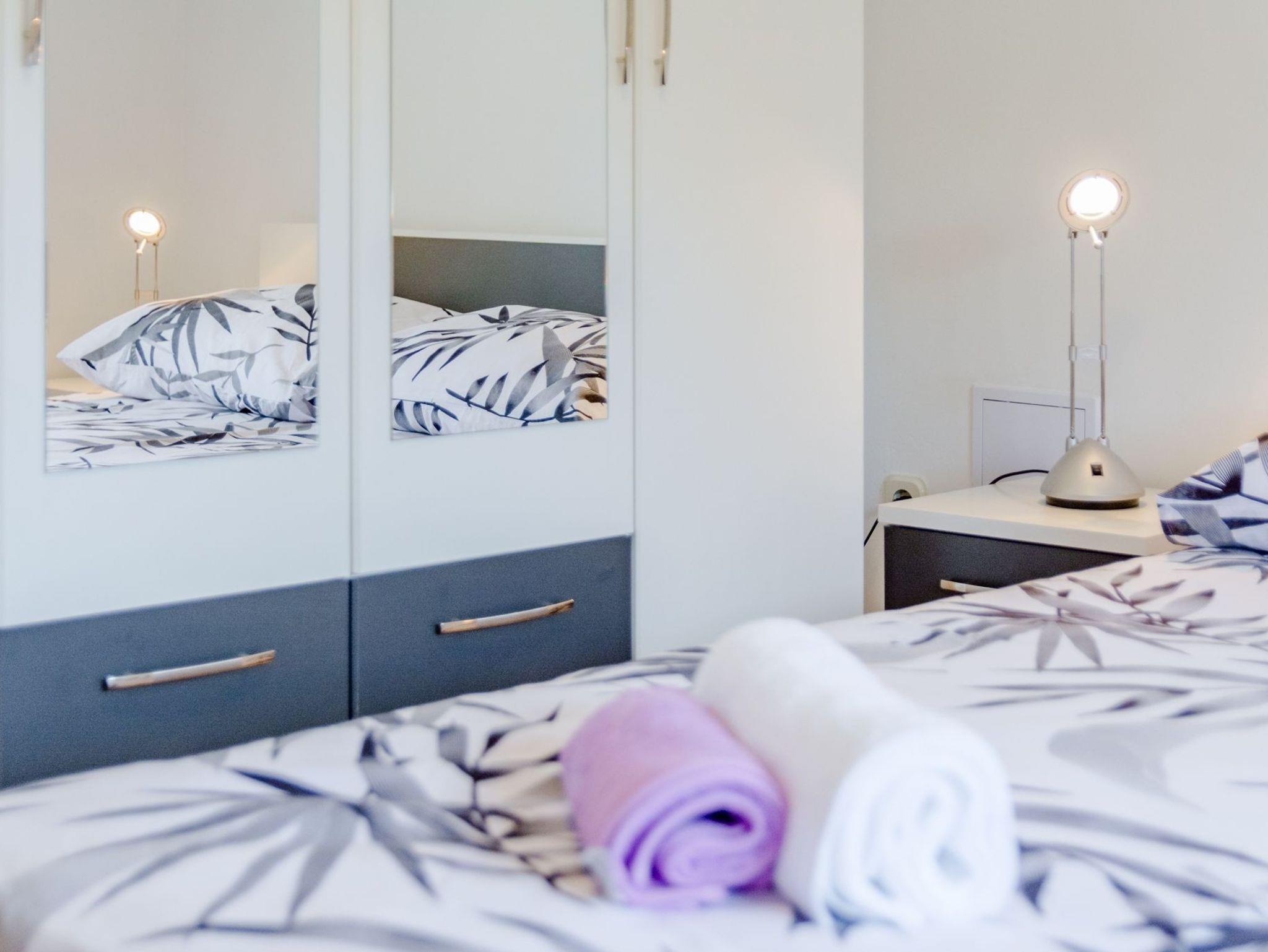 Ferienwohnung bietet Platz für 4 Gäste. Die Betten sind in Schlafzimmern, die es 1 gibt, und in Wohnzimmer, innerhalb einer Gesamtfläche von 44m2, angeordnet. Die Gäste haben eine eigene Terrasse zur Verfügung, auf der sie in warmen Sommernächten genießen können. Es ist erlaubt, Speisen auf dem Gemeinschafts-Grill vorzubereiten. IM PREIS INBEGRIFFEN: Kurtaxe, Endreinigung, Klimatisierung, Parkplatz, Internet, Wäschewaschen, Kinderbett, Bügeleisen, Bügelbrett, Föhn. Die Verfügbarkeit zusätzlicher Dienstleistungen in Ihrem reservierten Termin und die Preise derselben (falls nicht aufgeführt) müssen im Voraus überprüft werden. Zusätzliche Dienstleistungen die in der Zahlungsaufforderung nicht aufgeführt sind werden direkt beim Vermieter bezahlt, angenommen der Gast nutzt auch diese. Ermäßigung auf den Grundpreis: Gratistag 14=13 (bei einem Aufenthalt von 14 Tagen oder mehr erhalten Sie einen Gratistag für den Aufenthalt bis 31.12.26).