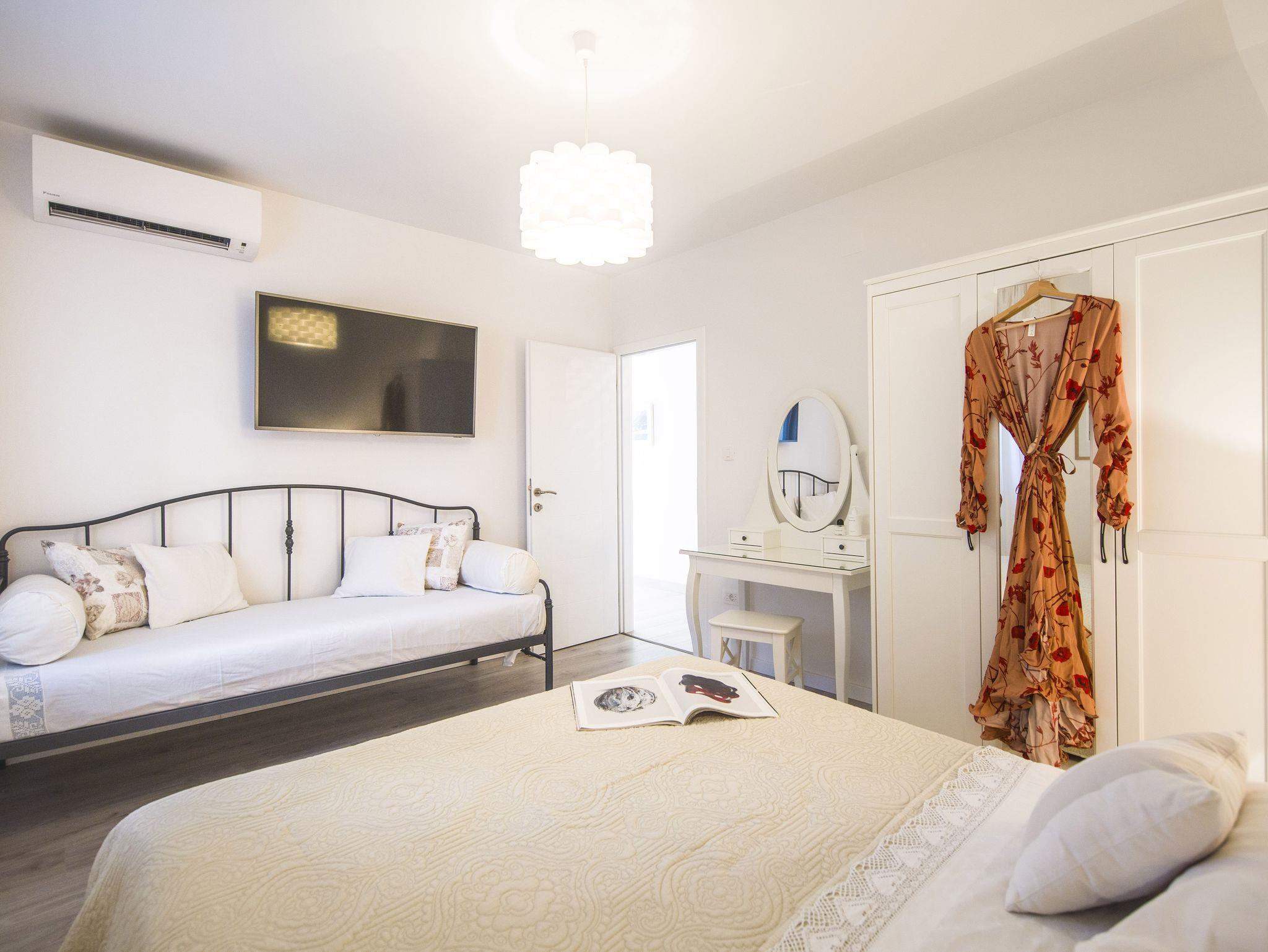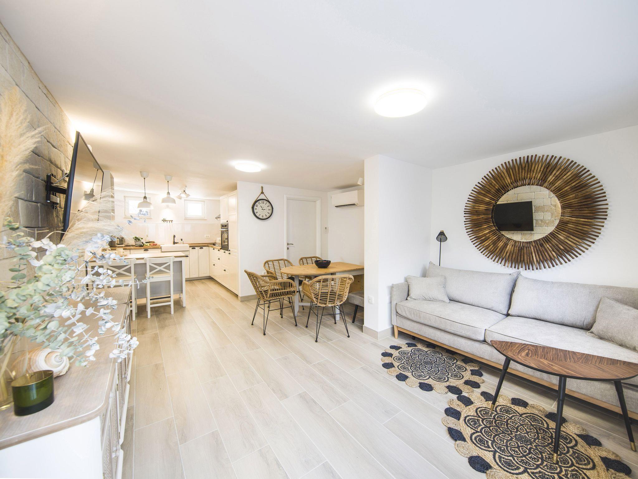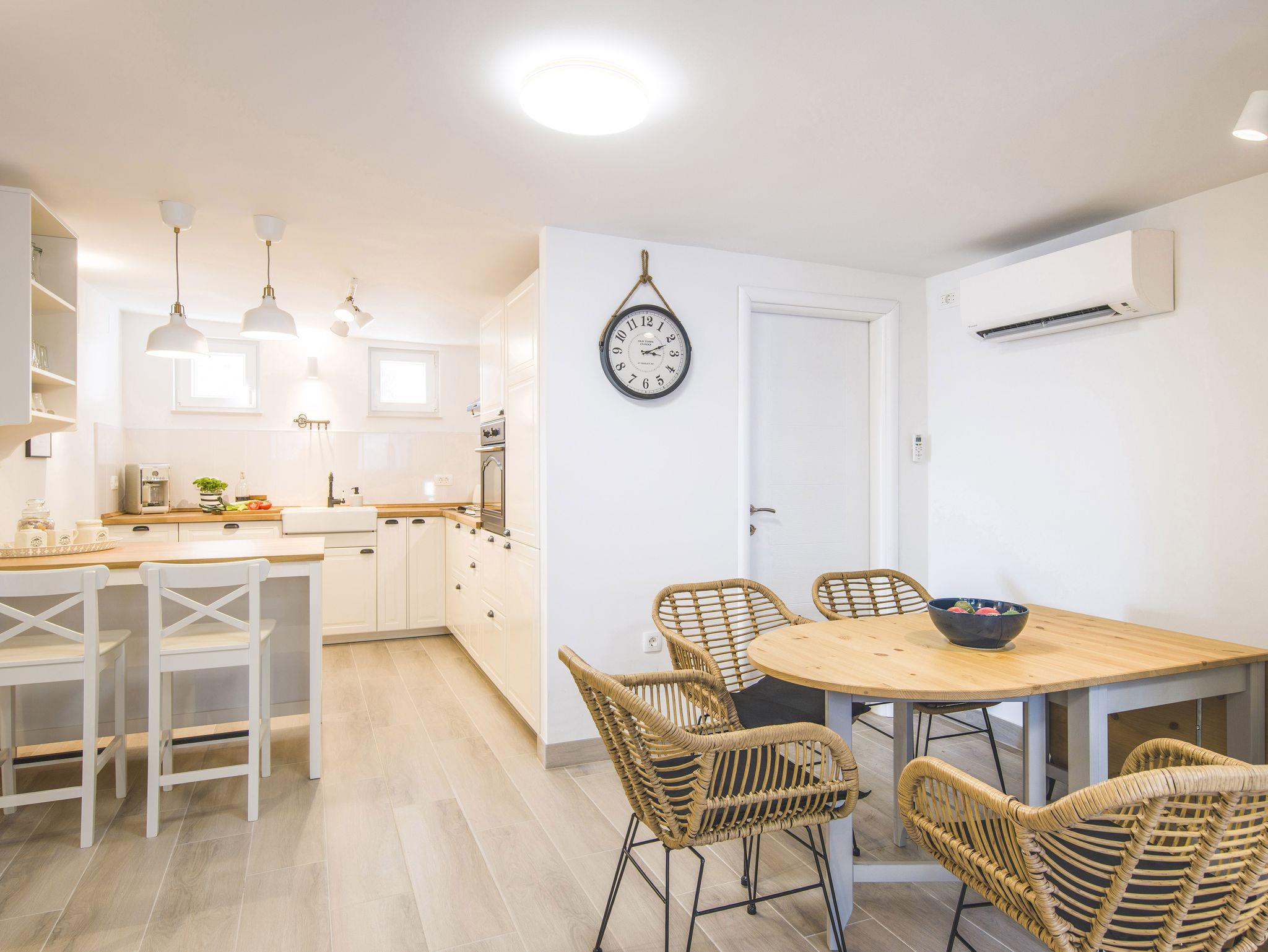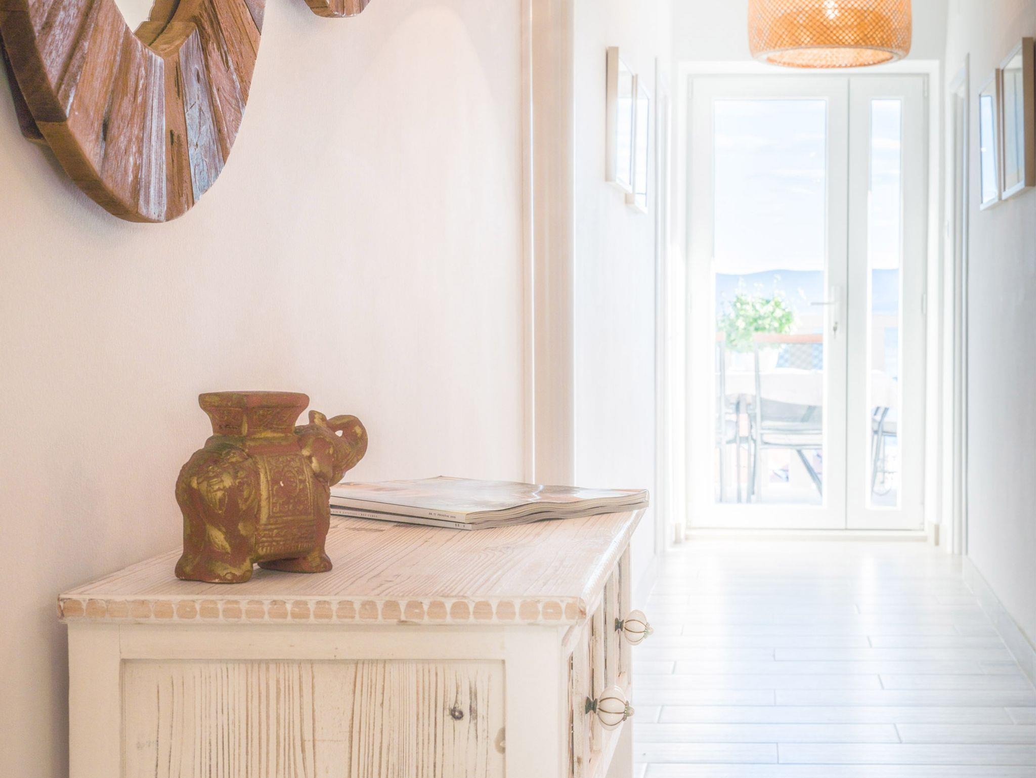 Ferienwohnung bietet Platz für 9 Gäste. Die Betten sind in Schlafzimmern, die es 4 gibt, innerhalb einer Gesamtfläche von 93m2, angeordnet. Die Gäste haben eine eigene Terrasse zur Verfügung, auf der sie in warmen Sommernächten genießen können. Das Apartment bietet Meerblick. Es ist erlaubt, Speisen auf dem Gemeinschafts-Grill vorzubereiten. IM PREIS INBEGRIFFEN: Kurtaxe, Endreinigung, Klimatisierung, Parkplatz, Garage, Internet, Kinderbett, Bügeleisen, Bügelbrett, Föhn. VERBINDLICHE ZUSÄTZLICHE KOSTEN: Aufzahlung für Kurzaufenthalte (prozentualer Zuschlag pro Nächtigungsanzahl: 30% - 1, 20% - 2, 10% - 3). Die Verfügbarkeit zusätzlicher Dienstleistungen in Ihrem reservierten Termin und die Preise derselben (falls nicht aufgeführt) müssen im Voraus überprüft werden. Zusätzliche Dienstleistungen die in der Zahlungsaufforderung nicht aufgeführt sind werden direkt beim Vermieter bezahlt, angenommen der Gast nutzt auch diese.