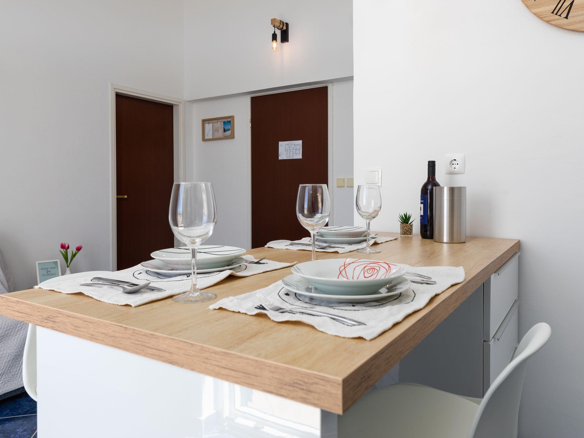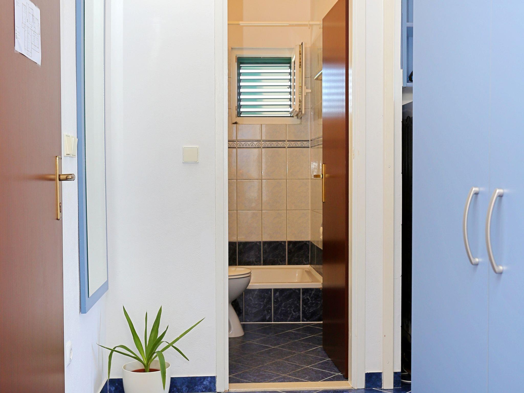 Ferienwohnung bietet Platz für 4 Gäste. Die Betten sind in Schlafzimmern, die es 1 gibt, und in Wohnzimmer, innerhalb einer Gesamtfläche von 26m2, angeordnet. Die Gäste haben einen eigenen Balkon zur Verfügung, auf der sie in warmen Sommernächten genießen können. Das Apartment bietet Meerblick. Es ist erlaubt, Speisen auf dem Gemeinschafts-Grill vorzubereiten. IM PREIS INBEGRIFFEN: Kurtaxe, Endreinigung, Parkplatz, Internet, Kinderbett, Bügeleisen, Bügelbrett, Föhn, Sonnenschirm. VERBINDLICHE ZUSÄTZLICHE KOSTEN: Aufzahlung für Kurzaufenthalte (prozentualer Zuschlag pro Nächtigungsanzahl: 30% - 1, 20% - 2, 10% - 3). UNVERBINDLICHE ZUSÄTZLICHE KOSTEN: Klimatisierung (0,50 € pro Stunde), Wäschewaschen (5,00 € Waschen). Die Verfügbarkeit zusätzlicher Dienstleistungen in Ihrem reservierten Termin und die Preise derselben (falls nicht aufgeführt) müssen im Voraus überprüft werden. Zusätzliche Dienstleistungen die in der Zahlungsaufforderung nicht aufgeführt sind werden direkt beim Vermieter bezahlt, angenommen der Gast nutzt auch diese. Ermäßigung auf den Grundpreis: Gratistag 28=25 (bei einem Aufenthalt von 28 oder mehr Tagen erhalten Sie 3 kostenlose Tage für den Aufenthalt bis 31.12.26).