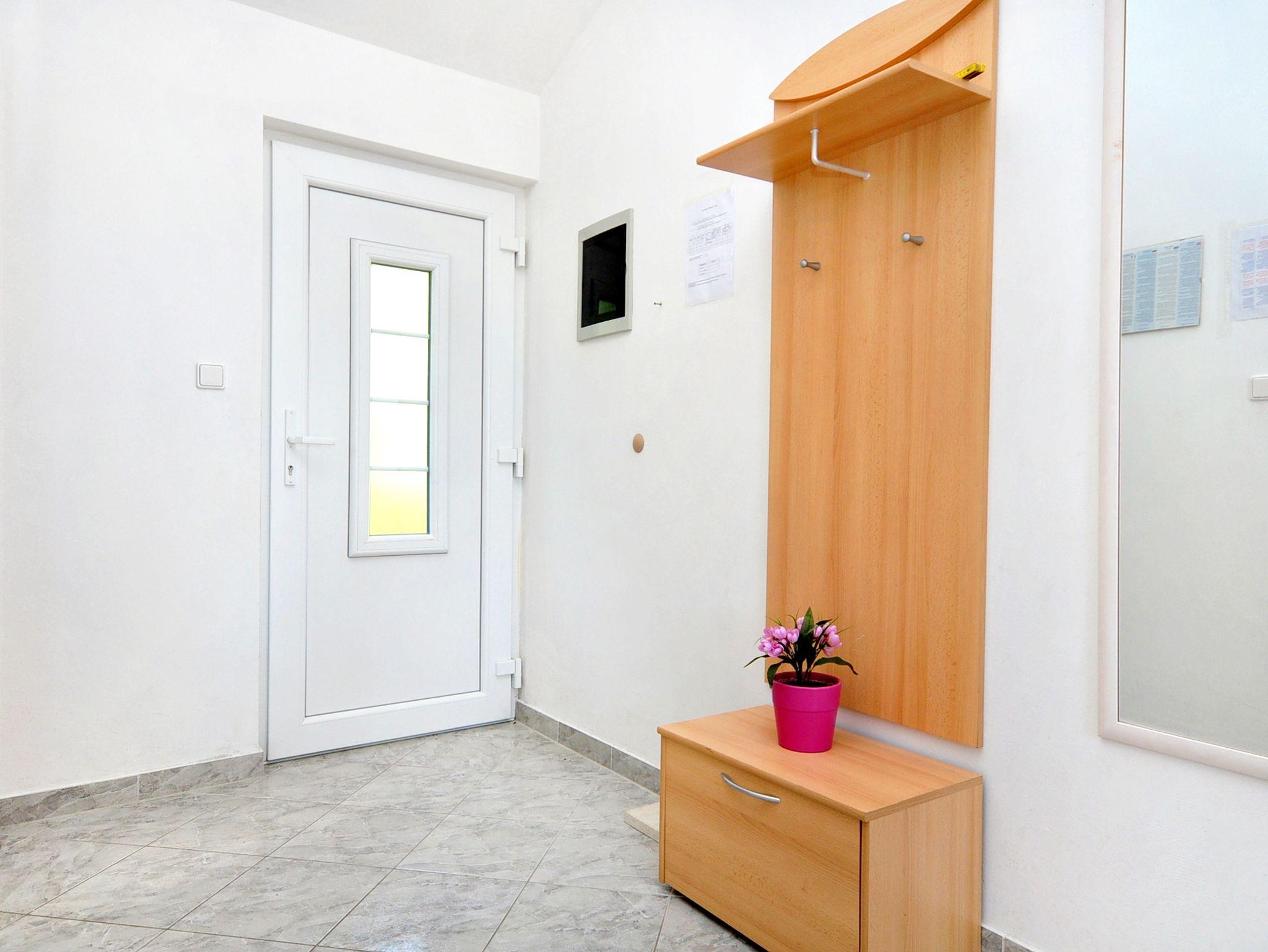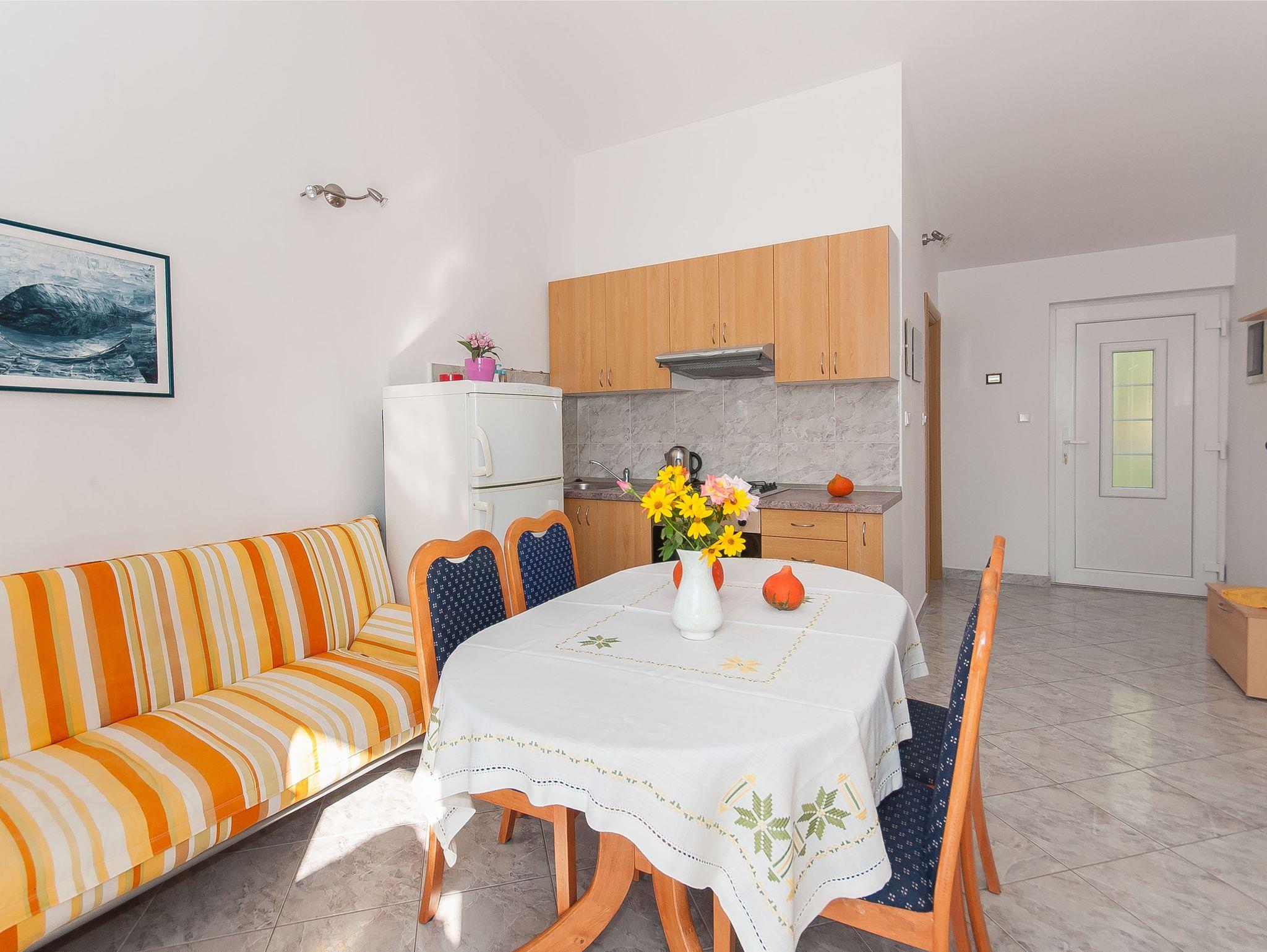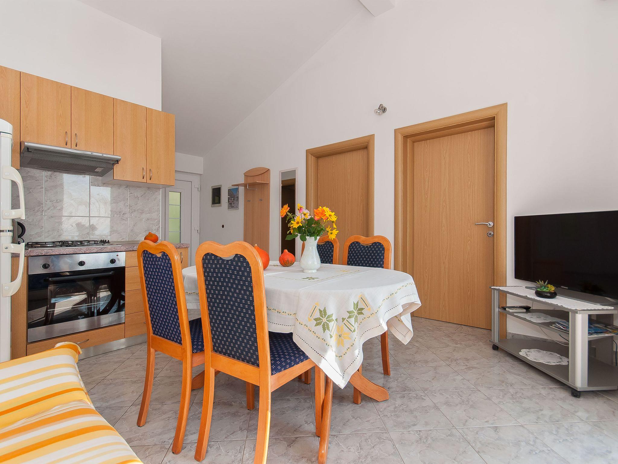 Ferienwohnung bietet Platz für 5 Gäste. Die Betten sind in Schlafzimmern, die es 2 gibt, und in Esszimmer, innerhalb einer Gesamtfläche von 42m2, angeordnet. Die Gäste haben eine eigene Terrasse zur Verfügung, auf der sie in warmen Sommernächten genießen können. Das Apartment bietet Meerblick. Es ist erlaubt, Speisen auf dem Gemeinschafts-Grill vorzubereiten. In der Unterkunftseinheit besteht die Möglichkeit des Mitbringens von Haustieren gegen Aufpreis. IM PREIS INBEGRIFFEN: Kurtaxe, Endreinigung, Klimatisierung, Parkplatz, Internet. VERBINDLICHE ZUSÄTZLICHE KOSTEN: Aufzahlung für Kurzaufenthalte (prozentualer Zuschlag pro Nächtigungsanzahl: 30% - 1, 20% - 2, 10% - 3). UNVERBINDLICHE ZUSÄTZLICHE KOSTEN: Haustiere (5,00 € pro Nacht). Die Verfügbarkeit zusätzlicher Dienstleistungen in Ihrem reservierten Termin und die Preise derselben (falls nicht aufgeführt) müssen im Voraus überprüft werden. Zusätzliche Dienstleistungen die in der Zahlungsaufforderung nicht aufgeführt sind werden direkt beim Vermieter bezahlt, angenommen der Gast nutzt auch diese.