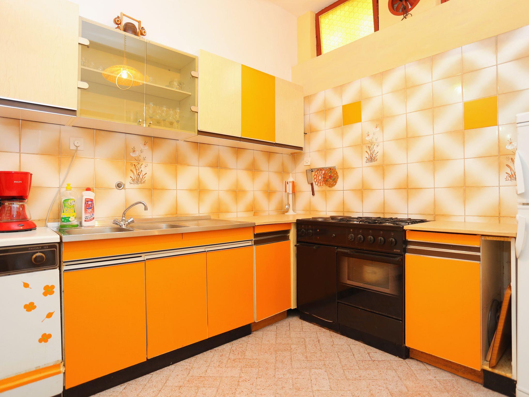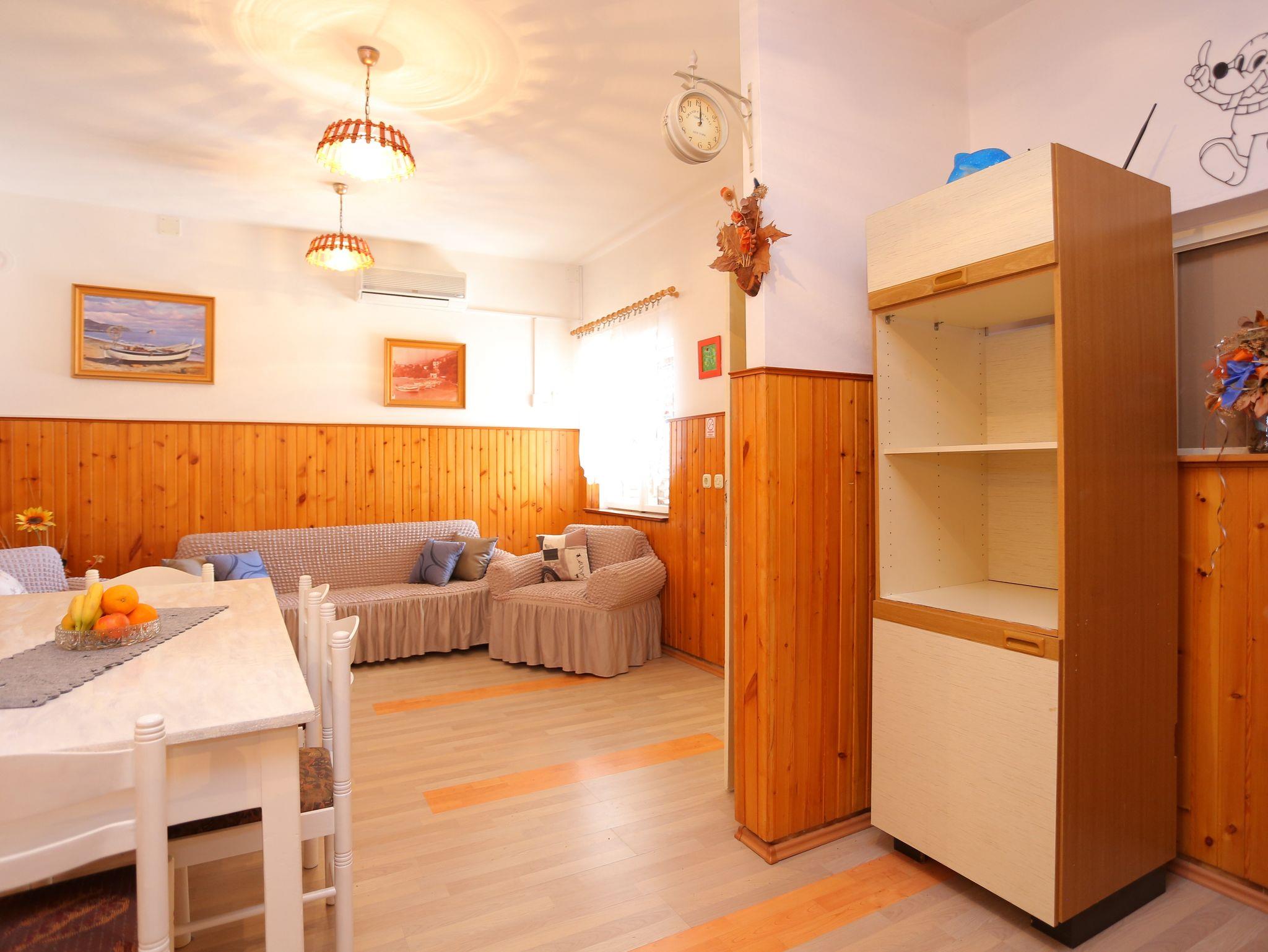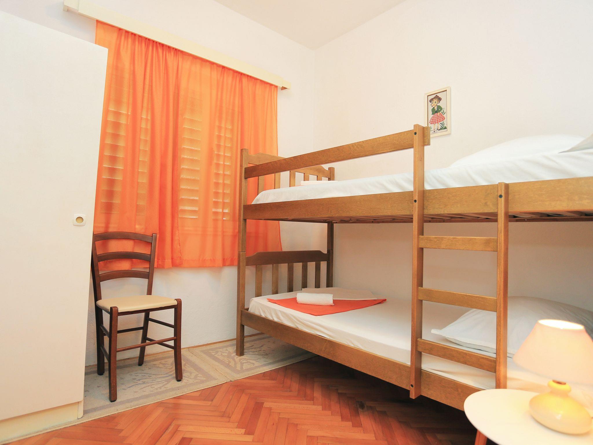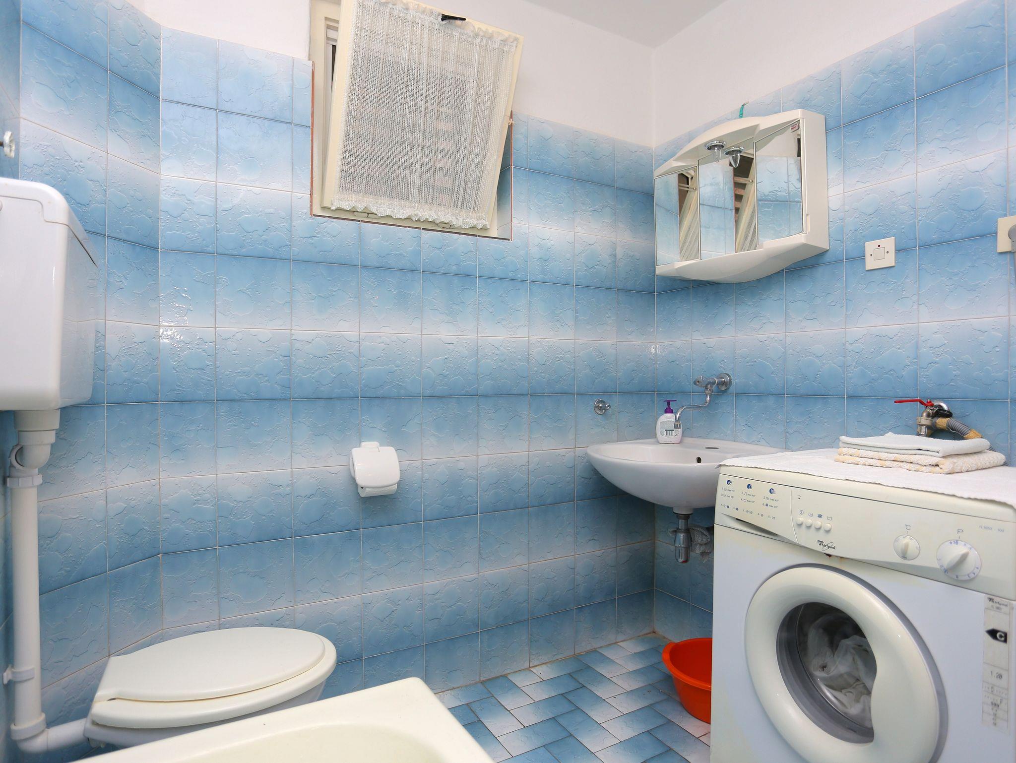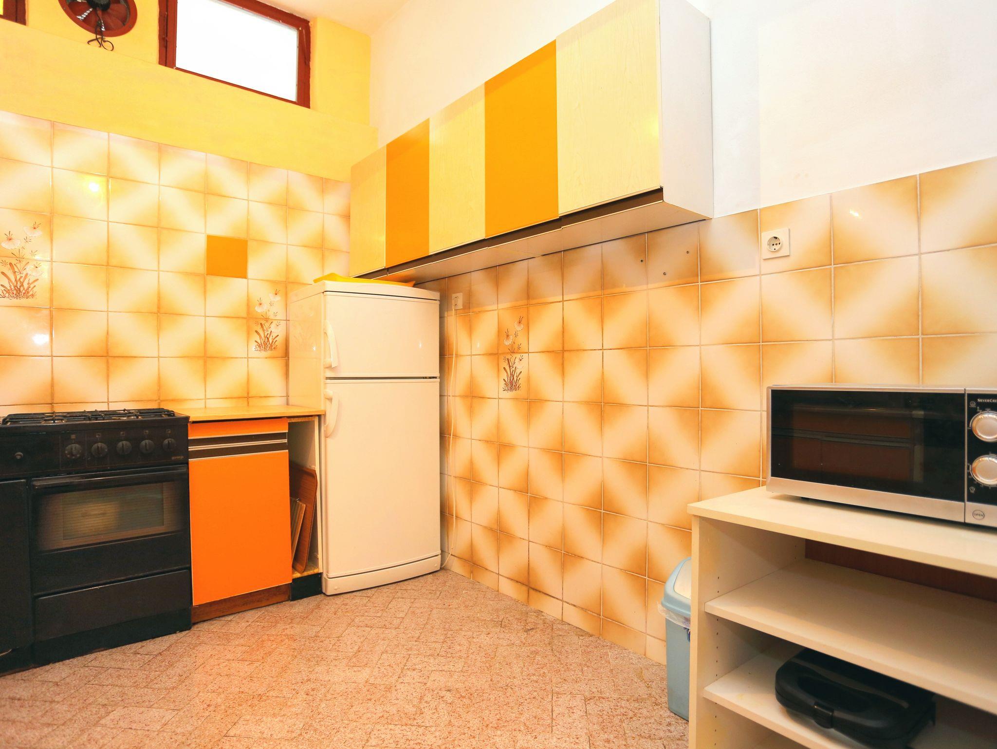 Ferienwohnung bietet Platz für 9 Gäste. Die Betten sind in Schlafzimmern, die es 3 gibt, und in Wohnzimmer, innerhalb einer Gesamtfläche von 78m2, angeordnet. Die Gäste haben eine eigene Terrasse zur Verfügung, auf der sie in warmen Sommernächten genießen können. Das Apartment bietet Meerblick. Es ist erlaubt, Speisen auf dem Gemeinschafts-Grill vorzubereiten. Räume der gebuchten Unterkunftseinheit werden nicht in eine Ganze verbunden. IM PREIS INBEGRIFFEN: Kurtaxe, Endreinigung, Klimatisierung, Parkplatz, Internet, Bügeleisen, Föhn. VERBINDLICHE ZUSÄTZLICHE KOSTEN: Aufzahlung für Kurzaufenthalte (prozentualer Zuschlag pro Nächtigungsanzahl: 30% - 1, 20% - 2, 10% - 3). UNVERBINDLICHE ZUSÄTZLICHE KOSTEN: Wäschewaschen (5,00 € Waschen). Die Verfügbarkeit zusätzlicher Dienstleistungen in Ihrem reservierten Termin und die Preise derselben (falls nicht aufgeführt) müssen im Voraus überprüft werden. Zusätzliche Dienstleistungen die in der Zahlungsaufforderung nicht aufgeführt sind werden direkt beim Vermieter bezahlt, angenommen der Gast nutzt auch diese.