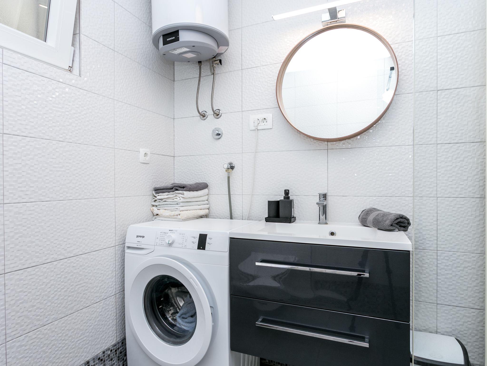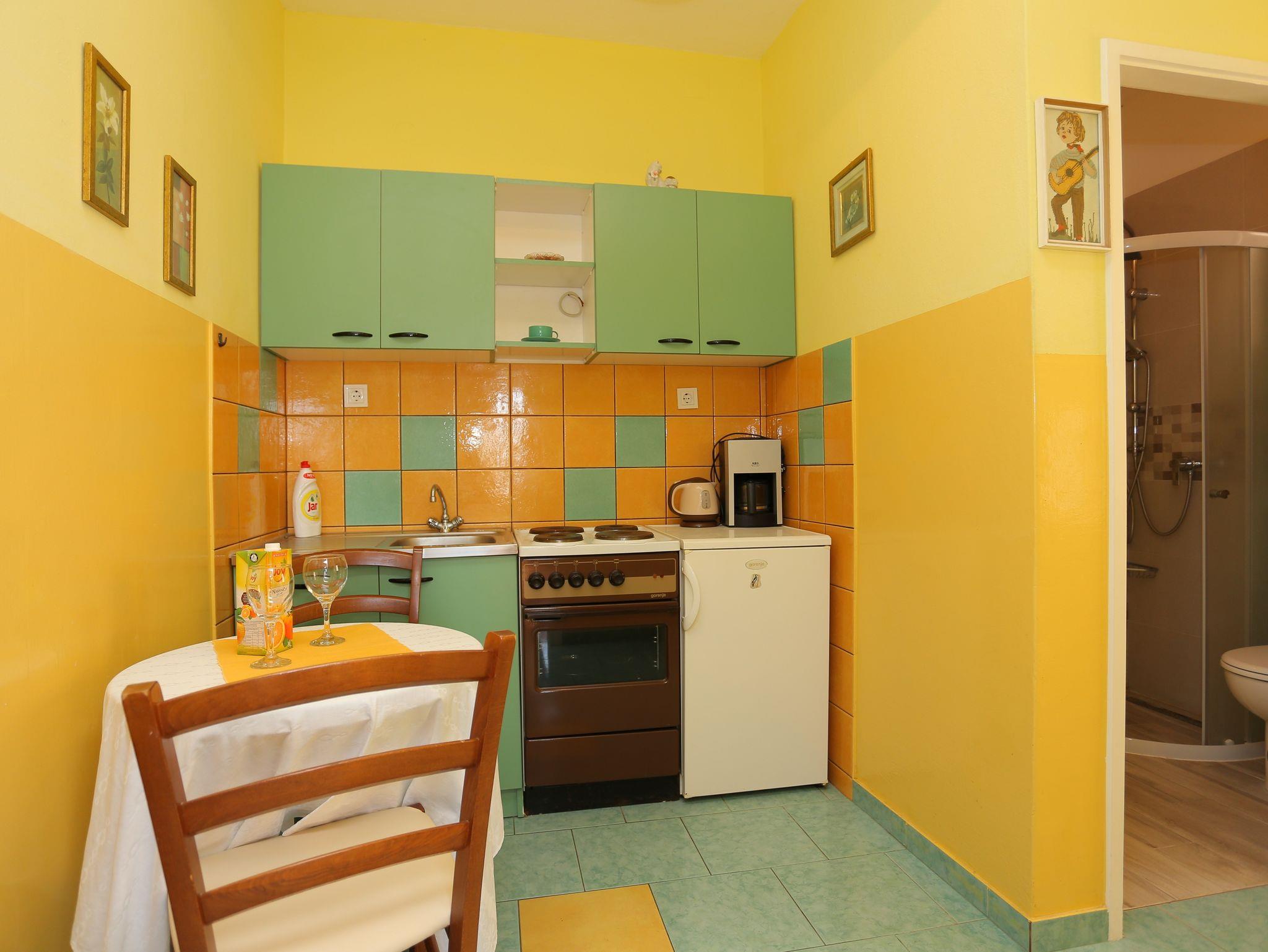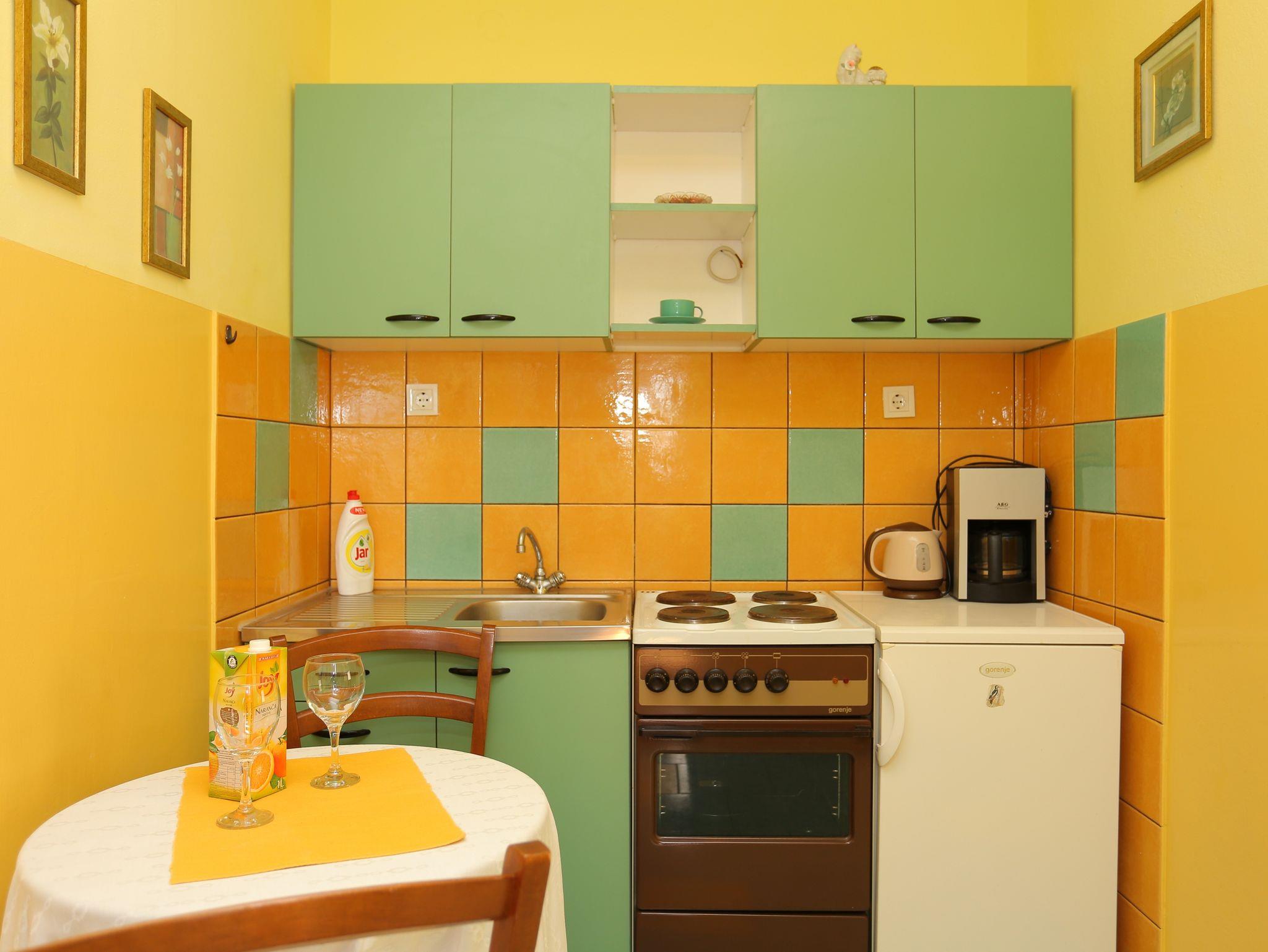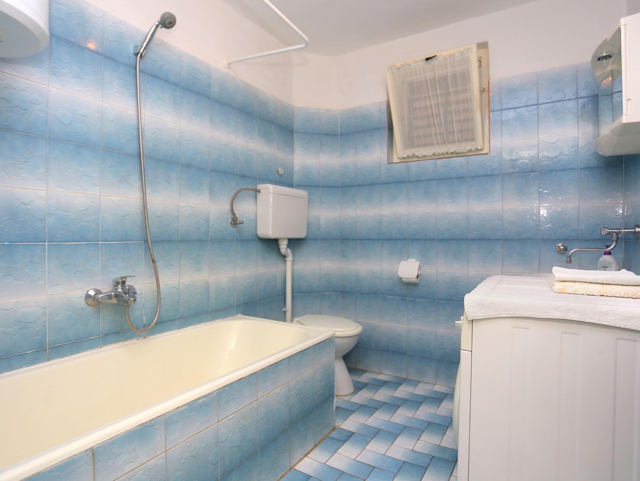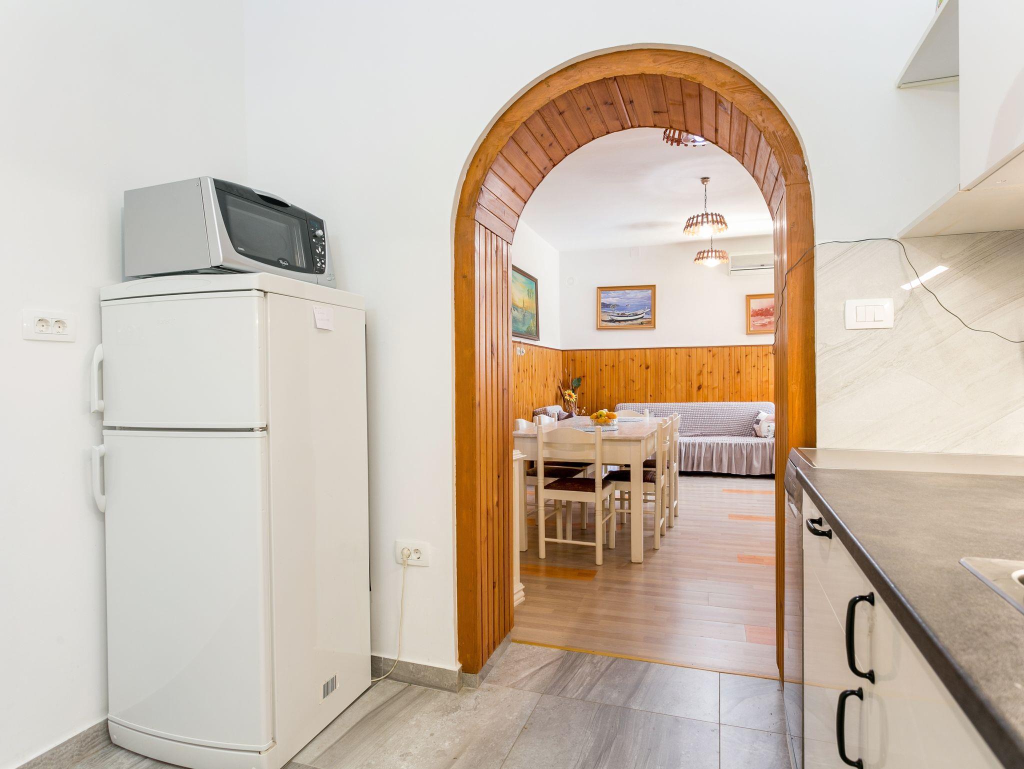 Ferienwohnung bietet Platz für 9 Gäste. Die Betten sind in Schlafzimmern, die es 3 gibt, und in Wohnzimmer, innerhalb einer Gesamtfläche von 78m2, angeordnet. Die Gäste haben eine eigene Terrasse zur Verfügung, auf der sie in warmen Sommernächten genießen können. Das Apartment bietet Meerblick. Es ist erlaubt, Speisen auf dem Gemeinschafts-Grill vorzubereiten. Räume der gebuchten Unterkunftseinheit werden nicht in eine Ganze verbunden. IM PREIS INBEGRIFFEN: Kurtaxe, Endreinigung, Klimatisierung, Parkplatz, Internet, Bügeleisen, Föhn. VERBINDLICHE ZUSÄTZLICHE KOSTEN: Aufzahlung für Kurzaufenthalte (prozentualer Zuschlag pro Nächtigungsanzahl: 30% - 1, 20% - 2, 10% - 3). UNVERBINDLICHE ZUSÄTZLICHE KOSTEN: Wäschewaschen (5,00 € Waschen). Die Verfügbarkeit zusätzlicher Dienstleistungen in Ihrem reservierten Termin und die Preise derselben (falls nicht aufgeführt) müssen im Voraus überprüft werden. Zusätzliche Dienstleistungen die in der Zahlungsaufforderung nicht aufgeführt sind werden direkt beim Vermieter bezahlt, angenommen der Gast nutzt auch diese.