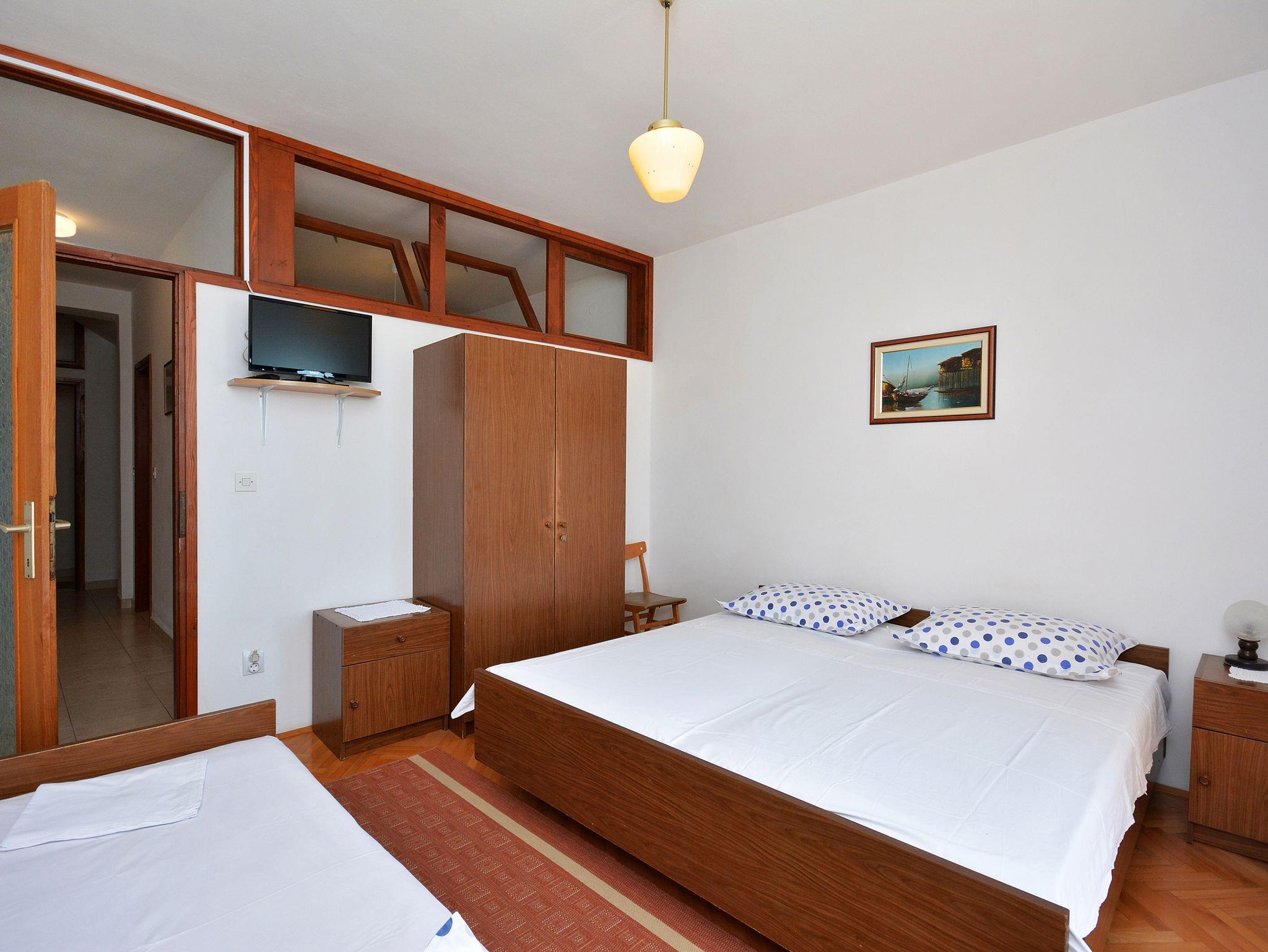 Ferienwohnung bietet Platz für 3 Gäste. Die Betten sind in Schlafzimmern, die es 1 gibt, innerhalb einer Gesamtfläche von 28m2, angeordnet. Die Gäste haben eine eigene Terrasse zur Verfügung, auf der sie in warmen Sommernächten genießen können. Das Apartment bietet Meerblick. Es ist erlaubt, Speisen auf dem Gemeinschafts-Grill vorzubereiten. IM PREIS INBEGRIFFEN: Kurtaxe, Endreinigung, Klimatisierung, Parkplatz, Garage, Internet, Wäschewaschen, Bügelbrett, Föhn. VERBINDLICHE ZUSÄTZLICHE KOSTEN: Aufzahlung für Kurzaufenthalte (prozentualer Zuschlag pro Nächtigungsanzahl: 30% - 1, 20% - 2, 10% - 3). Die Verfügbarkeit zusätzlicher Dienstleistungen in Ihrem reservierten Termin und die Preise derselben (falls nicht aufgeführt) müssen im Voraus überprüft werden. Zusätzliche Dienstleistungen die in der Zahlungsaufforderung nicht aufgeführt sind werden direkt beim Vermieter bezahlt, angenommen der Gast nutzt auch diese.
