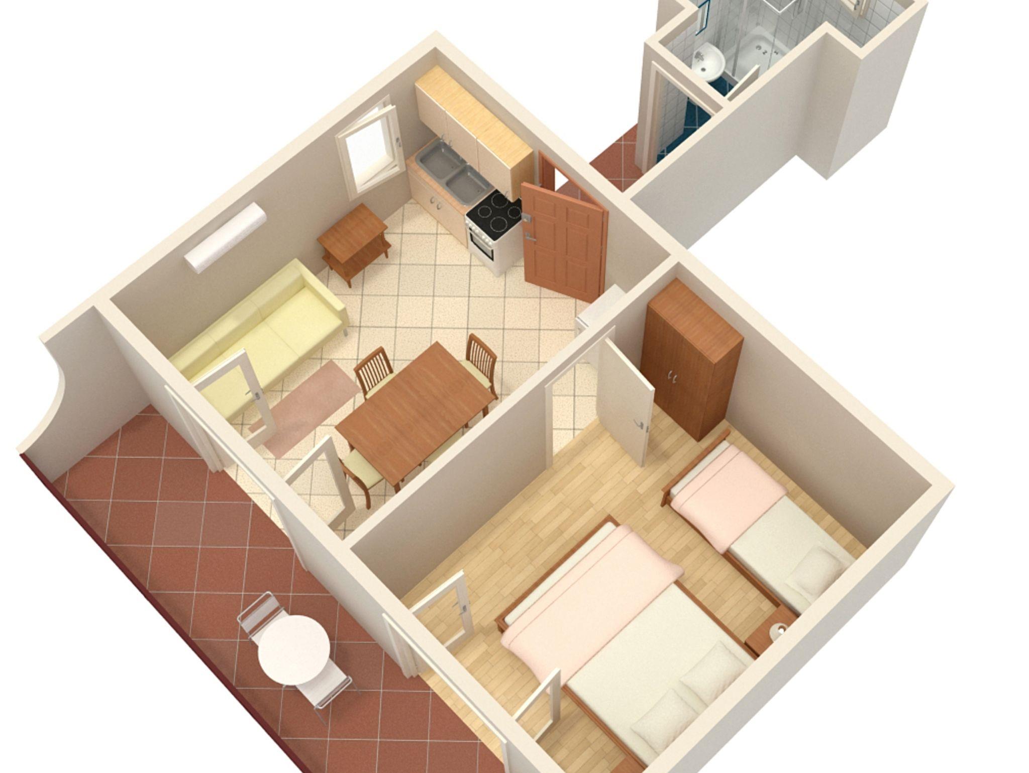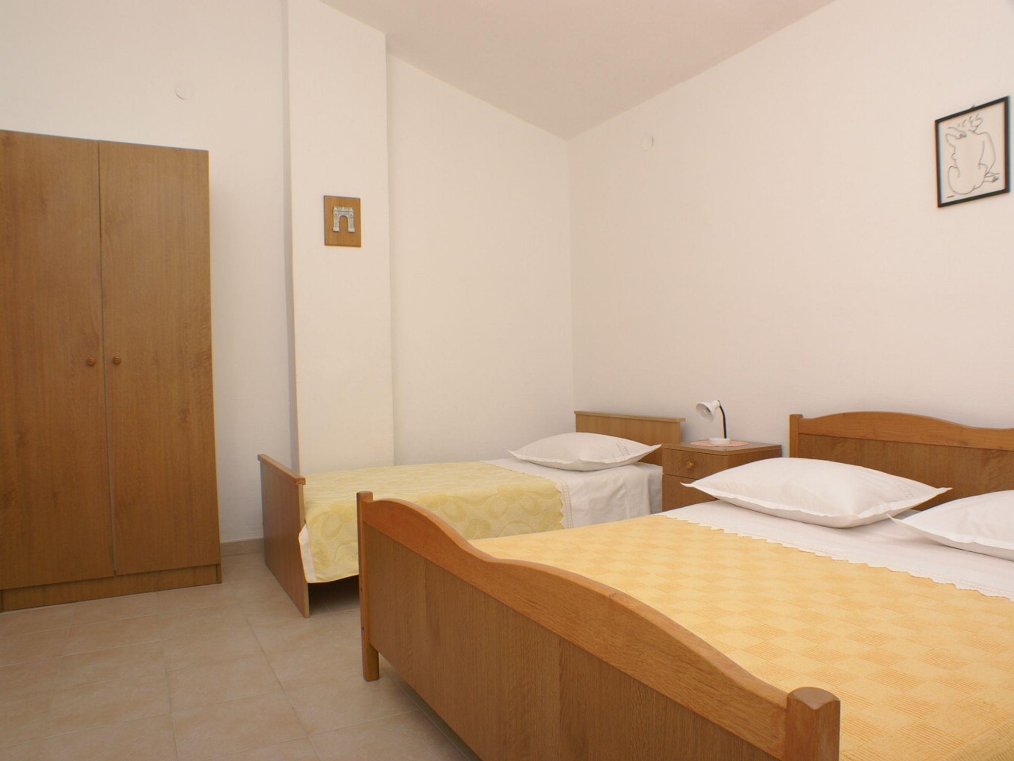 Ferienwohnung bietet Platz für 3 Gäste. Die Betten sind in Schlafzimmern, die es 1 gibt, und in Esszimmer, innerhalb einer Gesamtfläche von 33m2, angeordnet. Die Gäste haben einen eigenen Balkon zur Verfügung, auf der sie in warmen Sommernächten genießen können. Das Apartment bietet Meerblick. Es ist erlaubt, Speisen auf dem Gemeinschafts-Grill vorzubereiten. Unterkunftseinheit hat Räume, die von dem Rest der Einheit abgetrennt werden. IM PREIS INBEGRIFFEN: Kurtaxe, Endreinigung, Parkplatz, Internet, Liegestühle. VERBINDLICHE ZUSÄTZLICHE KOSTEN: Aufzahlung für Kurzaufenthalte (prozentualer Zuschlag pro Nächtigungsanzahl: 30% - 1, 20% - 2, 10% - 3). UNVERBINDLICHE ZUSÄTZLICHE KOSTEN: Klimatisierung (5,00 € pro Nacht), 1 Bett für Kinder (5,00 € Person/Tag). Die Verfügbarkeit zusätzlicher Dienstleistungen in Ihrem reservierten Termin und die Preise derselben (falls nicht aufgeführt) müssen im Voraus überprüft werden. Zusätzliche Dienstleistungen die in der Zahlungsaufforderung nicht aufgeführt sind werden direkt beim Vermieter bezahlt, angenommen der Gast nutzt auch diese.