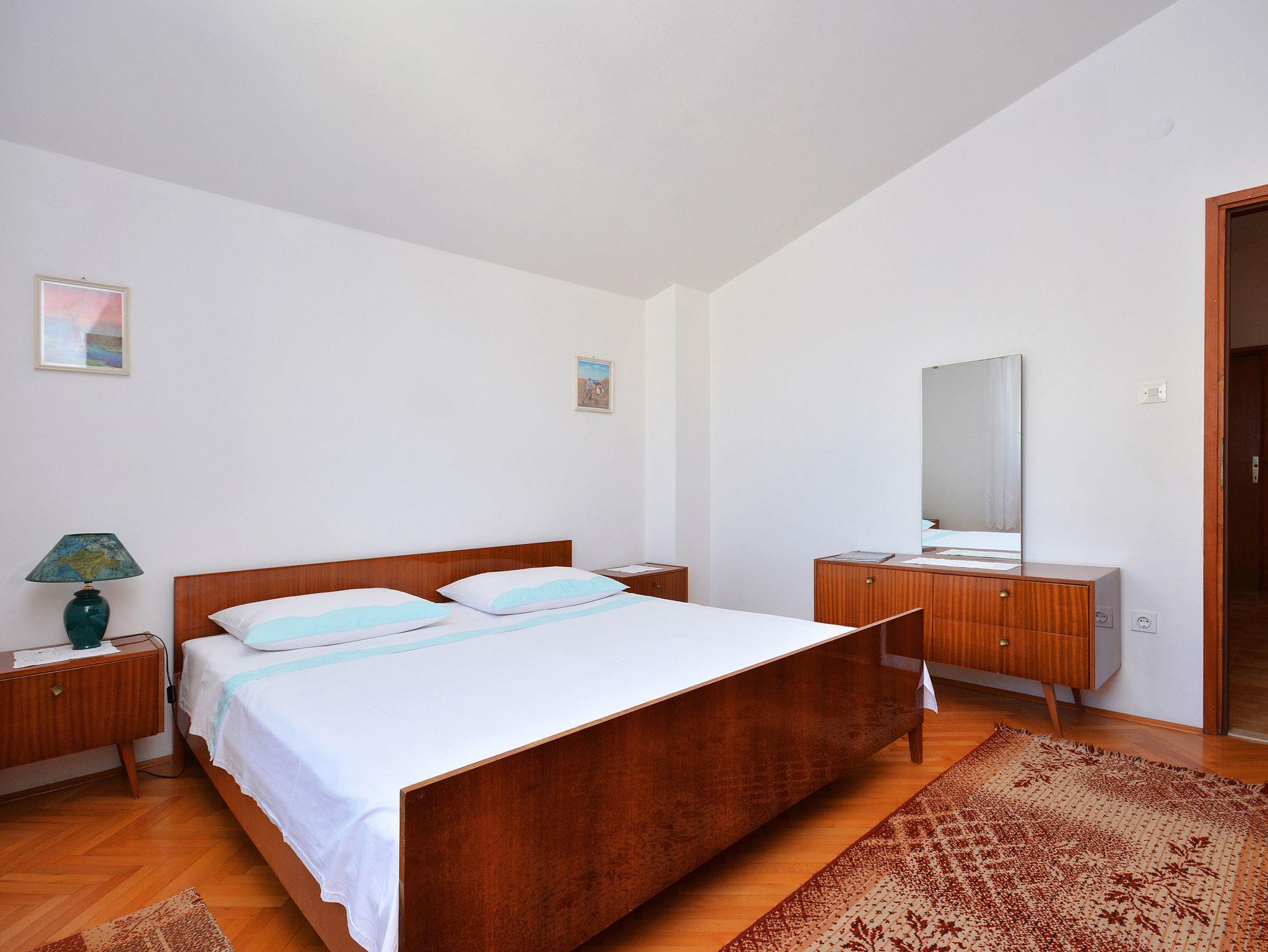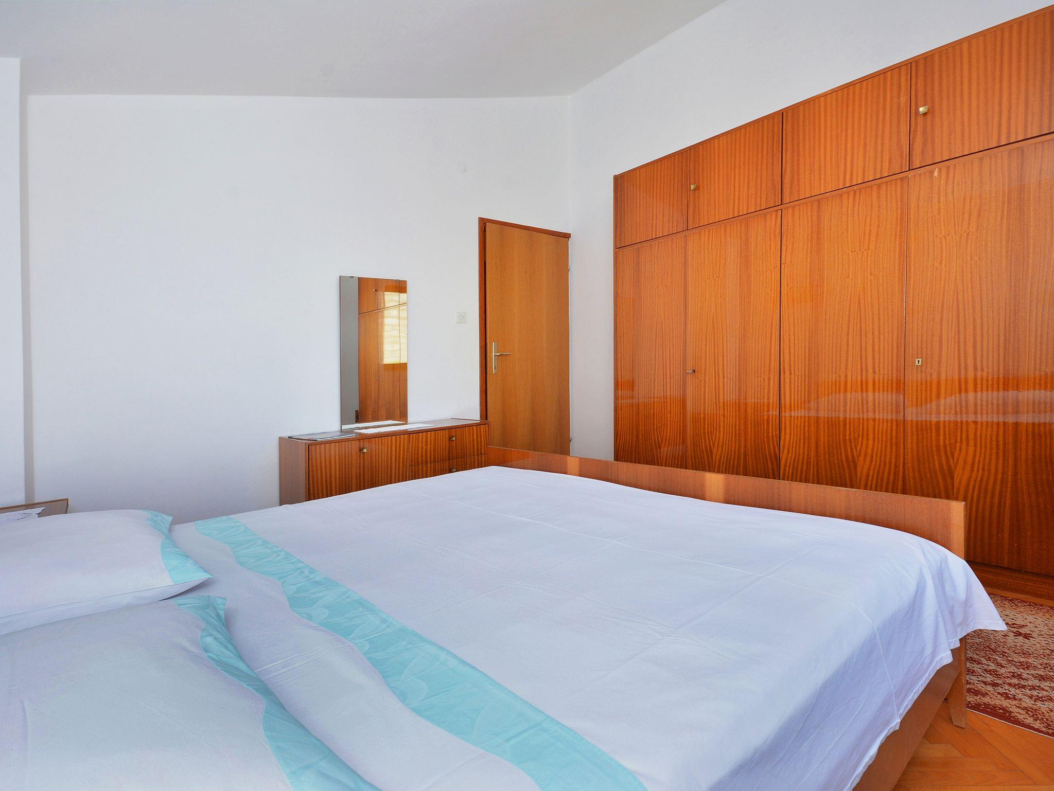 Ferienwohnung bietet Platz für 5 Gäste. Die Betten sind in Schlafzimmern, die es 2 gibt, innerhalb einer Gesamtfläche von 54m2, angeordnet. Die Gäste haben eine eigene Terrasse zur Verfügung, auf der sie in warmen Sommernächten genießen können. Das Apartment bietet Meerblick. Es ist erlaubt, Speisen auf dem Gemeinschafts-Grill vorzubereiten. IM PREIS INBEGRIFFEN: Kurtaxe, Endreinigung, Klimatisierung, Parkplatz, Garage, Internet, Wäschewaschen, Zusatzbett, Bügelbrett, Föhn. VERBINDLICHE ZUSÄTZLICHE KOSTEN: Aufzahlung für Kurzaufenthalte (prozentualer Zuschlag pro Nächtigungsanzahl: 30% - 1, 20% - 2, 10% - 3). Die Verfügbarkeit zusätzlicher Dienstleistungen in Ihrem reservierten Termin und die Preise derselben (falls nicht aufgeführt) müssen im Voraus überprüft werden. Zusätzliche Dienstleistungen die in der Zahlungsaufforderung nicht aufgeführt sind werden direkt beim Vermieter bezahlt, angenommen der Gast nutzt auch diese.
