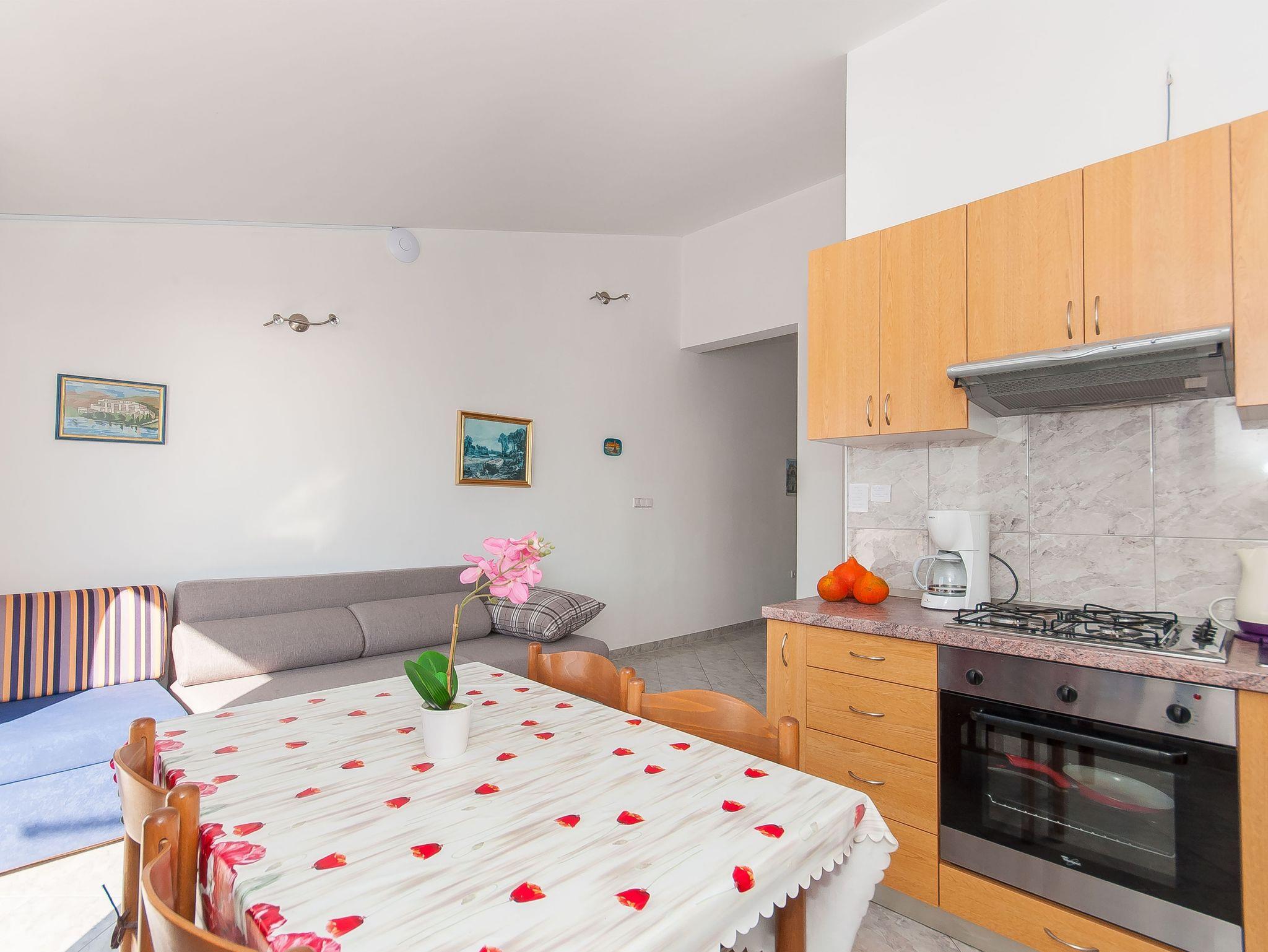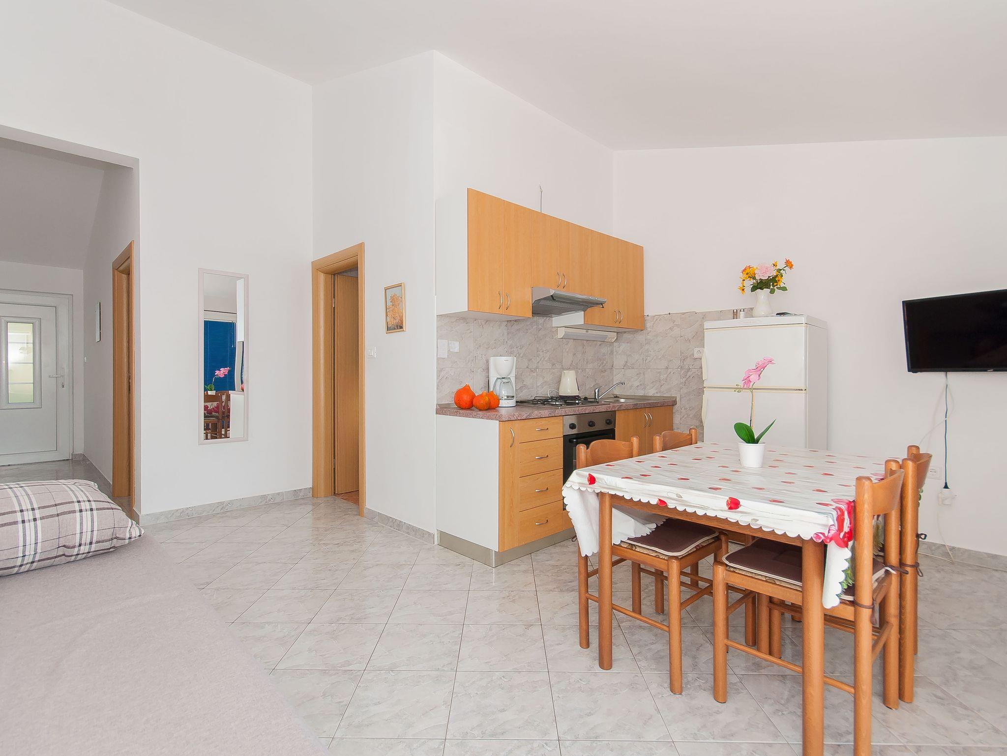 Ferienwohnung bietet Platz für 4 Gäste. Die Betten sind in Schlafzimmern, die es 1 gibt, und in Esszimmer, innerhalb einer Gesamtfläche von 38m2, angeordnet. Die Gäste haben eine eigene Terrasse zur Verfügung, auf der sie in warmen Sommernächten genießen können. Das Apartment bietet Meerblick. Es ist erlaubt, Speisen auf dem Gemeinschafts-Grill vorzubereiten. In der Unterkunftseinheit besteht die Möglichkeit des Mitbringens von Haustieren gegen Aufpreis. IM PREIS INBEGRIFFEN: Kurtaxe, Endreinigung, Klimatisierung, Parkplatz, Internet. VERBINDLICHE ZUSÄTZLICHE KOSTEN: Aufzahlung für Kurzaufenthalte (prozentualer Zuschlag pro Nächtigungsanzahl: 30% - 1, 20% - 2, 10% - 3). UNVERBINDLICHE ZUSÄTZLICHE KOSTEN: Haustiere (5,00 € pro Nacht). Die Verfügbarkeit zusätzlicher Dienstleistungen in Ihrem reservierten Termin und die Preise derselben (falls nicht aufgeführt) müssen im Voraus überprüft werden. Zusätzliche Dienstleistungen die in der Zahlungsaufforderung nicht aufgeführt sind werden direkt beim Vermieter bezahlt, angenommen der Gast nutzt auch diese.
