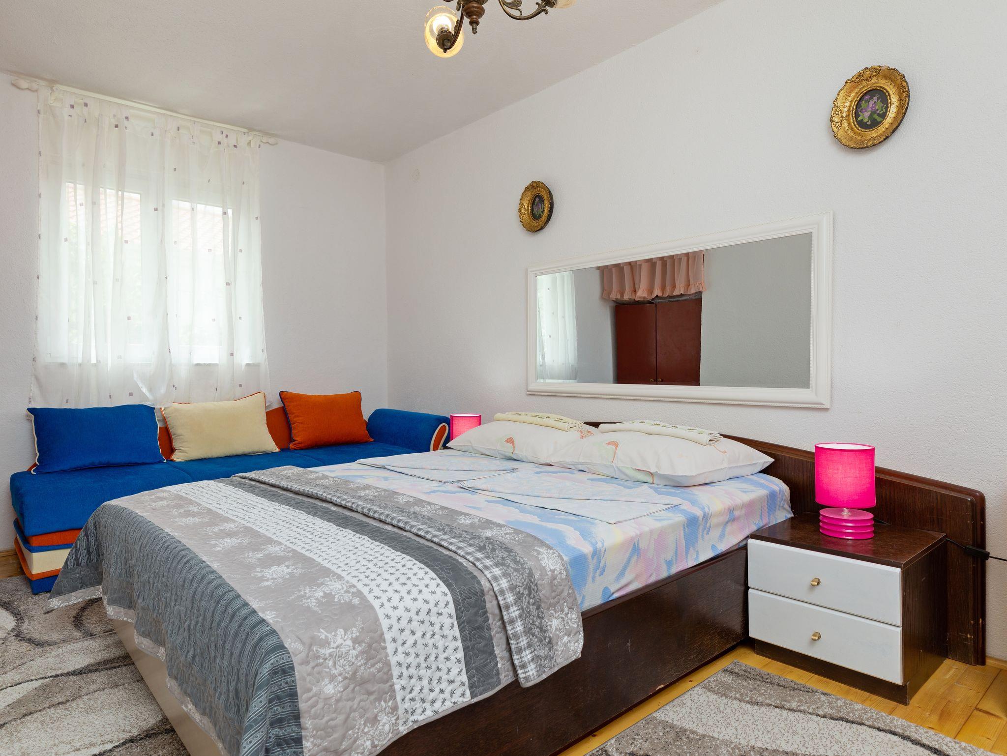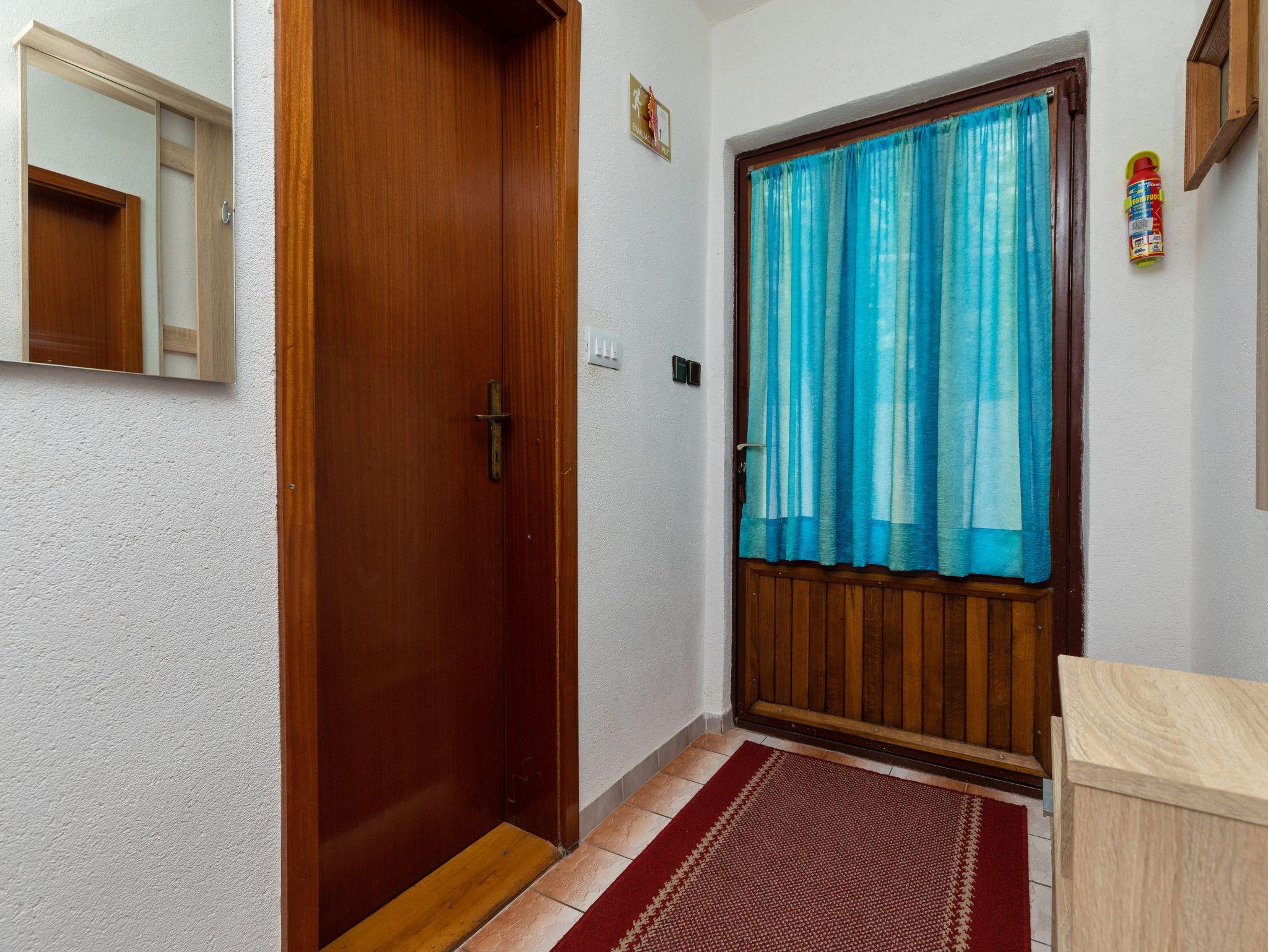 Ferienwohnung bietet Platz für 5 Gäste. Die Betten sind in Schlafzimmern, die es 2 gibt, innerhalb einer Gesamtfläche von 55m2, angeordnet. Die Gäste haben eine eigene Terrasse zur Verfügung, auf der sie in warmen Sommernächten genießen können. Das Apartment bietet Meerblick. Es ist erlaubt, Speisen auf dem Gemeinschafts-Grill vorzubereiten. IM PREIS INBEGRIFFEN: Kurtaxe, Endreinigung, Klimatisierung, Parkplatz, Internet, Bügeleisen, Bügelbrett, Föhn, Sonnenschirm. VERBINDLICHE ZUSÄTZLICHE KOSTEN: Aufzahlung für Kurzaufenthalte (prozentualer Zuschlag pro Nächtigungsanzahl: 30% - 1, 20% - 2, 10% - 3). UNVERBINDLICHE ZUSÄTZLICHE KOSTEN: Zusatzbett (10,00 € pro Nacht). Die Verfügbarkeit zusätzlicher Dienstleistungen in Ihrem reservierten Termin und die Preise derselben (falls nicht aufgeführt) müssen im Voraus überprüft werden. Zusätzliche Dienstleistungen die in der Zahlungsaufforderung nicht aufgeführt sind werden direkt beim Vermieter bezahlt, angenommen der Gast nutzt auch diese.