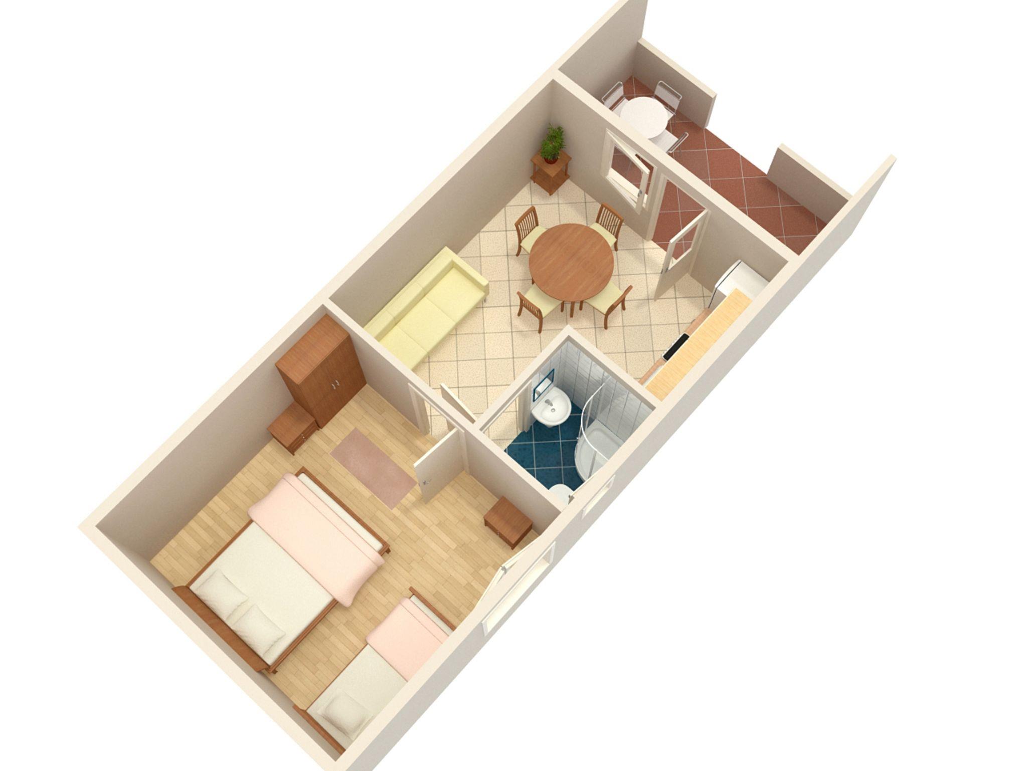 Ferienwohnung bietet Platz für 3 Gäste. Die Betten sind in Schlafzimmern, die es 1 gibt, und in Esszimmer, innerhalb einer Gesamtfläche von 33m2, angeordnet. Die Gäste haben eine eigene Terrasse zur Verfügung, auf der sie in warmen Sommernächten genießen können. Das Apartment bietet Meerblick. Es ist erlaubt, Speisen auf dem Gemeinschafts-Grill vorzubereiten. IM PREIS INBEGRIFFEN: Kurtaxe, Endreinigung, Parkplatz, Internet, Liegestühle. VERBINDLICHE ZUSÄTZLICHE KOSTEN: Aufzahlung für Kurzaufenthalte (prozentualer Zuschlag pro Nächtigungsanzahl: 30% - 1, 20% - 2, 10% - 3). UNVERBINDLICHE ZUSÄTZLICHE KOSTEN: Klimatisierung (5,00 € pro Nacht), 1 Bett für Kinder (5,00 € Person/Tag). Die Verfügbarkeit zusätzlicher Dienstleistungen in Ihrem reservierten Termin und die Preise derselben (falls nicht aufgeführt) müssen im Voraus überprüft werden. Zusätzliche Dienstleistungen die in der Zahlungsaufforderung nicht aufgeführt sind werden direkt beim Vermieter bezahlt, angenommen der Gast nutzt auch diese.