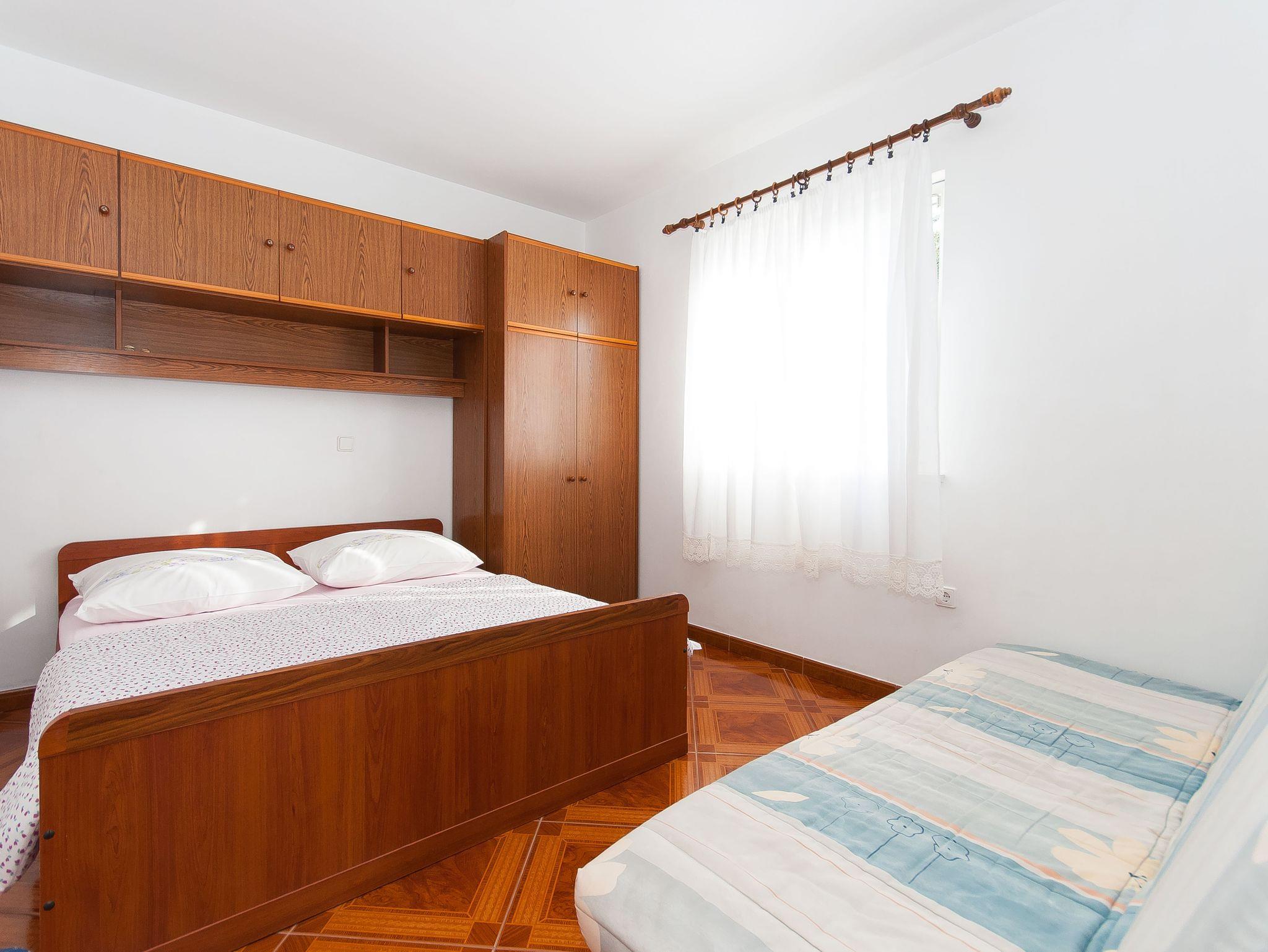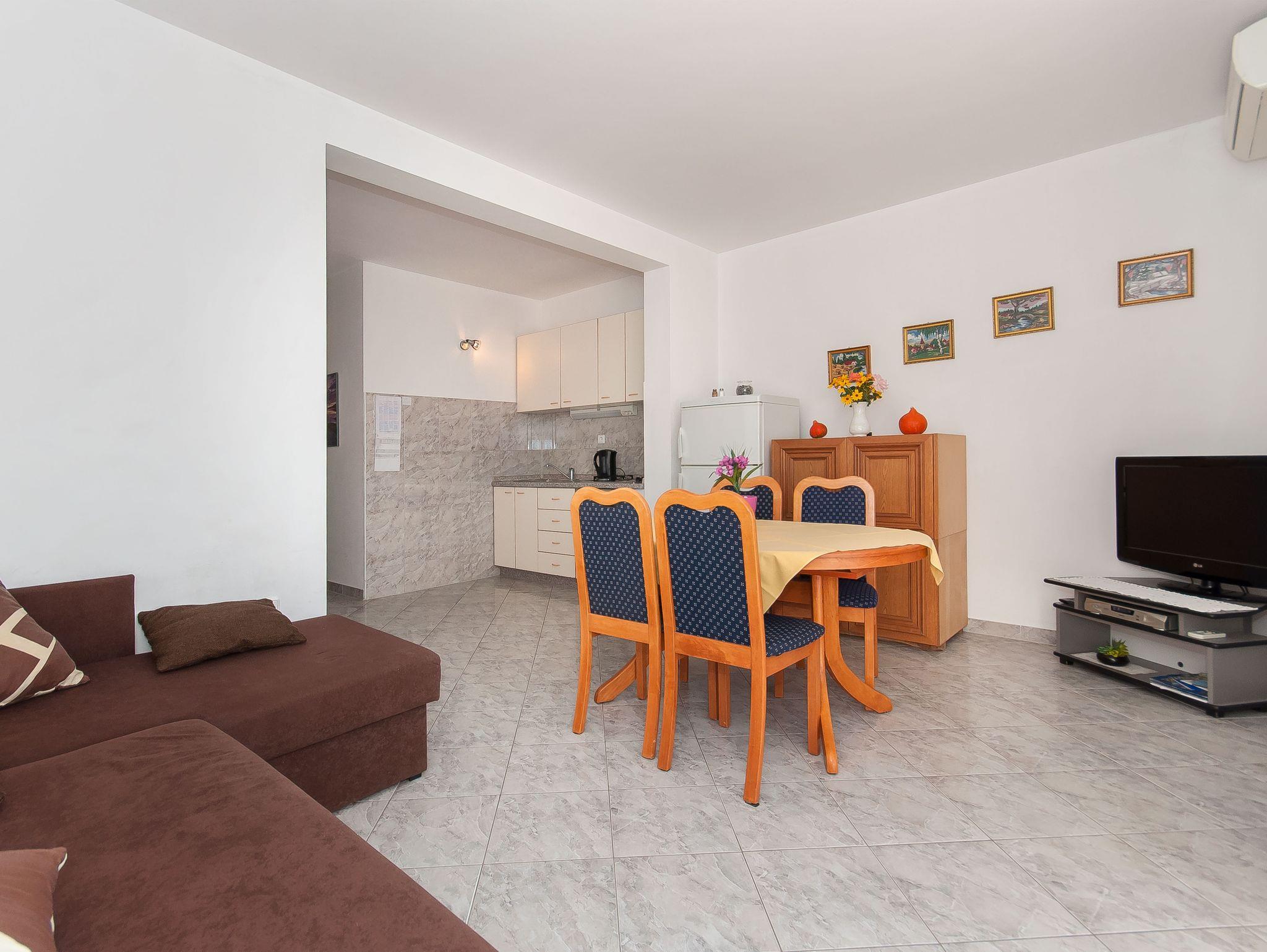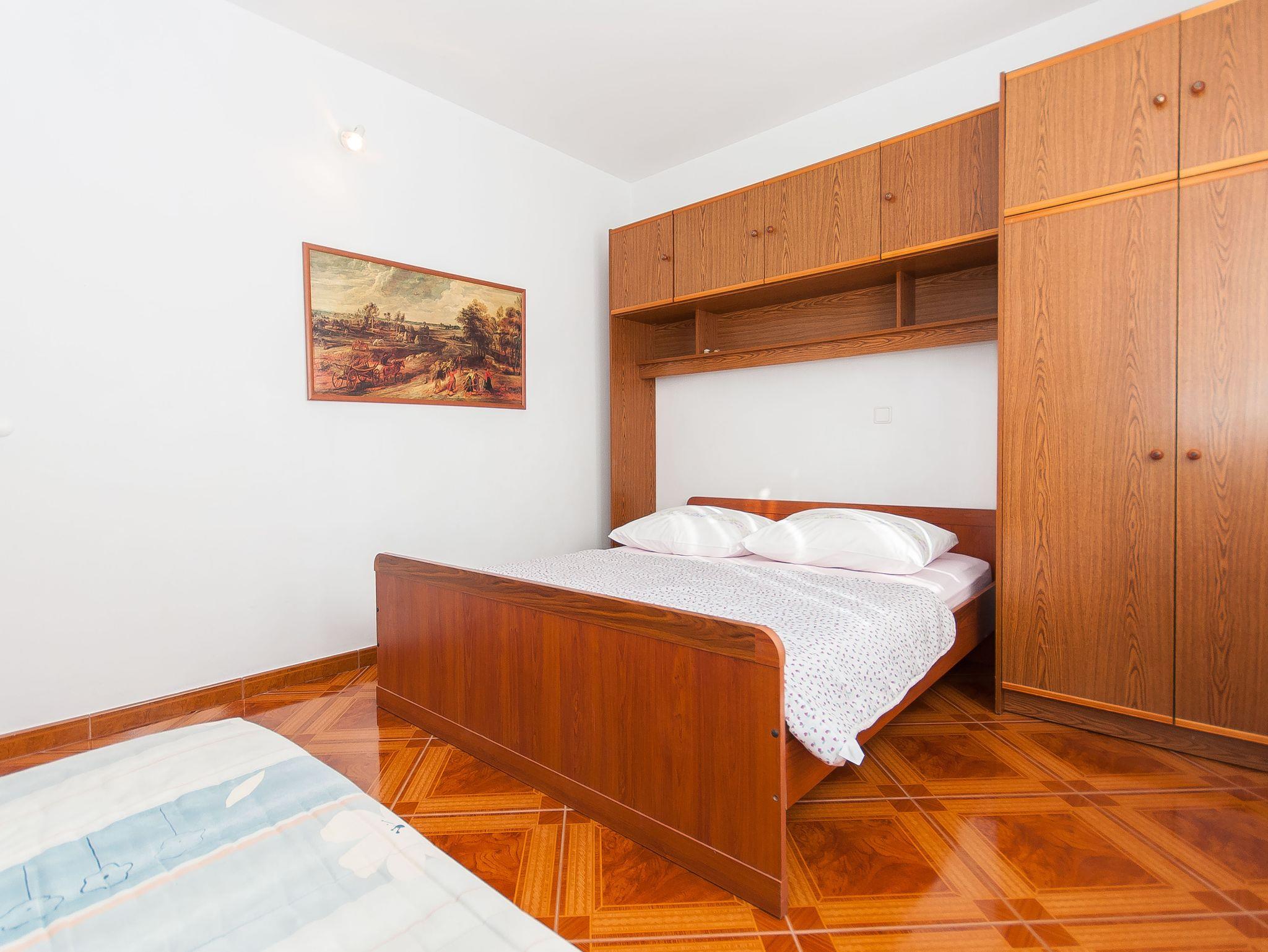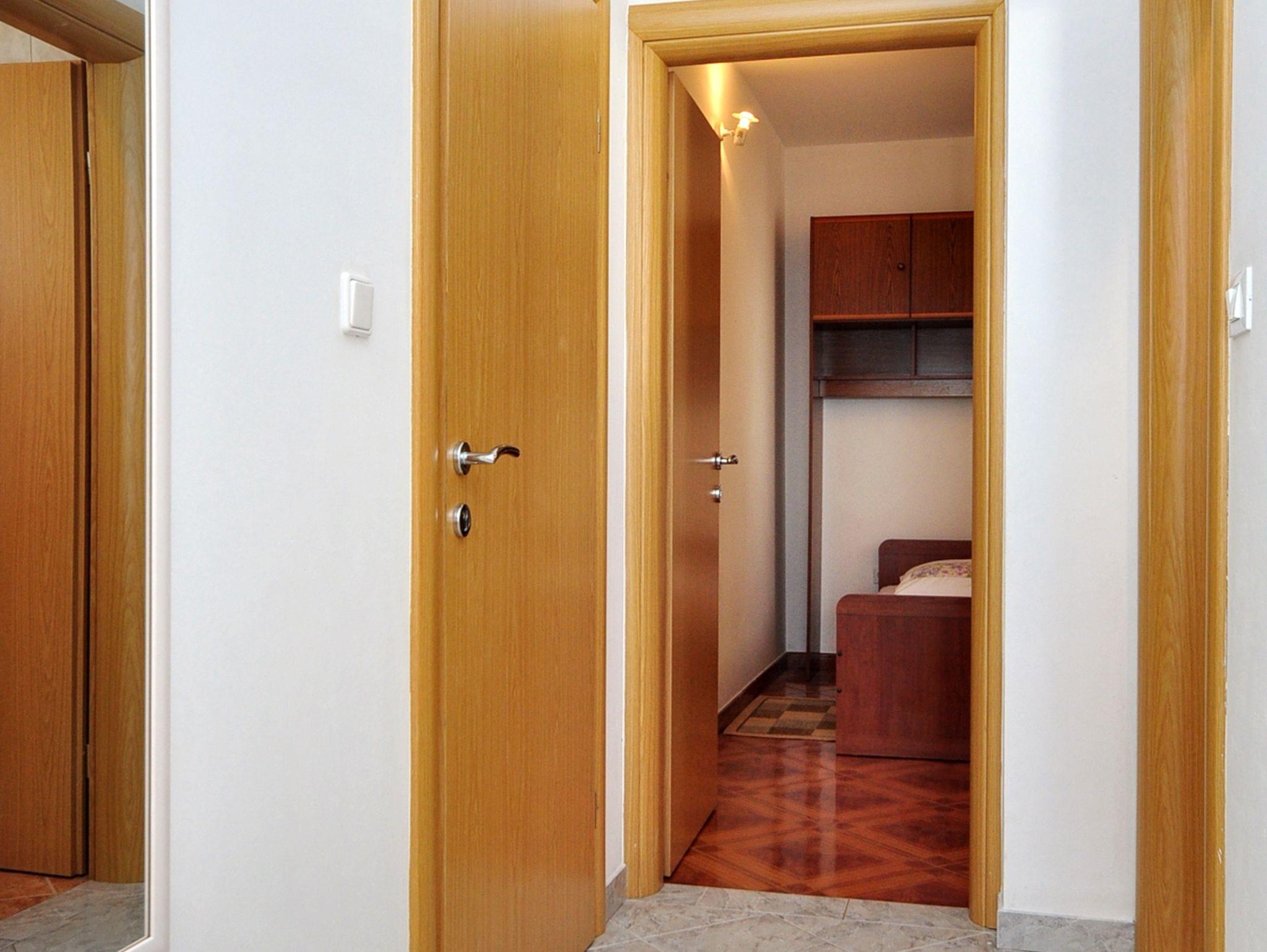 Ferienwohnung bietet Platz für 5 Gäste. Die Betten sind in Schlafzimmern, die es 1 gibt, und in Esszimmer, innerhalb einer Gesamtfläche von 40m2, angeordnet. Die Gäste haben eine eigene Terrasse zur Verfügung, auf der sie in warmen Sommernächten genießen können. Das Apartment bietet Meerblick. Es ist erlaubt, Speisen auf dem Gemeinschafts-Grill vorzubereiten. In der Unterkunftseinheit besteht die Möglichkeit des Mitbringens von Haustieren gegen Aufpreis. IM PREIS INBEGRIFFEN: Kurtaxe, Endreinigung, Klimatisierung, Parkplatz, Internet. VERBINDLICHE ZUSÄTZLICHE KOSTEN: Aufzahlung für Kurzaufenthalte (prozentualer Zuschlag pro Nächtigungsanzahl: 30% - 1, 20% - 2, 10% - 3). UNVERBINDLICHE ZUSÄTZLICHE KOSTEN: Haustiere (5,00 € pro Nacht). Die Verfügbarkeit zusätzlicher Dienstleistungen in Ihrem reservierten Termin und die Preise derselben (falls nicht aufgeführt) müssen im Voraus überprüft werden. Zusätzliche Dienstleistungen die in der Zahlungsaufforderung nicht aufgeführt sind werden direkt beim Vermieter bezahlt, angenommen der Gast nutzt auch diese.