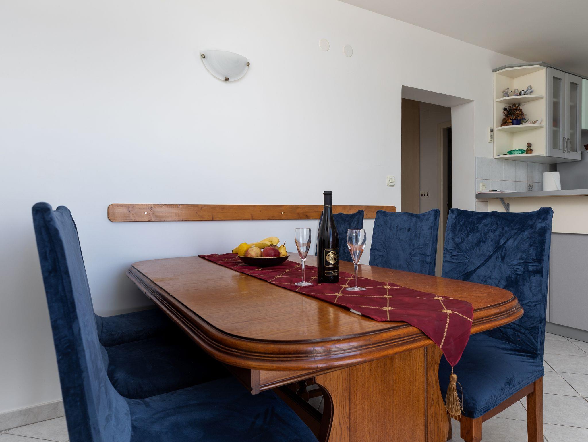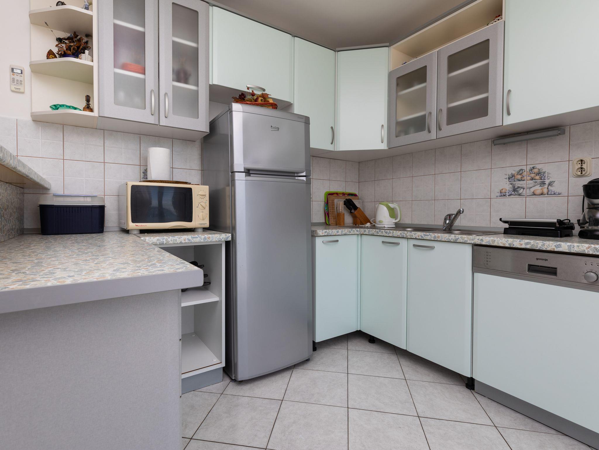 Ferienwohnung bietet Platz für 6 Gäste. Die Betten sind in Schlafzimmern, die es 3 gibt, innerhalb einer Gesamtfläche von 61m2, angeordnet. Die Gäste haben einen eigenen Balkon zur Verfügung, auf der sie in warmen Sommernächten genießen können. Das Apartment bietet Meerblick. Es ist erlaubt, Speisen auf dem Gemeinschafts-Grill vorzubereiten. In der Unterkunftseinheit besteht die Möglichkeit des Mitbringens von Haustieren gegen Aufpreis. IM PREIS INBEGRIFFEN: Kurtaxe, Endreinigung, Klimatisierung, Parkplatz, Internet, Kinderbett, Föhn. UNVERBINDLICHE ZUSÄTZLICHE KOSTEN: Wäschewaschen (7,00 € Waschen), Haustiere (10,00 € pro Nacht), Zusatzbett (10,00 € pro Nacht). Die Verfügbarkeit zusätzlicher Dienstleistungen in Ihrem reservierten Termin und die Preise derselben (falls nicht aufgeführt) müssen im Voraus überprüft werden. Zusätzliche Dienstleistungen die in der Zahlungsaufforderung nicht aufgeführt sind werden direkt beim Vermieter bezahlt, angenommen der Gast nutzt auch diese. Ermäßigung auf den Grundpreis: Gratistag 14=13 (bei einem Aufenthalt von 14 Tagen oder mehr erhalten Sie einen Gratistag für den Aufenthalt bis 31.12.26).