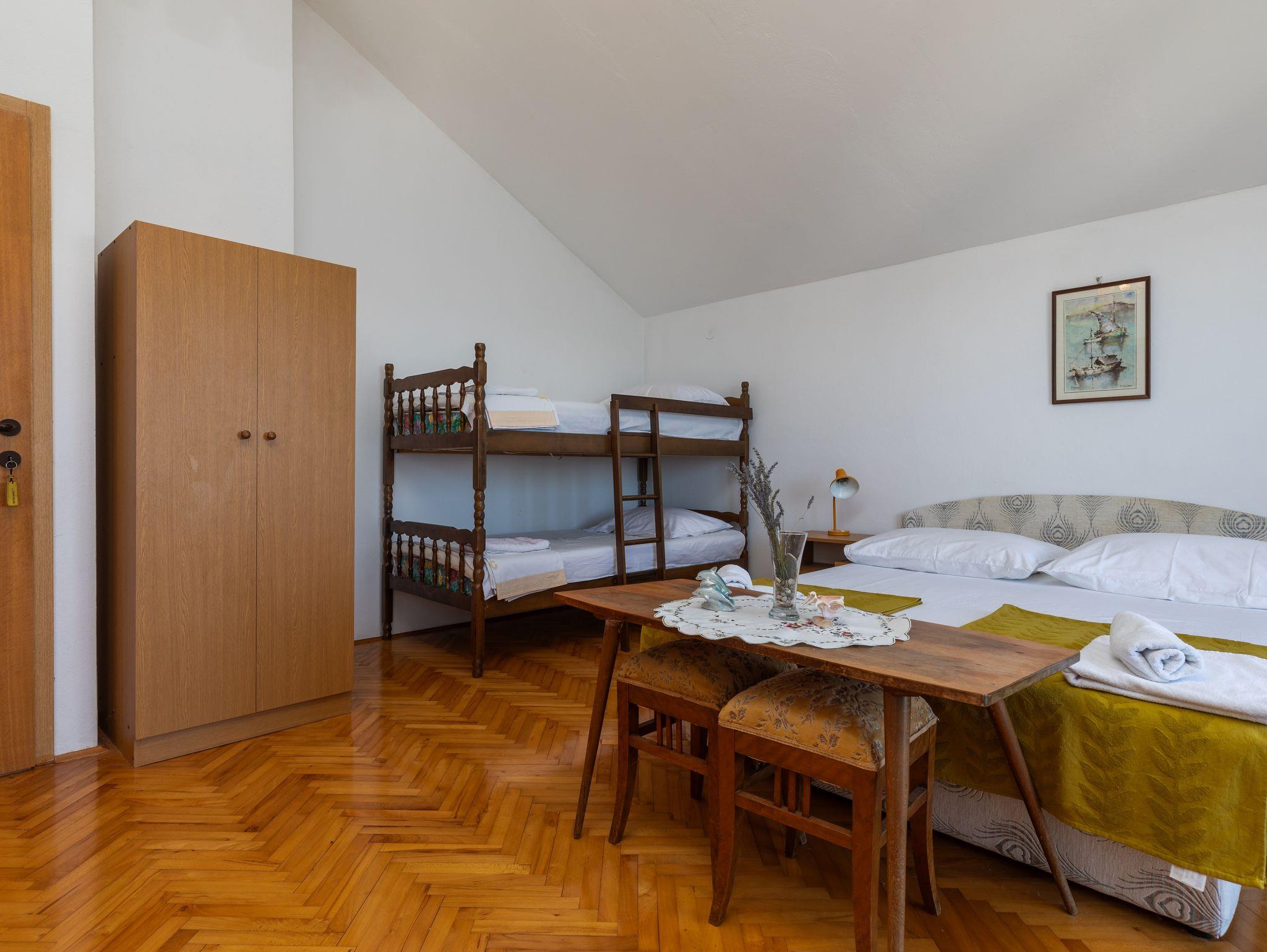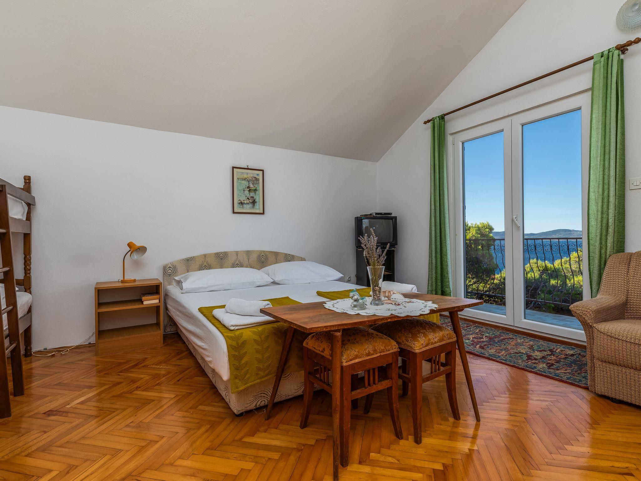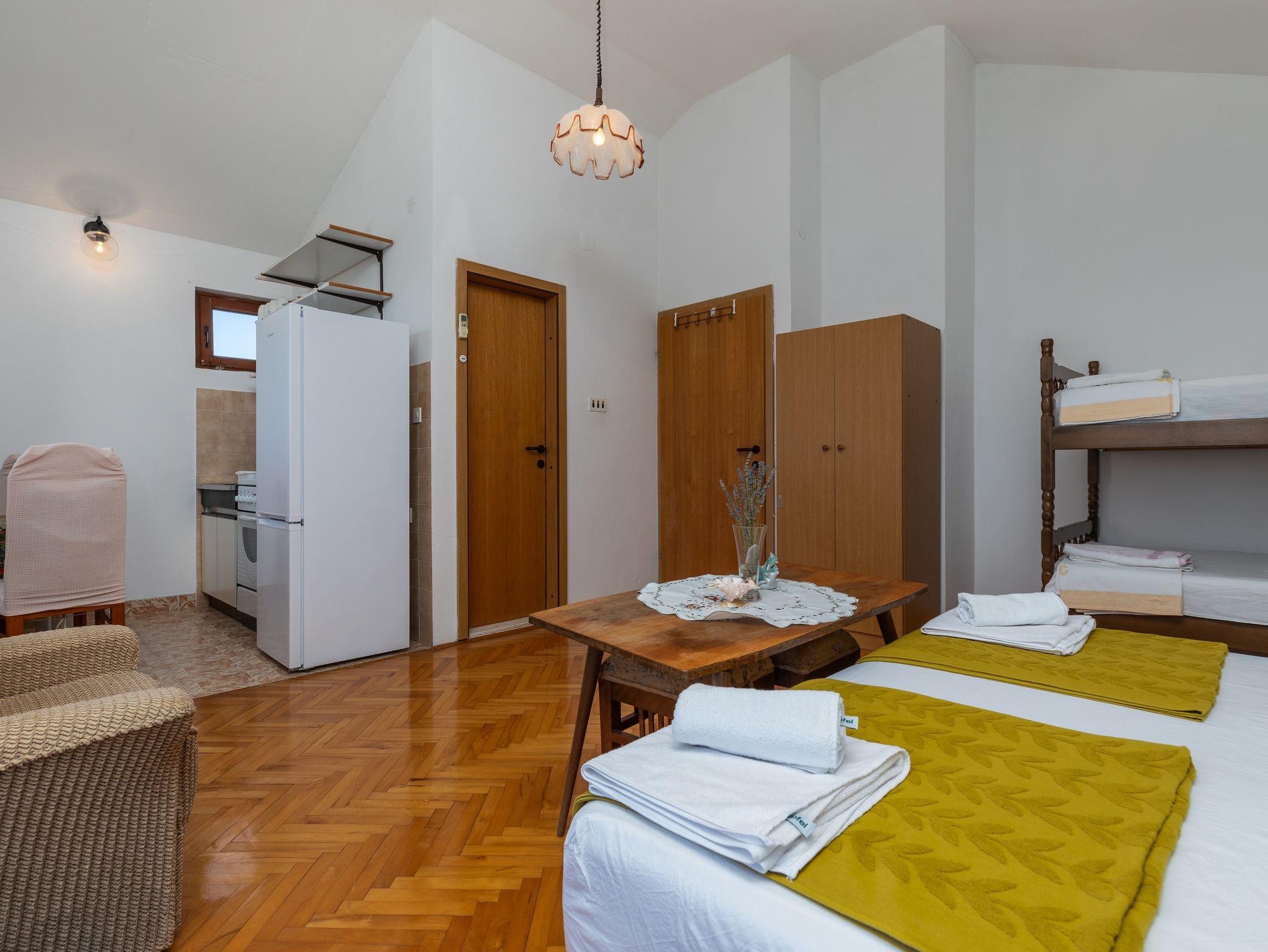 Studio bietet Platz für 3 Gäste. Die Betten sind in Schlafzimmern, die es 1 gibt, innerhalb einer Gesamtfläche von 21m2, angeordnet. Die Gäste haben einen eigenen Balkon zur Verfügung, auf der sie in warmen Sommernächten genießen können. Das Studio-Apartment bietet Meerblick. Es ist erlaubt, Speisen auf dem Gemeinschafts-Grill vorzubereiten. IM PREIS INBEGRIFFEN: Kurtaxe, Endreinigung, Klimatisierung, Parkplatz, Internet, Bügeleisen, Bügelbrett, Föhn. VERBINDLICHE ZUSÄTZLICHE KOSTEN: Aufzahlung für Kurzaufenthalte (prozentualer Zuschlag pro Nächtigungsanzahl: 30% - 1, 20% - 2, 10% - 3). UNVERBINDLICHE ZUSÄTZLICHE KOSTEN: Wäschewaschen (10,00 € Waschen). Die Verfügbarkeit zusätzlicher Dienstleistungen in Ihrem reservierten Termin und die Preise derselben (falls nicht aufgeführt) müssen im Voraus überprüft werden. Zusätzliche Dienstleistungen die in der Zahlungsaufforderung nicht aufgeführt sind werden direkt beim Vermieter bezahlt, angenommen der Gast nutzt auch diese. Ermäßigung auf den Grundpreis: Gratistag 14=13 (bei einem Aufenthalt von 14 Tagen oder mehr erhalten Sie einen Gratistag für den Aufenthalt bis 31.12.26).