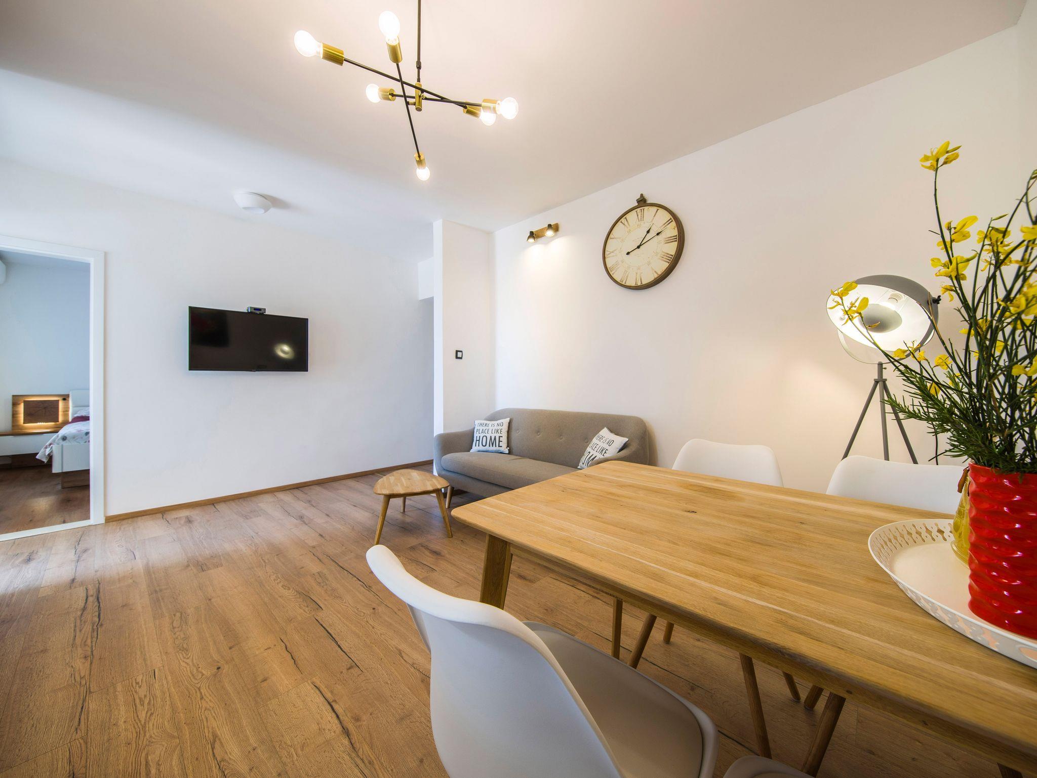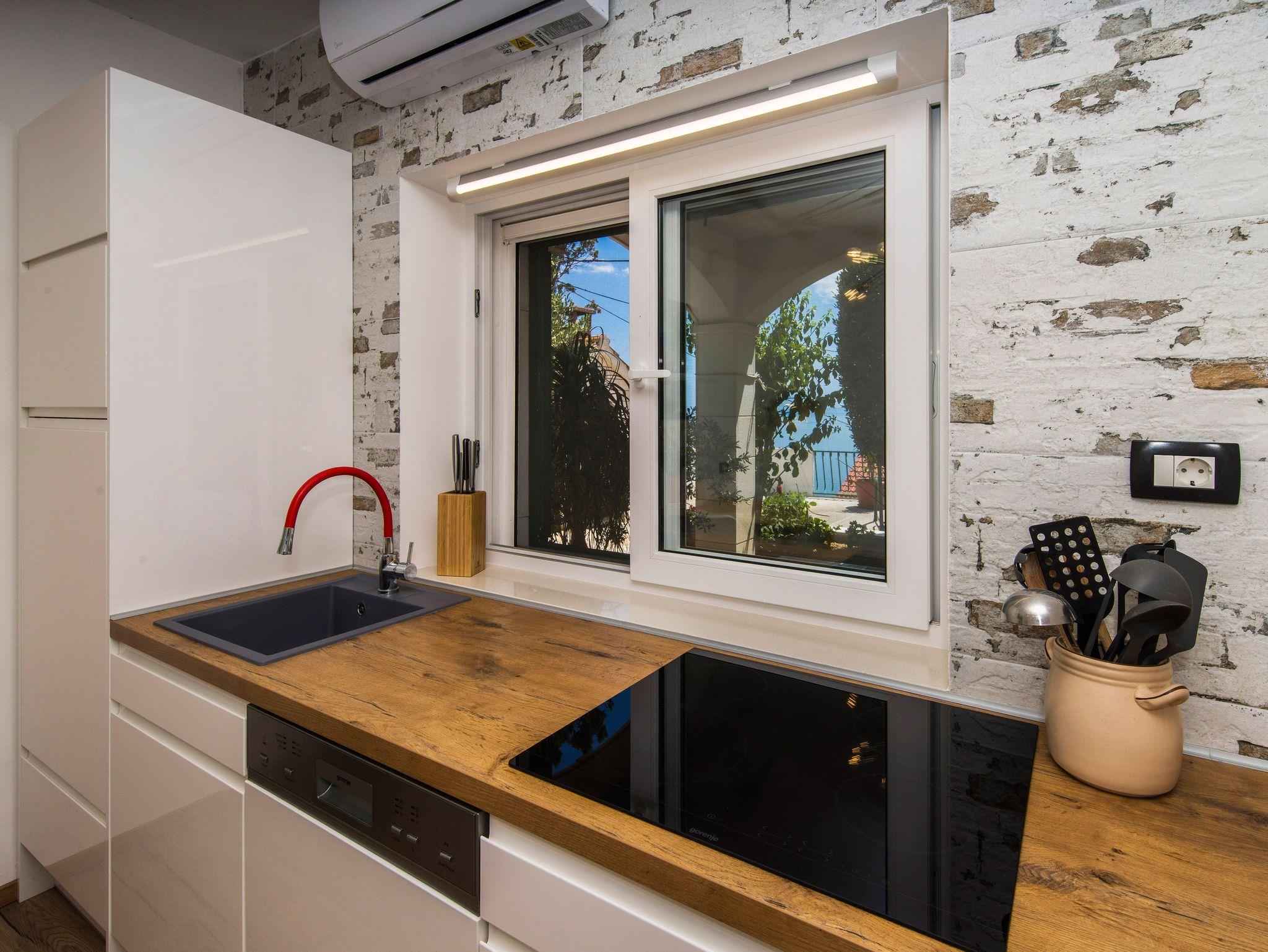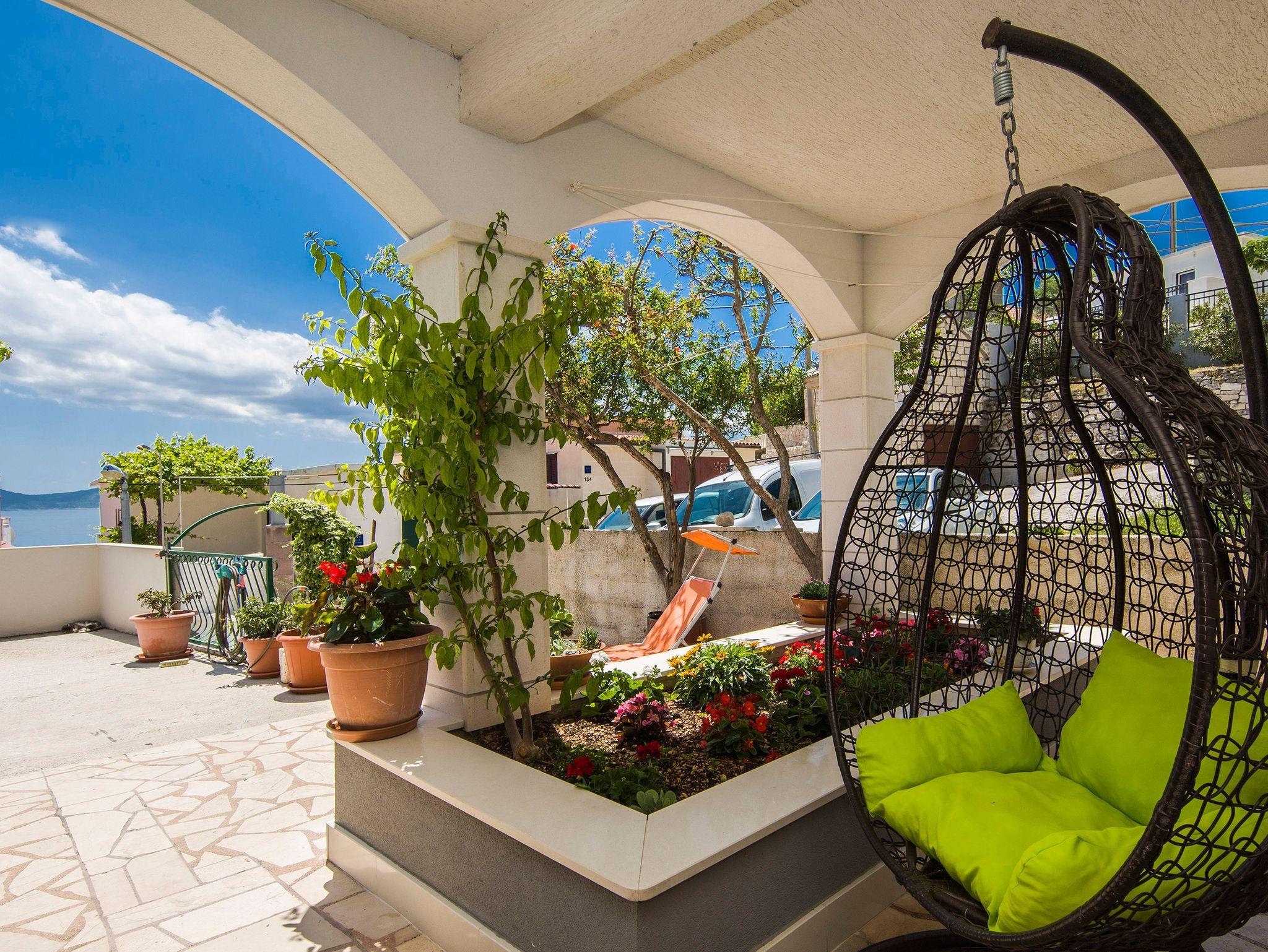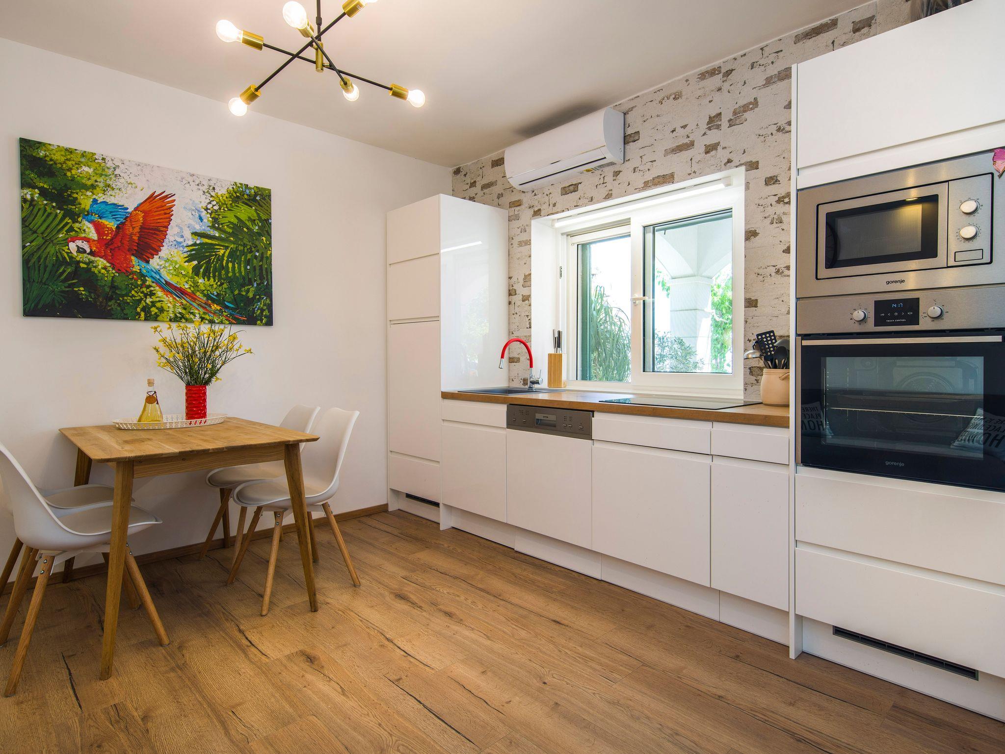 Ferienwohnung bietet Platz für 4 Gäste. Die Betten sind in Schlafzimmern, die es 2 gibt, innerhalb einer Gesamtfläche von 48m2, angeordnet. Die Gäste haben eine eigene Terrasse zur Verfügung, auf der sie in warmen Sommernächten genießen können. Das Apartment bietet Meerblick. Es ist erlaubt, Speisen auf dem Gemeinschafts-Grill vorzubereiten. IM PREIS INBEGRIFFEN: Kurtaxe, Endreinigung, Klimatisierung, Parkplatz, Garage, Internet, Kinderbett, Bügeleisen, Bügelbrett, Föhn. VERBINDLICHE ZUSÄTZLICHE KOSTEN: Aufzahlung für Kurzaufenthalte (prozentualer Zuschlag pro Nächtigungsanzahl: 30% - 1, 20% - 2, 10% - 3). Die Verfügbarkeit zusätzlicher Dienstleistungen in Ihrem reservierten Termin und die Preise derselben (falls nicht aufgeführt) müssen im Voraus überprüft werden. Zusätzliche Dienstleistungen die in der Zahlungsaufforderung nicht aufgeführt sind werden direkt beim Vermieter bezahlt, angenommen der Gast nutzt auch diese.