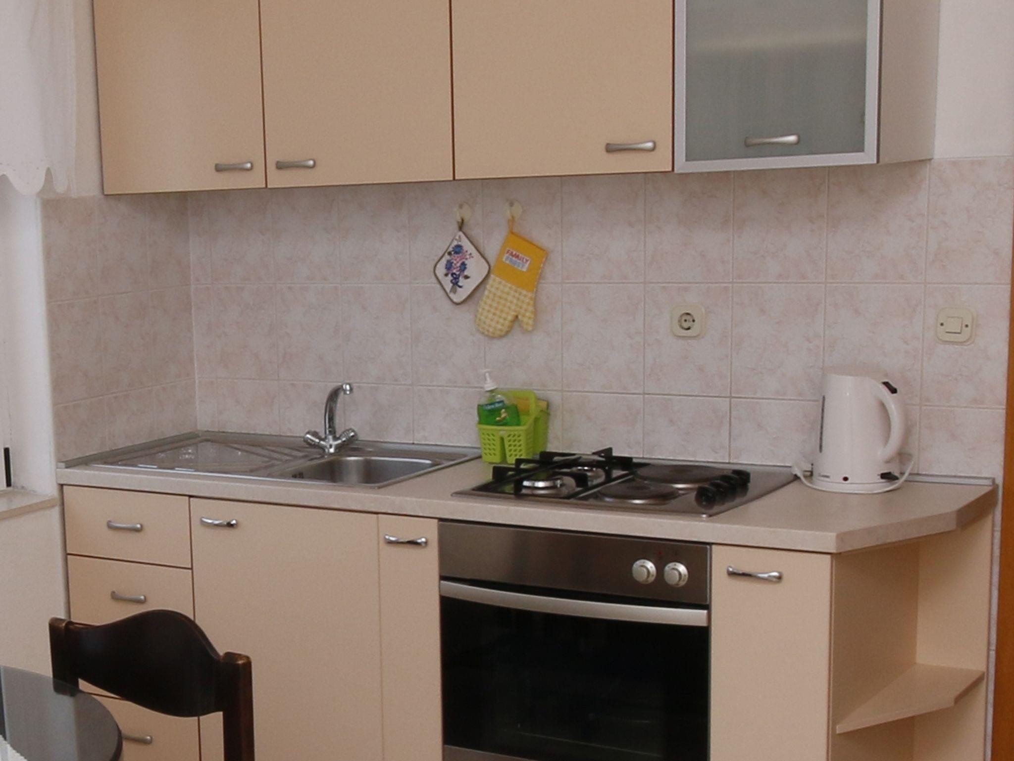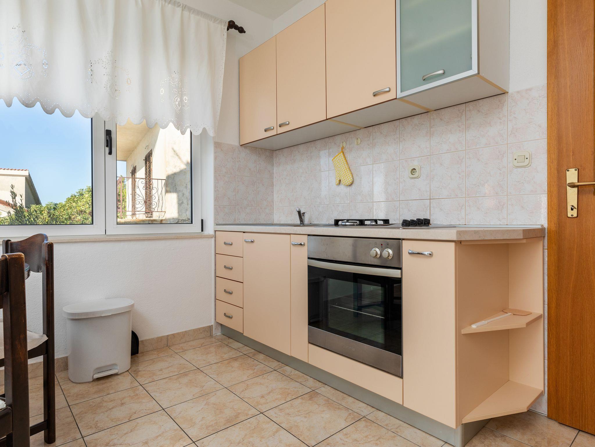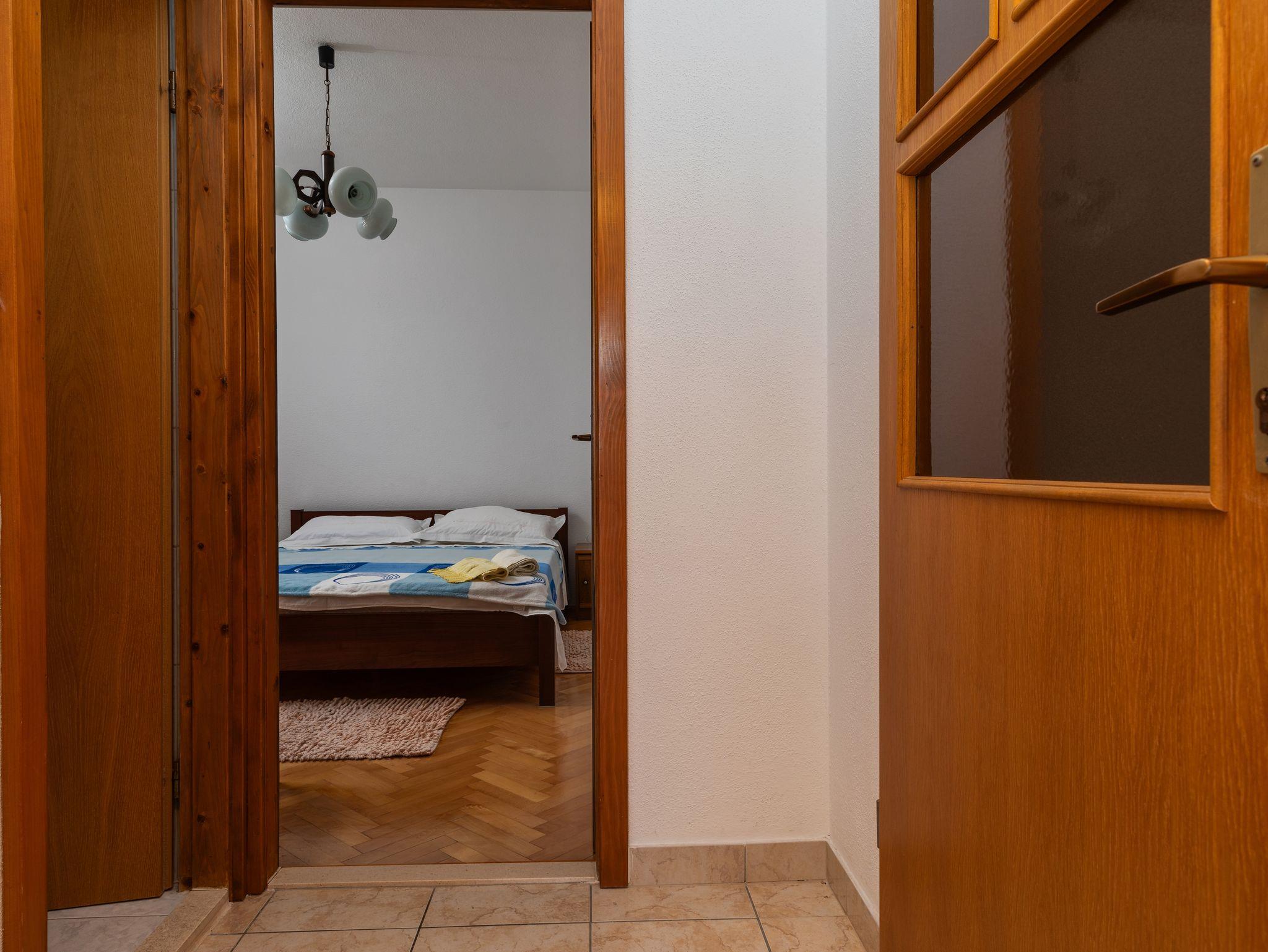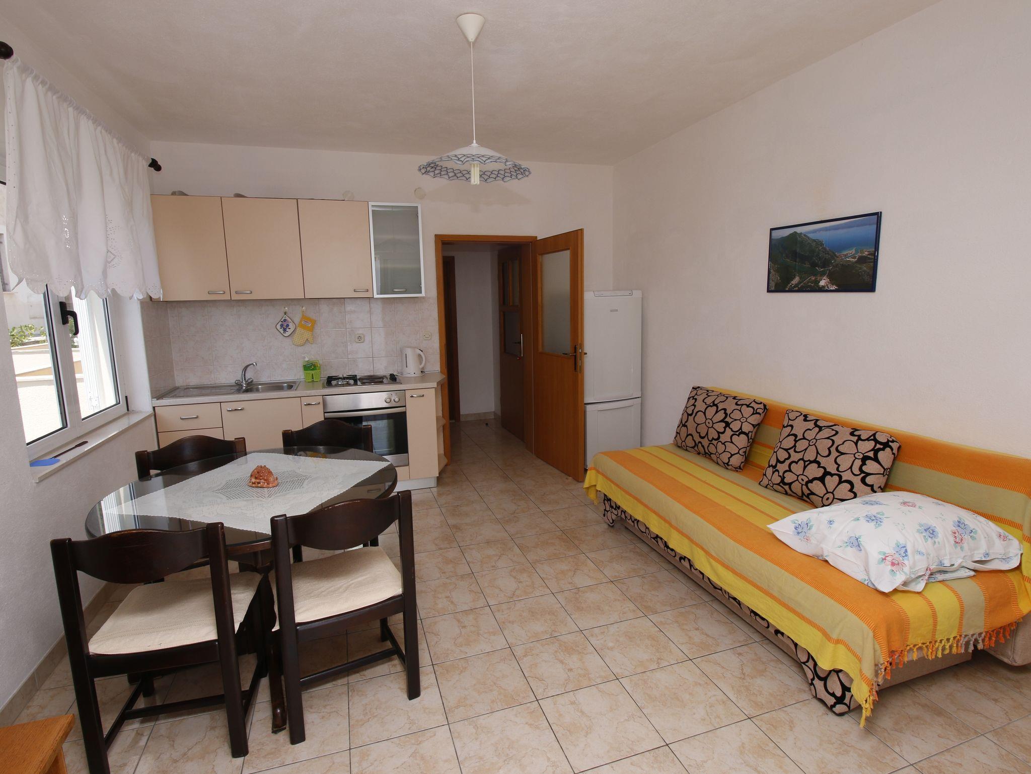 Ferienwohnung bietet Platz für 4 Gäste. Die Betten sind in Schlafzimmern, die es 1 gibt, und in Wohnzimmer, innerhalb einer Gesamtfläche von 32m2, angeordnet. Die Gäste haben einen eigenen Balkon zur Verfügung, auf der sie in warmen Sommernächten genießen können. Das Apartment bietet Meerblick. Es ist erlaubt, Speisen auf dem Gemeinschafts-Grill vorzubereiten. IM PREIS INBEGRIFFEN: Kurtaxe, Endreinigung, Klimatisierung, Parkplatz, Internet, Wäschewaschen, Bügeleisen, Bügelbrett, Föhn, tragbarer Grill, Sonnenschirm. VERBINDLICHE ZUSÄTZLICHE KOSTEN: Aufzahlung für Kurzaufenthalte (prozentualer Zuschlag pro Nächtigungsanzahl: 30% - 1, 20% - 2, 10% - 3). Die Verfügbarkeit zusätzlicher Dienstleistungen in Ihrem reservierten Termin und die Preise derselben (falls nicht aufgeführt) müssen im Voraus überprüft werden. Zusätzliche Dienstleistungen die in der Zahlungsaufforderung nicht aufgeführt sind werden direkt beim Vermieter bezahlt, angenommen der Gast nutzt auch diese. Ermäßigung auf den Grundpreis: Gratistag 14=13 (bei einem Aufenthalt von 14 Tagen oder mehr erhalten Sie einen Gratistag für den Aufenthalt bis 31.12.26).