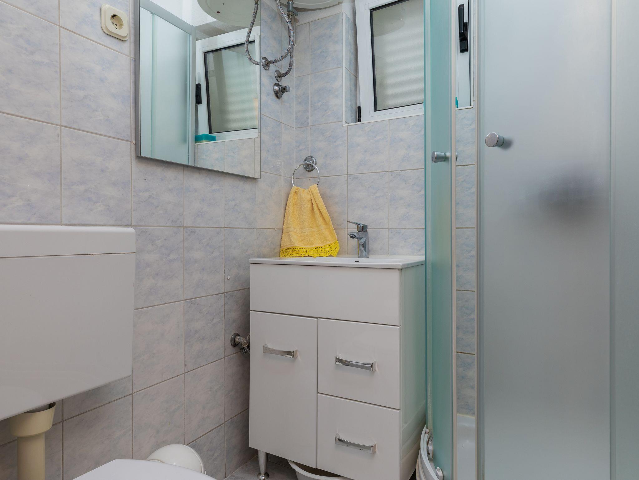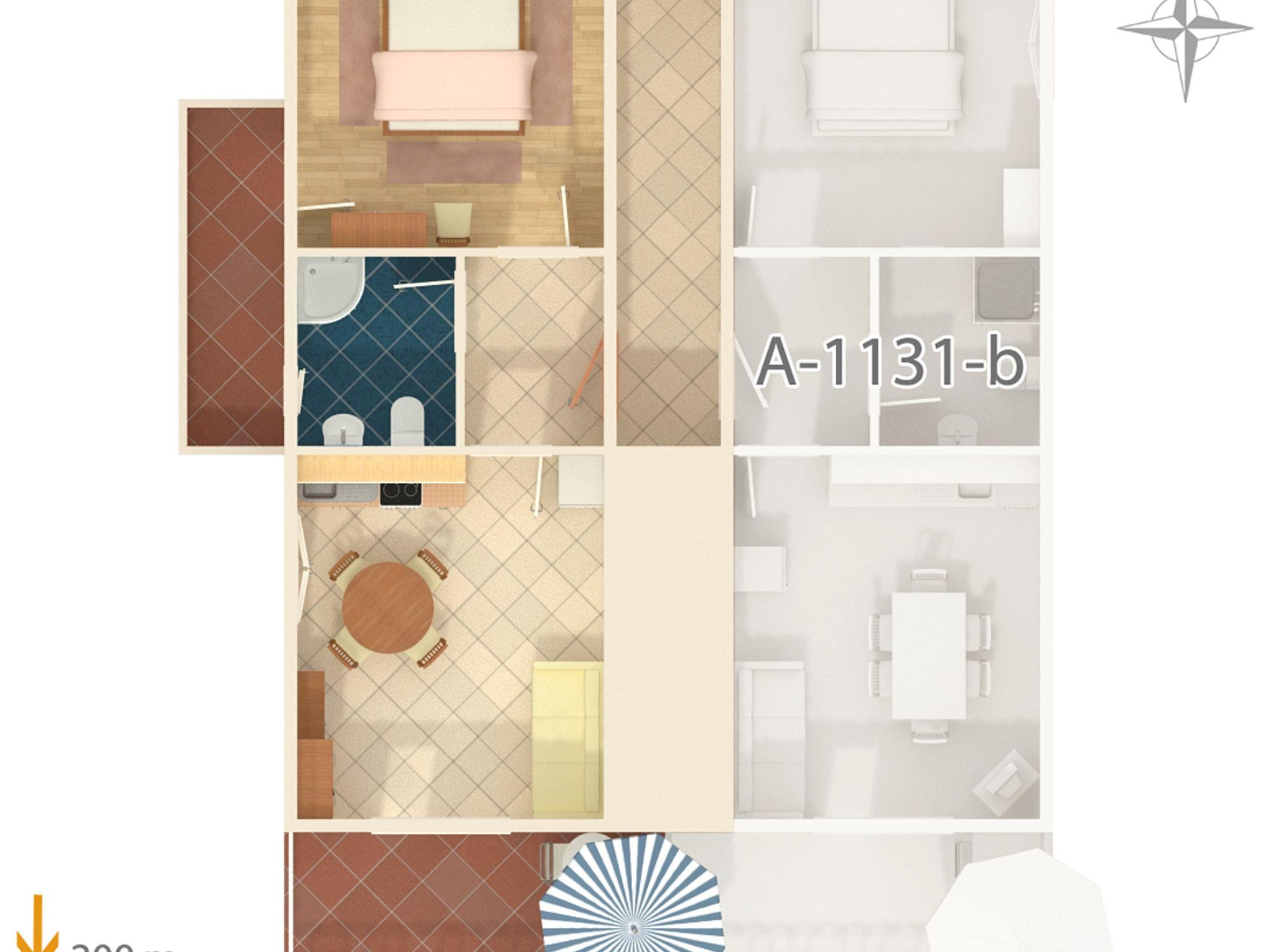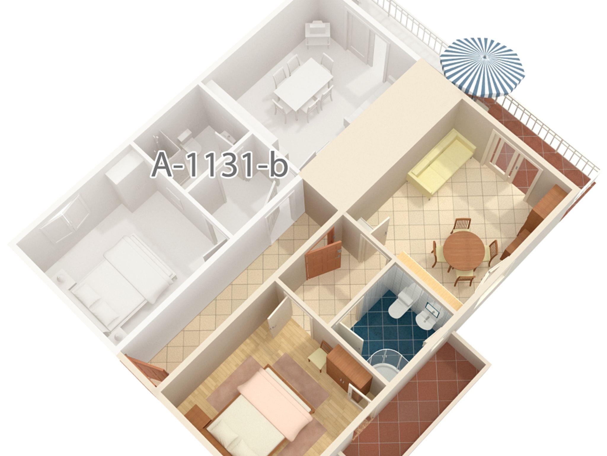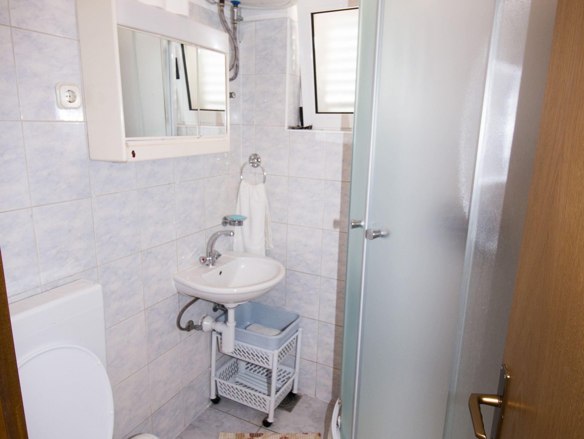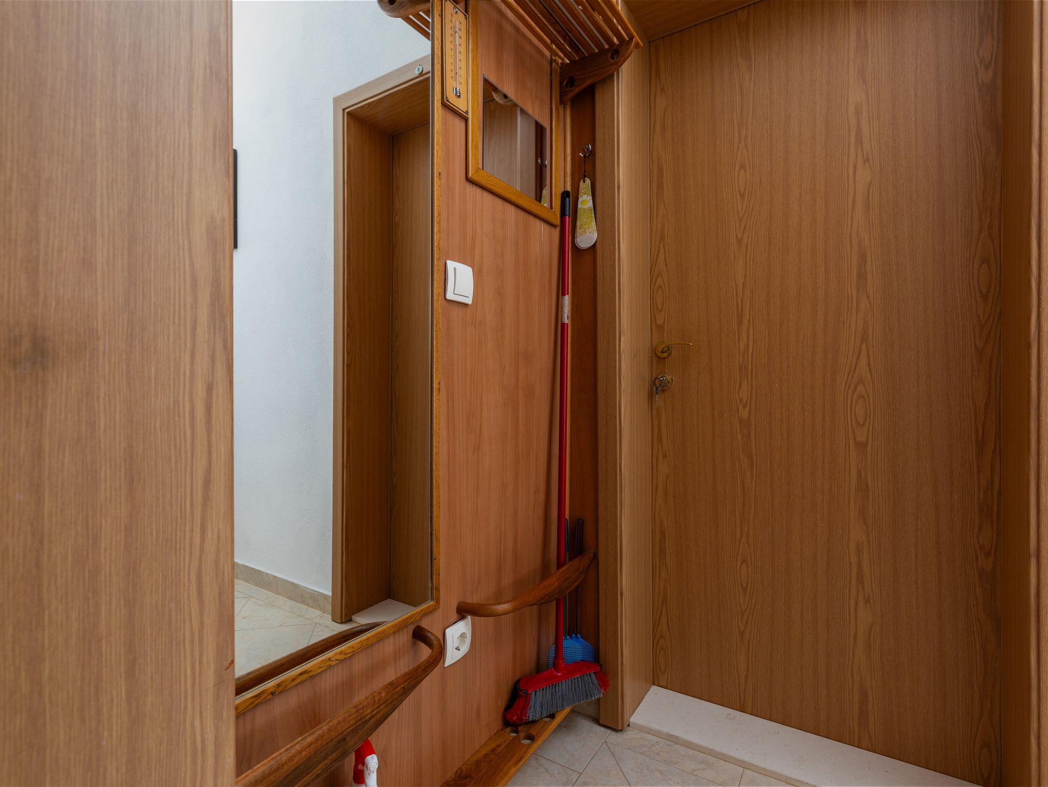 Ferienwohnung bietet Platz für 4 Gäste. Die Betten sind in Schlafzimmern, die es 1 gibt, und in Wohnzimmer, innerhalb einer Gesamtfläche von 32m2, angeordnet. Die Gäste haben einen eigenen Balkon zur Verfügung, auf der sie in warmen Sommernächten genießen können. Das Apartment bietet Meerblick. Es ist erlaubt, Speisen auf dem Gemeinschafts-Grill vorzubereiten. IM PREIS INBEGRIFFEN: Kurtaxe, Endreinigung, Klimatisierung, Parkplatz, Internet, Wäschewaschen, Bügeleisen, Bügelbrett, Föhn, tragbarer Grill, Sonnenschirm. VERBINDLICHE ZUSÄTZLICHE KOSTEN: Aufzahlung für Kurzaufenthalte (prozentualer Zuschlag pro Nächtigungsanzahl: 30% - 1, 20% - 2, 10% - 3). Die Verfügbarkeit zusätzlicher Dienstleistungen in Ihrem reservierten Termin und die Preise derselben (falls nicht aufgeführt) müssen im Voraus überprüft werden. Zusätzliche Dienstleistungen die in der Zahlungsaufforderung nicht aufgeführt sind werden direkt beim Vermieter bezahlt, angenommen der Gast nutzt auch diese. Ermäßigung auf den Grundpreis: Gratistag 14=13 (bei einem Aufenthalt von 14 Tagen oder mehr erhalten Sie einen Gratistag für den Aufenthalt bis 31.12.26).