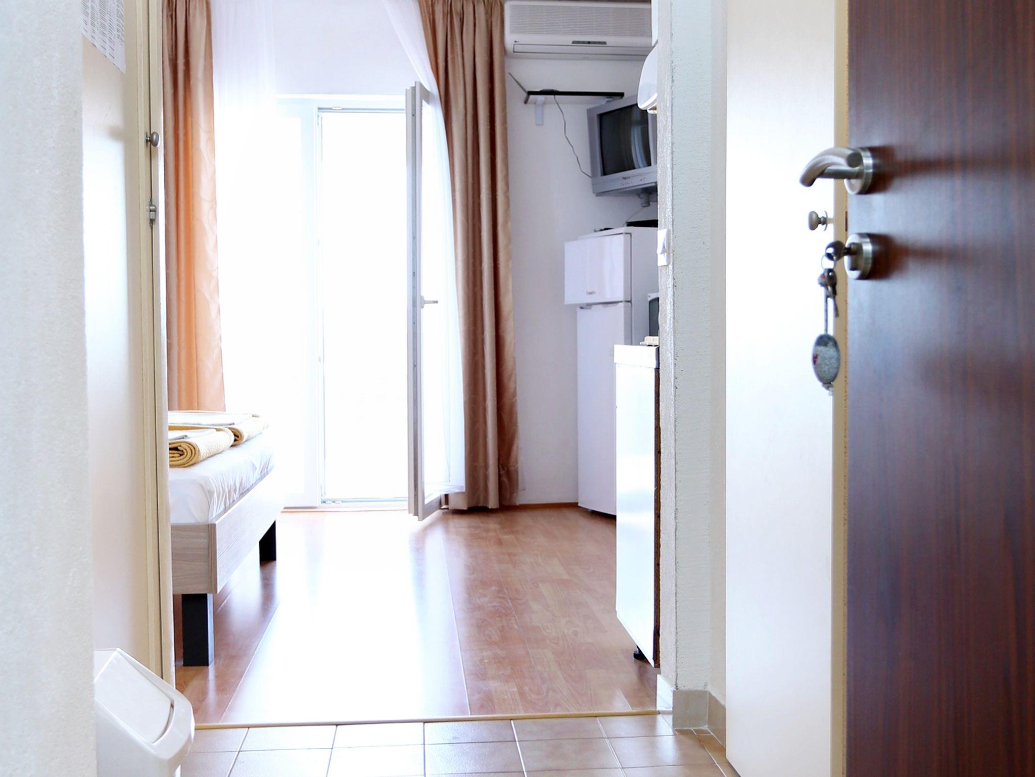 Studio bietet Platz für 2 Gäste. Die Betten sind in Schlafzimmern, die es 1 gibt, innerhalb einer Gesamtfläche von 21m2, angeordnet. Die Gäste haben eine eigene Terrasse zur Verfügung, auf der sie in warmen Sommernächten genießen können. Das Studio-Apartment bietet Meerblick. Es ist erlaubt, Speisen auf dem Gemeinschafts-Grill vorzubereiten. In der Unterkunftseinheit besteht die Möglichkeit des Mitbringens von Haustieren gegen Aufpreis. IM PREIS INBEGRIFFEN: Kurtaxe, Endreinigung, Parkplatz, Garage, Internet, Kinderbett. VERBINDLICHE ZUSÄTZLICHE KOSTEN: Aufzahlung für Kurzaufenthalte (prozentualer Zuschlag pro Nächtigungsanzahl: 30% - 1, 20% - 2, 10% - 3). UNVERBINDLICHE ZUSÄTZLICHE KOSTEN: Klimatisierung (0,50 € pro Stunde), Haustiere (10,00 € pro Nacht). Die Verfügbarkeit zusätzlicher Dienstleistungen in Ihrem reservierten Termin und die Preise derselben (falls nicht aufgeführt) müssen im Voraus überprüft werden. Zusätzliche Dienstleistungen die in der Zahlungsaufforderung nicht aufgeführt sind werden direkt beim Vermieter bezahlt, angenommen der Gast nutzt auch diese.