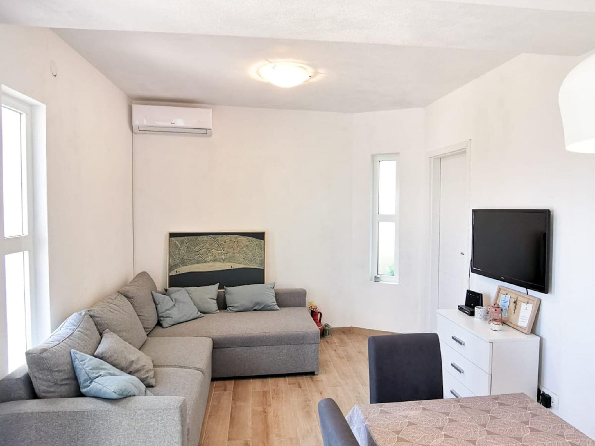 Ferienwohnung bietet Platz für 6 Gäste. Die Betten sind in Schlafzimmern, die es 2 gibt, und in Wohnzimmer, innerhalb einer Gesamtfläche von 51m2, angeordnet. Die Gäste haben eine eigene Terrasse zur Verfügung, auf der sie in warmen Sommernächten genießen können. Das Apartment bietet Meerblick. Für vollen Genuss und Entspannung gibt es einen privaten Grill für Gäste dieser Unterkunft. In der Unterkunftseinheit besteht die Möglichkeit des Mitbringens von Haustieren gegen Aufpreis. IM PREIS INBEGRIFFEN: Kurtaxe, Endreinigung, Klimatisierung, Parkplatz, Internet, Wäschewaschen, Bügeleisen, Bügelbrett, Föhn, Sonnenschirm. VERBINDLICHE ZUSÄTZLICHE KOSTEN: Aufzahlung für Kurzaufenthalte (prozentualer Zuschlag pro Nächtigungsanzahl: 30% - 1, 20% - 2, 10% - 3). UNVERBINDLICHE ZUSÄTZLICHE KOSTEN: Haustiere (10,00 € pro Nacht). Die Verfügbarkeit zusätzlicher Dienstleistungen in Ihrem reservierten Termin und die Preise derselben (falls nicht aufgeführt) müssen im Voraus überprüft werden. Zusätzliche Dienstleistungen die in der Zahlungsaufforderung nicht aufgeführt sind werden direkt beim Vermieter bezahlt, angenommen der Gast nutzt auch diese. Ermäßigung auf den Grundpreis: Gratistag 14=13 (bei einem Aufenthalt von 14 Tagen oder mehr erhalten Sie einen Gratistag für den Aufenthalt bis 31.12.26).