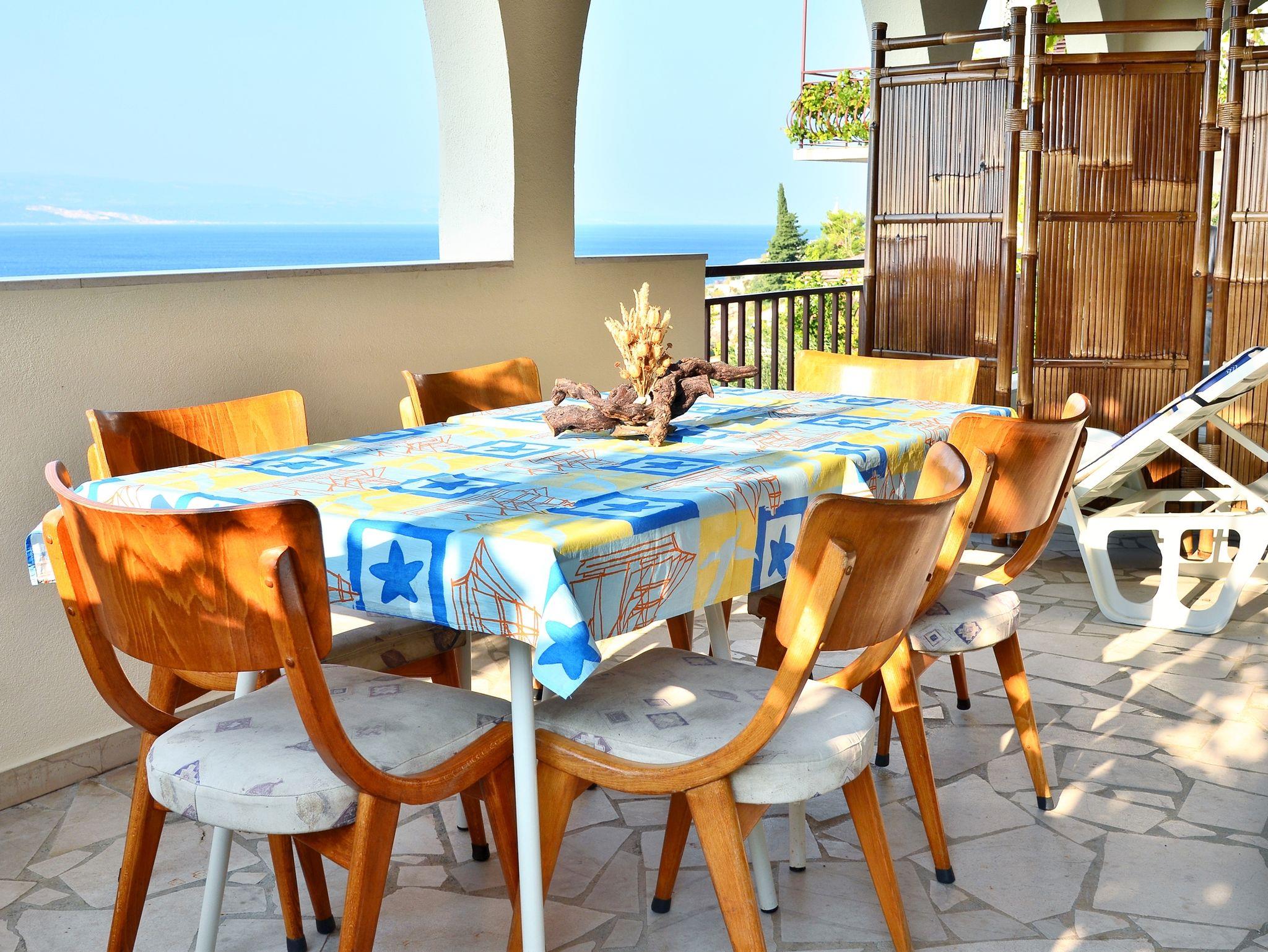 Ferienwohnung bietet Platz für 5 Gäste. Die Betten sind in Schlafzimmern, die es 2 gibt, innerhalb einer Gesamtfläche von 35m2, angeordnet. Die Gäste haben eine eigene Terrasse zur Verfügung, auf der sie in warmen Sommernächten genießen können. Das Apartment bietet Meerblick. Es ist erlaubt, Speisen auf dem Gemeinschafts-Grill vorzubereiten. In der Unterkunftseinheit besteht die Möglichkeit des Mitbringens von Haustieren gegen Aufpreis. IM PREIS INBEGRIFFEN: Kurtaxe, Endreinigung, Parkplatz, Internet, Bügeleisen, Bügelbrett, Föhn. VERBINDLICHE ZUSÄTZLICHE KOSTEN: Aufzahlung für Kurzaufenthalte (prozentualer Zuschlag pro Nächtigungsanzahl: 30% - 1, 20% - 2, 10% - 3). UNVERBINDLICHE ZUSÄTZLICHE KOSTEN: Klimatisierung (0,50 € pro Stunde), Haustiere (15,00 € pro Nacht). Die Verfügbarkeit zusätzlicher Dienstleistungen in Ihrem reservierten Termin und die Preise derselben (falls nicht aufgeführt) müssen im Voraus überprüft werden. Zusätzliche Dienstleistungen die in der Zahlungsaufforderung nicht aufgeführt sind werden direkt beim Vermieter bezahlt, angenommen der Gast nutzt auch diese.