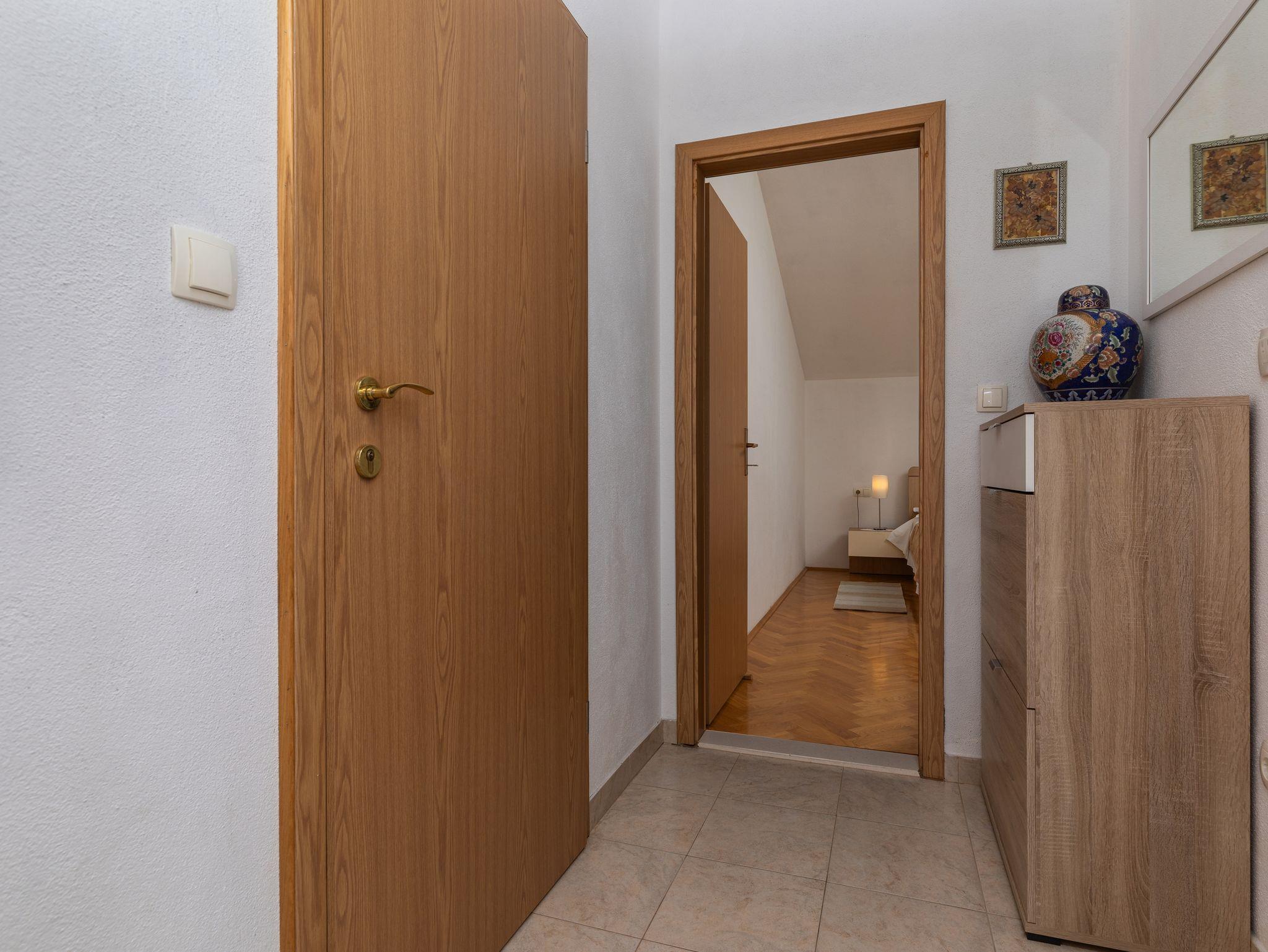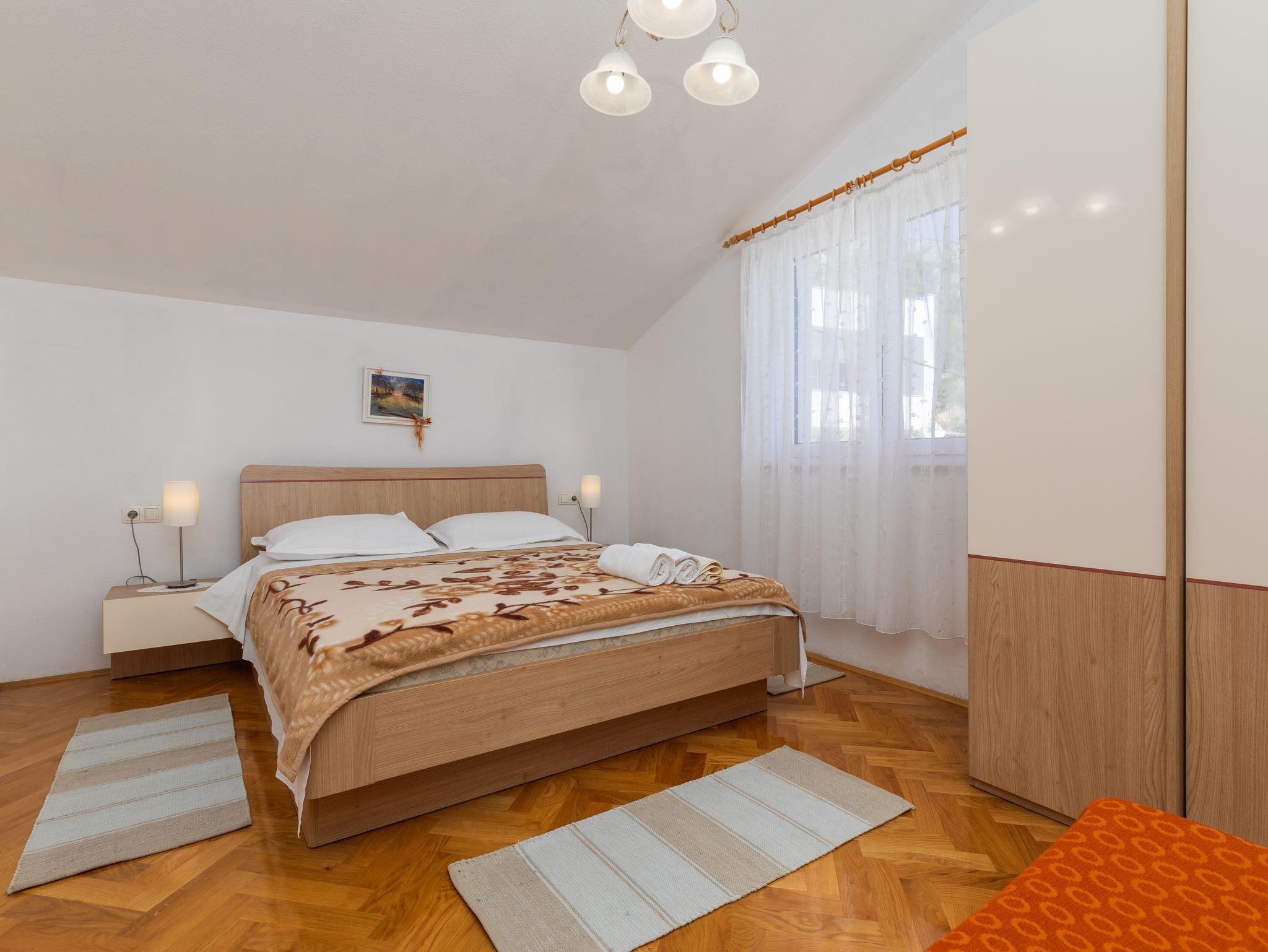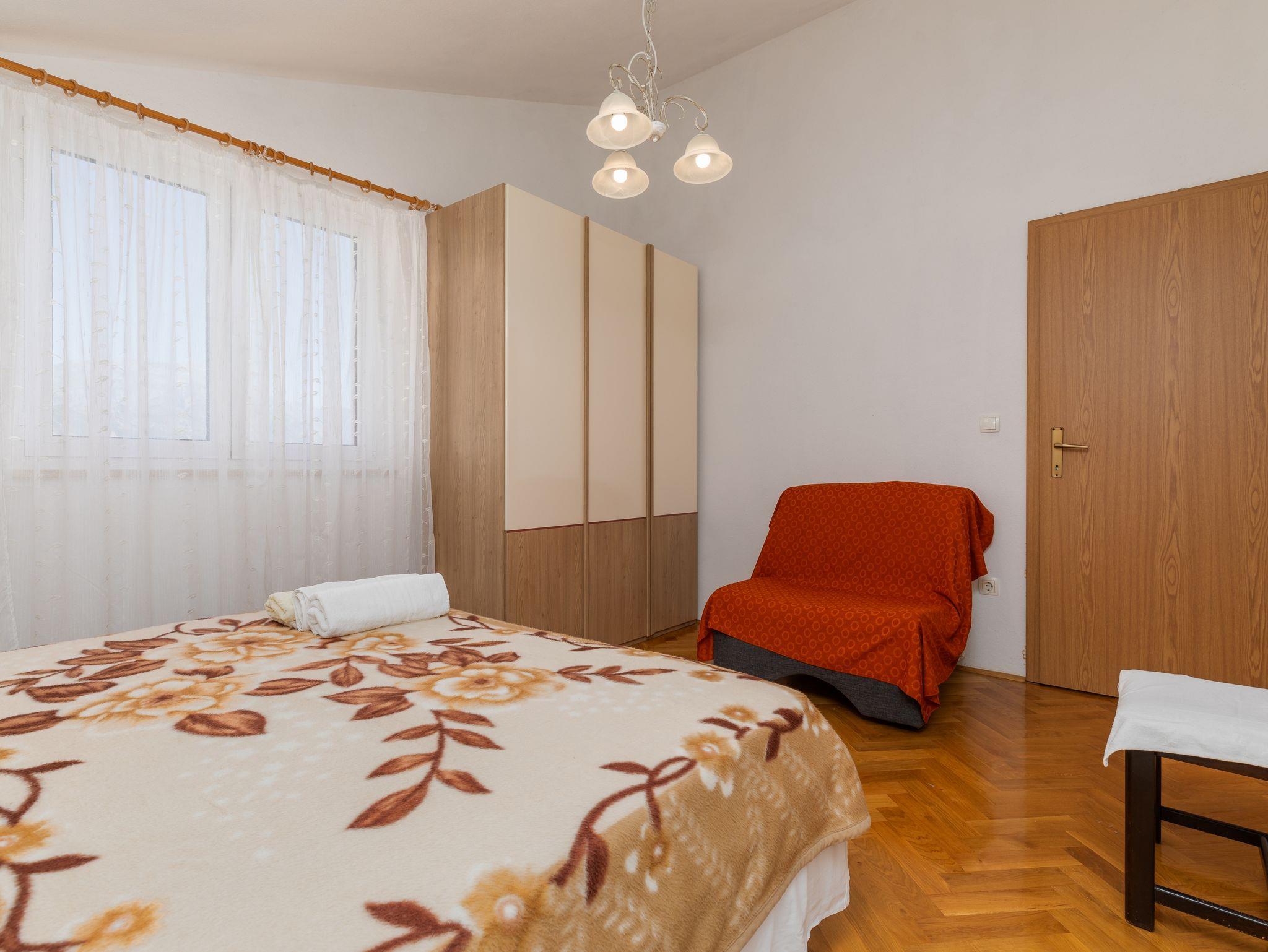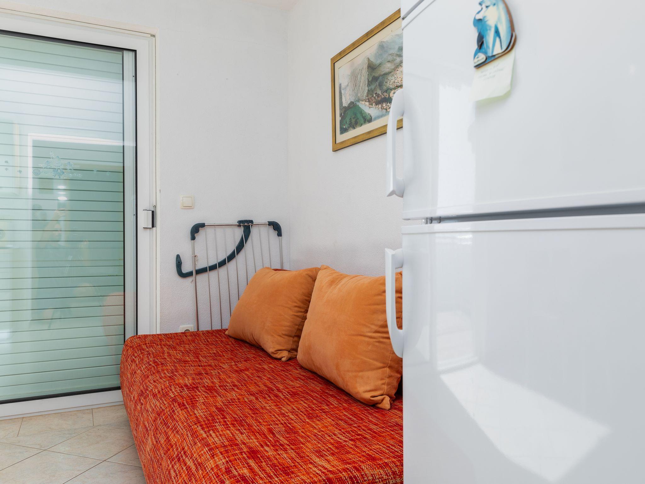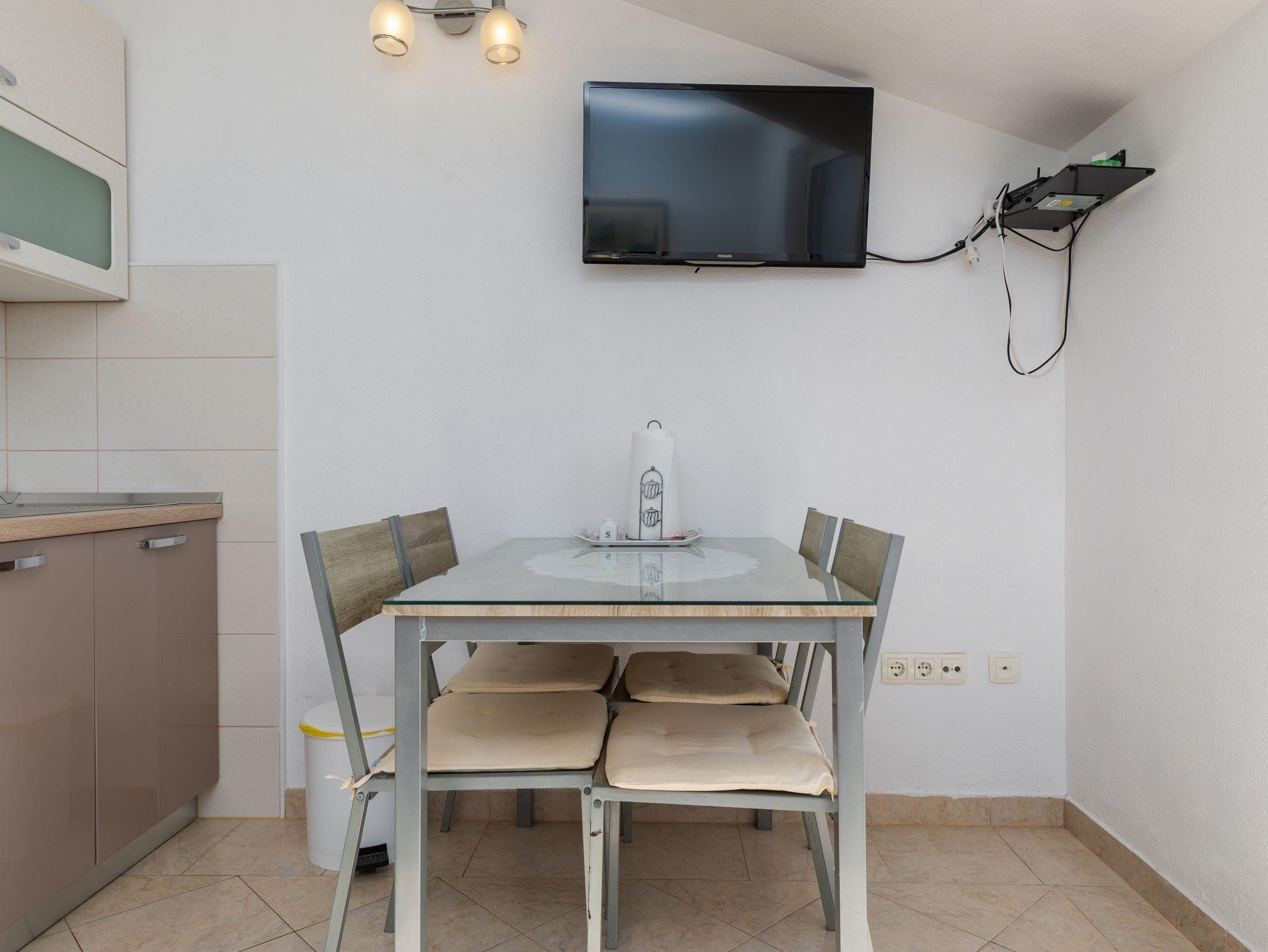 Ferienwohnung bietet Platz für 4 Gäste. Die Betten sind in Schlafzimmern, die es 1 gibt, und in Wohnzimmer, innerhalb einer Gesamtfläche von 30m2, angeordnet. Die Gäste haben eine eigene Terrasse zur Verfügung, auf der sie in warmen Sommernächten genießen können. Das Apartment bietet Meerblick. Es ist erlaubt, Speisen auf dem Gemeinschafts-Grill vorzubereiten. IM PREIS INBEGRIFFEN: Kurtaxe, Endreinigung, Klimatisierung, Parkplatz, Internet, Wäschewaschen, Bügeleisen, Bügelbrett, Föhn, tragbarer Grill, Sonnenschirm. VERBINDLICHE ZUSÄTZLICHE KOSTEN: Aufzahlung für Kurzaufenthalte (prozentualer Zuschlag pro Nächtigungsanzahl: 30% - 1, 20% - 2, 10% - 3). Die Verfügbarkeit zusätzlicher Dienstleistungen in Ihrem reservierten Termin und die Preise derselben (falls nicht aufgeführt) müssen im Voraus überprüft werden. Zusätzliche Dienstleistungen die in der Zahlungsaufforderung nicht aufgeführt sind werden direkt beim Vermieter bezahlt, angenommen der Gast nutzt auch diese. Ermäßigung auf den Grundpreis: Gratistag 14=13 (bei einem Aufenthalt von 14 Tagen oder mehr erhalten Sie einen Gratistag für den Aufenthalt bis 31.12.26).