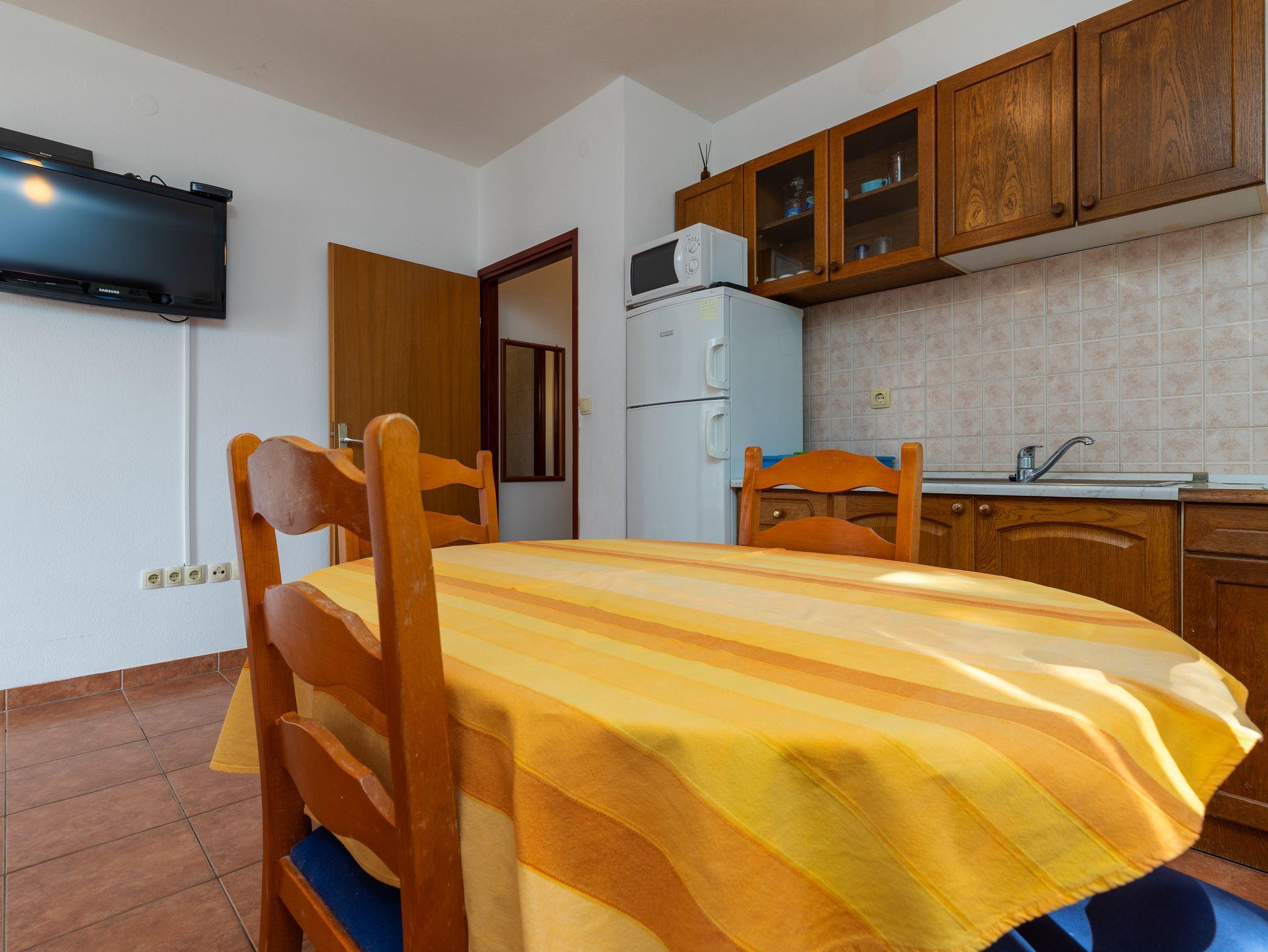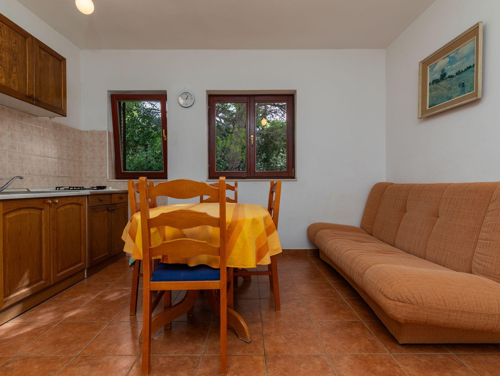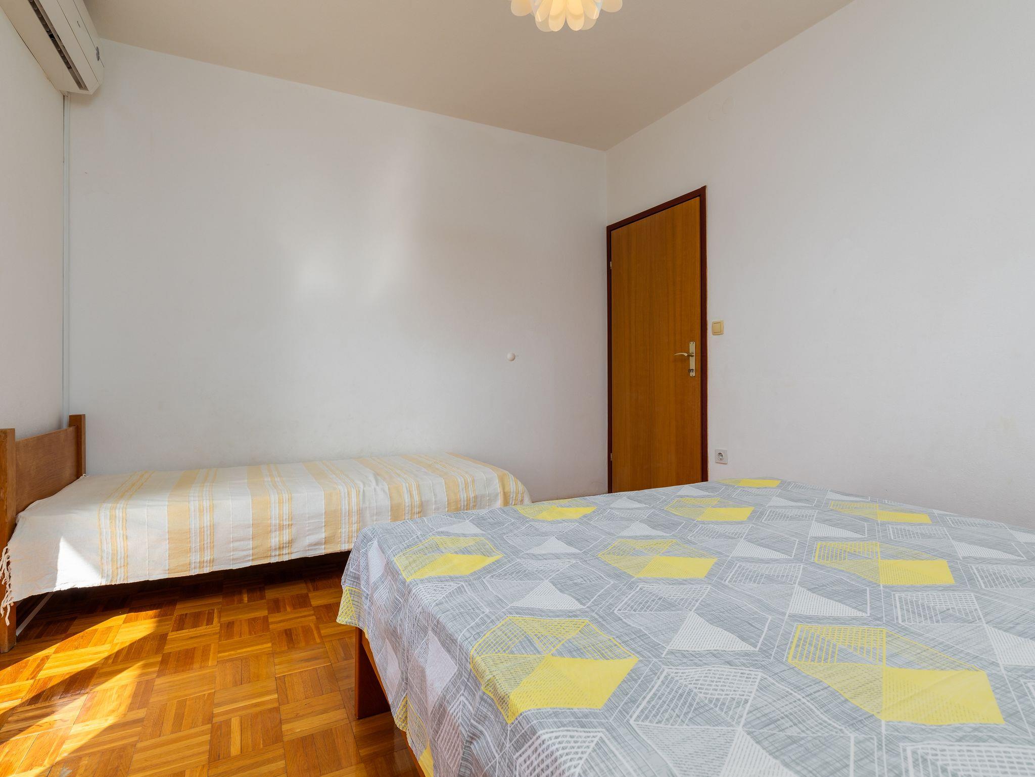 Ferienwohnung bietet Platz für 4 Gäste. Die Betten sind in Schlafzimmern, die es 1 gibt, und in Esszimmer, innerhalb einer Gesamtfläche von 35m2, angeordnet. Die Gäste haben einen eigenen Balkon zur Verfügung, auf der sie in warmen Sommernächten genießen können. Das Apartment bietet Meerblick. Es ist erlaubt, Speisen auf dem Gemeinschafts-Grill vorzubereiten. IM PREIS INBEGRIFFEN: Kurtaxe, Endreinigung, Klimatisierung, Parkplatz, Internet. VERBINDLICHE ZUSÄTZLICHE KOSTEN: Aufzahlung für Kurzaufenthalte (prozentualer Zuschlag pro Nächtigungsanzahl: 30% - 1, 20% - 2, 10% - 3). Die Verfügbarkeit zusätzlicher Dienstleistungen in Ihrem reservierten Termin und die Preise derselben (falls nicht aufgeführt) müssen im Voraus überprüft werden. Zusätzliche Dienstleistungen die in der Zahlungsaufforderung nicht aufgeführt sind werden direkt beim Vermieter bezahlt, angenommen der Gast nutzt auch diese. Ermäßigung auf den Grundpreis: Gratistag 14=13 (bei einem Aufenthalt von 14 Tagen oder mehr erhalten Sie einen Gratistag für den Aufenthalt bis 31.12.26).