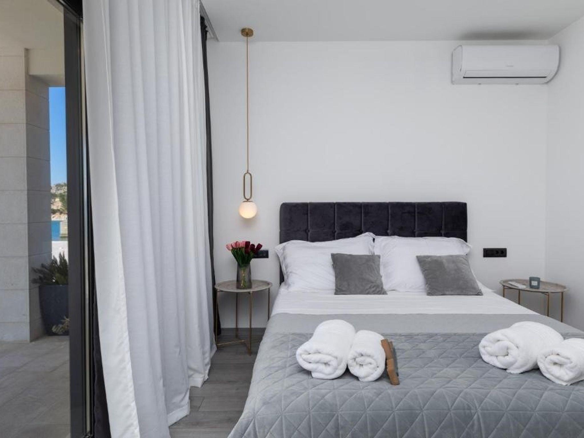 Ferienwohnung bietet Platz für 6 Gäste. Die Betten sind in Schlafzimmern, die es 2 gibt, und in Wohnzimmer, innerhalb einer Gesamtfläche von 80m2, angeordnet. Die Gäste haben eine eigene Terrasse zur Verfügung, auf der sie in warmen Sommernächten genießen können. Das Apartment bietet Meerblick. Es ist erlaubt, Speisen auf dem Gemeinschafts-Grill vorzubereiten. Während ihres Aufenthalts können Gäste das gemeinsam zur Nutzung stehende Schwimmbad benutzen. IM PREIS INBEGRIFFEN: Kurtaxe, Endreinigung, Klimatisierung, Pool, Parkplatz, Kinderbett, Bügeleisen, Bügelbrett, Föhn, Sonnenschirm, Liegestühle. UNVERBINDLICHE ZUSÄTZLICHE KOSTEN: Wäschewaschen (7,00 € Waschen). Die Verfügbarkeit zusätzlicher Dienstleistungen in Ihrem reservierten Termin und die Preise derselben (falls nicht aufgeführt) müssen im Voraus überprüft werden. Zusätzliche Dienstleistungen die in der Zahlungsaufforderung nicht aufgeführt sind werden direkt beim Vermieter bezahlt, angenommen der Gast nutzt auch diese. Ermäßigung auf den Grundpreis: Gratistag 14=13 (bei einem Aufenthalt von 14 Tagen oder mehr erhalten Sie einen Gratistag für den Aufenthalt bis 31.12.26).