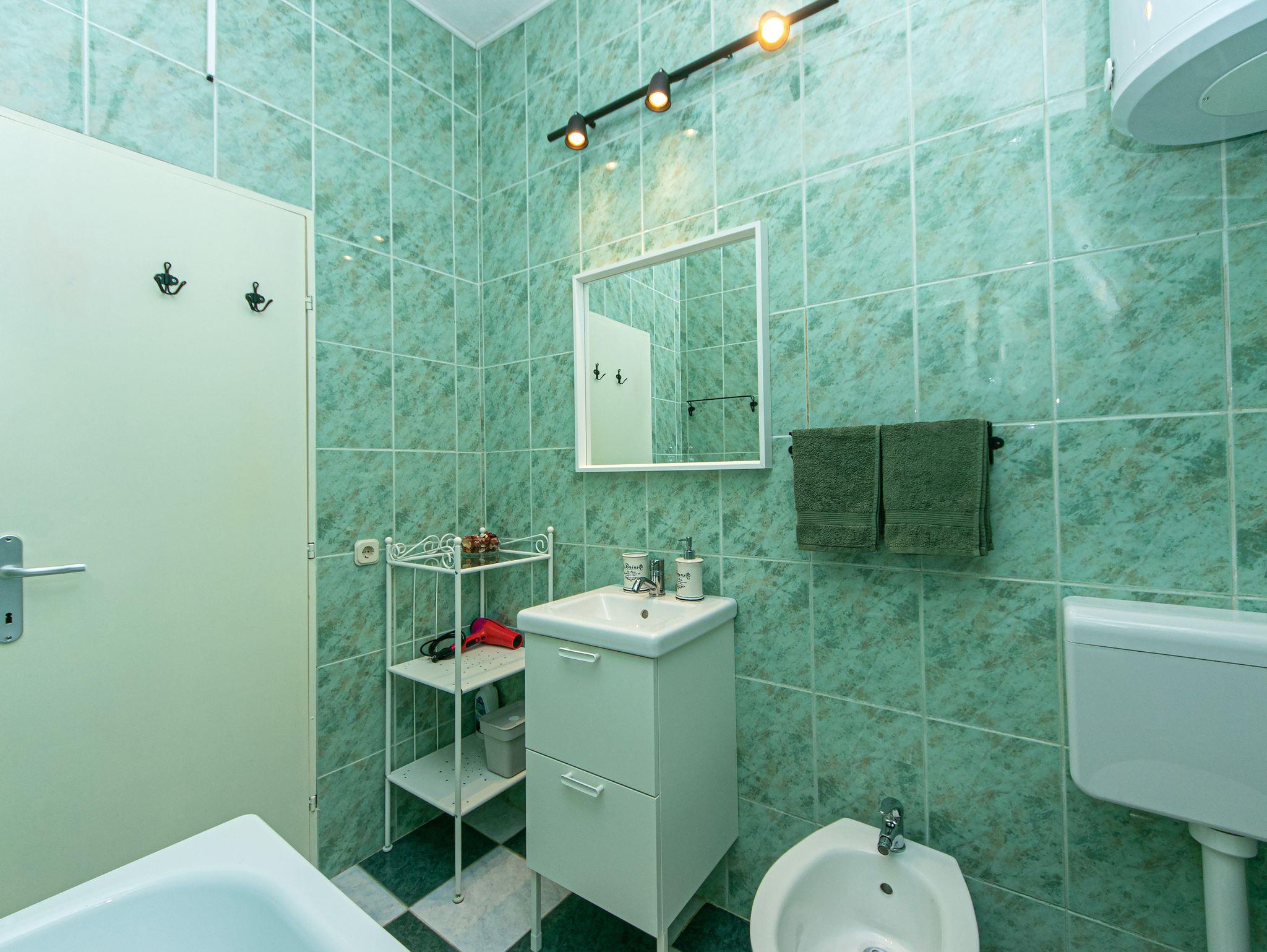 Ferienwohnung bietet Platz für 4 Gäste. Die Betten sind in Schlafzimmern, die es 1 gibt, und in Wohnzimmer, innerhalb einer Gesamtfläche von 39m2, angeordnet. Die Gäste haben eine eigene Terrasse zur Verfügung, auf der sie in warmen Sommernächten genießen können. Das Apartment bietet Meerblick. Es ist erlaubt, Speisen auf dem Gemeinschafts-Grill vorzubereiten. In der Unterkunftseinheit besteht die Möglichkeit des Mitbringens von Haustieren gegen Aufpreis. Räume der gebuchten Unterkunftseinheit werden nicht in eine Ganze verbunden. Unterkunftseinheit hat Räume, die von dem Rest der Einheit abgetrennt werden. IM PREIS INBEGRIFFEN: Kurtaxe, Endreinigung, Klimatisierung, Parkplatz, Garage, Internet, Wäschewaschen, Kinderbett, Bügeleisen, Bügelbrett, Föhn, Sonnenschirm. UNVERBINDLICHE ZUSÄTZLICHE KOSTEN: Haustiere (7,00 € pro Nacht), Zusatzbett (25,00 € pro Nacht). Die Verfügbarkeit zusätzlicher Dienstleistungen in Ihrem reservierten Termin und die Preise derselben (falls nicht aufgeführt) müssen im Voraus überprüft werden. Zusätzliche Dienstleistungen die in der Zahlungsaufforderung nicht aufgeführt sind werden direkt beim Vermieter bezahlt, angenommen der Gast nutzt auch diese. Ermäßigung auf den Grundpreis: Gratistag 14=13 (bei einem Aufenthalt von 14 Tagen oder mehr erhalten Sie einen Gratistag für den Aufenthalt bis 31.12.26).