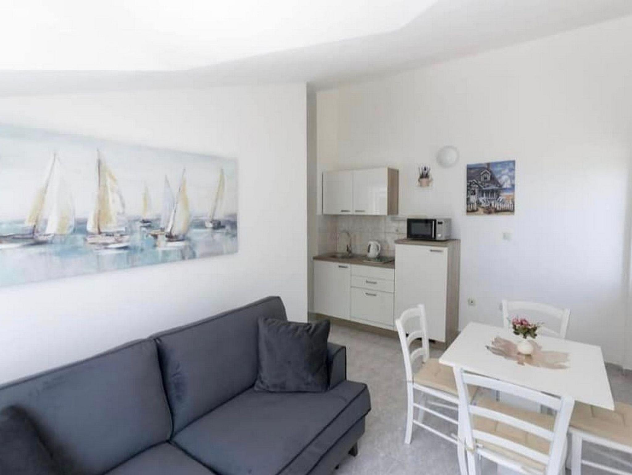 Ferienwohnung bietet Platz für 4 Gäste. Die Betten sind in Schlafzimmern, die es 1 gibt, und in Wohnzimmer, innerhalb einer Gesamtfläche von 30m2, angeordnet. Die Gäste haben eine eigene Terrasse zur Verfügung, auf der sie in warmen Sommernächten genießen können. Das Apartment bietet Meerblick. Es ist erlaubt, Speisen auf dem Gemeinschafts-Grill vorzubereiten. IM PREIS INBEGRIFFEN: Kurtaxe, Endreinigung, Klimatisierung, Parkplatz, Internet, Wäschewaschen, Föhn. Die Verfügbarkeit zusätzlicher Dienstleistungen in Ihrem reservierten Termin und die Preise derselben (falls nicht aufgeführt) müssen im Voraus überprüft werden. Zusätzliche Dienstleistungen die in der Zahlungsaufforderung nicht aufgeführt sind werden direkt beim Vermieter bezahlt, angenommen der Gast nutzt auch diese. Ermäßigung auf den Grundpreis: Gratistag 14=13 (bei einem Aufenthalt von 14 Tagen oder mehr erhalten Sie einen Gratistag für den Aufenthalt bis 31.12.26).